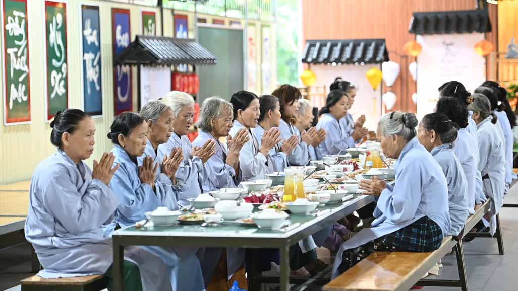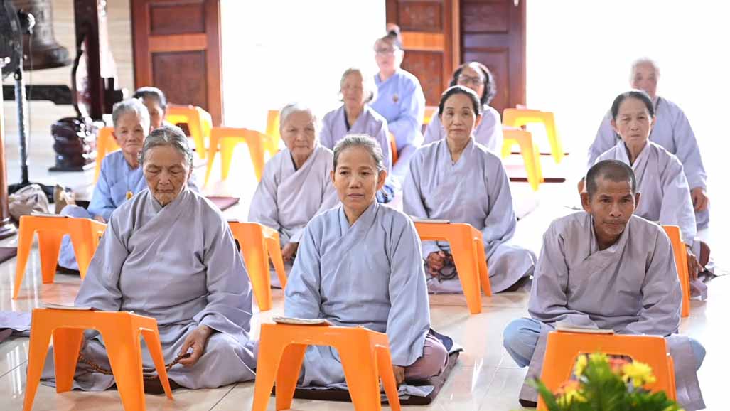 Trong suốt một ngày, chư Tôn đức và Phật tử đã cùng nhau thực hành khóa lễ tụng kinh, kinh hành niệm Phật và đặc biệt là thời khóa dùng cơm chánh niệm dưới sự hướng dẫn của chư Tôn đức bổn tự đã đưa sự tỉnh thức của khóa tu vào mọi sinh hoạt.