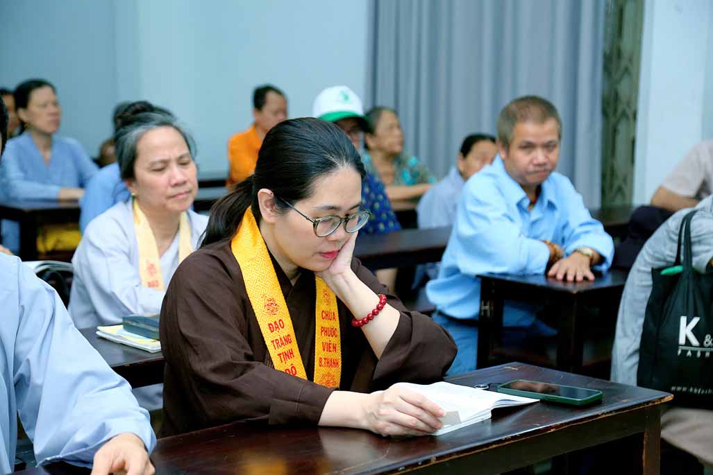 Với giọng giảng ấm áp, từ hòa, Thượng tọa đã khéo léo khai thị những giáo lý thâm sâu về nghiệp báo luân hồi và hệ quả thống khổ của các ác nghiệp trong kinh Địa Tạng. Pháp âm vi diệu của Thượng tọa như một hồi chuông cảnh tỉnh, rọi chiếu tận sâu tâm khảm, giúp Đại chúng thấm nhuần và quán triệt giáo pháp tối thượng của đức Bổn sư rằng: “Chư ác mạc tác, chúng thiện phụng hành, tự tịnh kỳ ý, thị chư Phật giáo” (Không làm các điều ác, siêng làm các điều lành, giữ tâm ý trong sạch—đó là lời chư Phật dạy).
