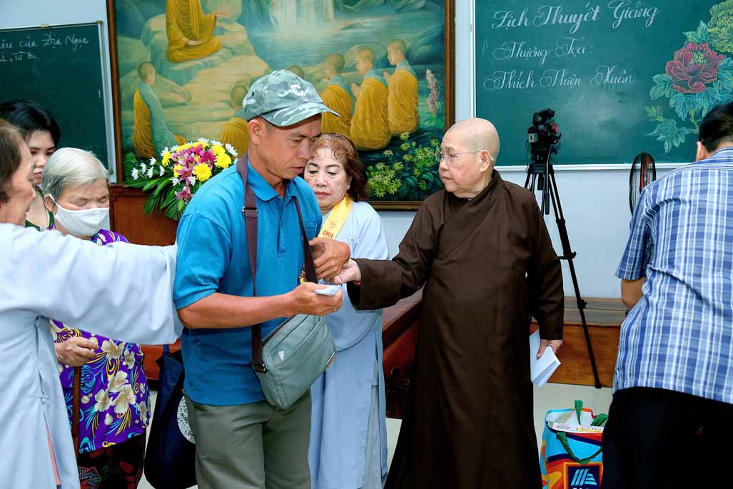 Ngay sau thời Pháp thoại thâm sâu, trong tinh thần từ bi cứu khổ và hạnh nguyện độ sinh của chư vị Bồ tát, chùa Phước Viên đã thực hiện hạnh bố thí, trao tặng tịnh tài và phẩm vật đến bà con khiếm thị.