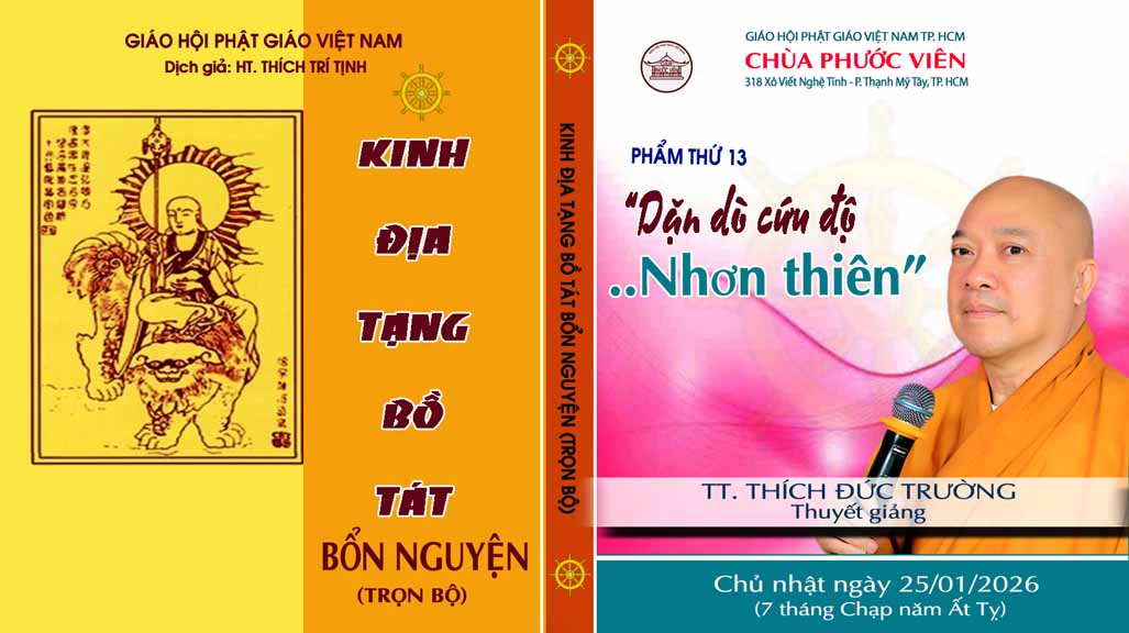 Sự luận giảng sâu sắc và đầy tâm huyết của Thượng tọa Thích Đức Trường về Phẩm 13 Kinh Địa Tạng “Chúc lụy nhân thiên”. Đại chúng đã thấu hiểu rằng: Mỗi khóa tu chính là một “chuyến đò trí tuệ” khởi hành giữa dòng mê lộ. Hành giả đến chùa không phải để tìm cầu sự ban ơn thụ động, mà để học cách tự cầm lái con thuyền tâm thức, quyết liệt rời xa bờ vực của mê lầm và tội lỗi để trực chỉ cập bến giải thoát.