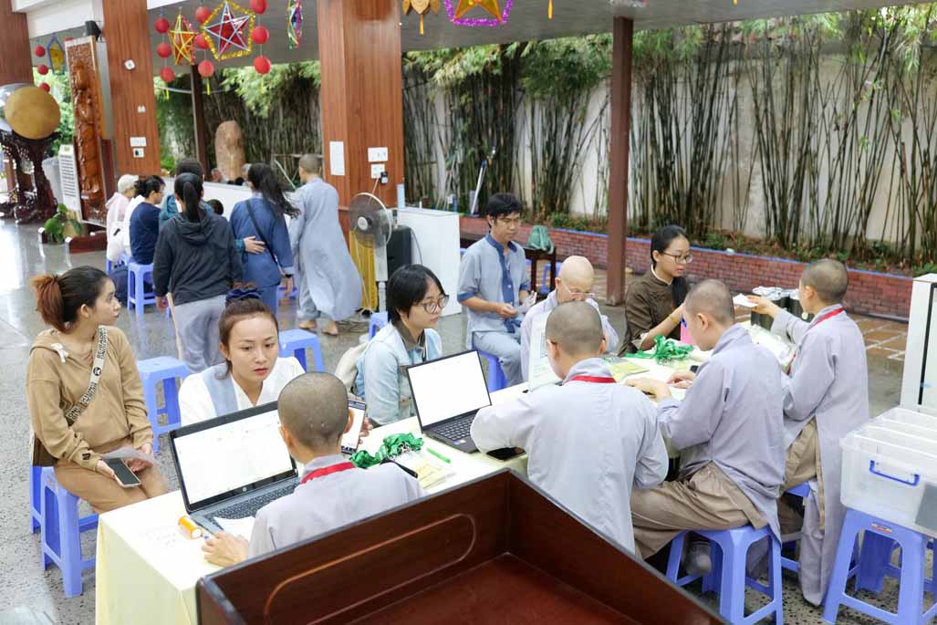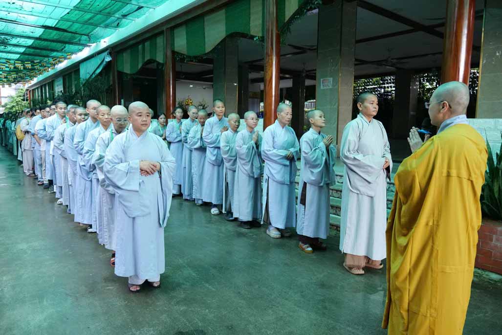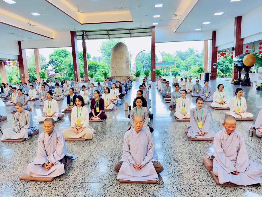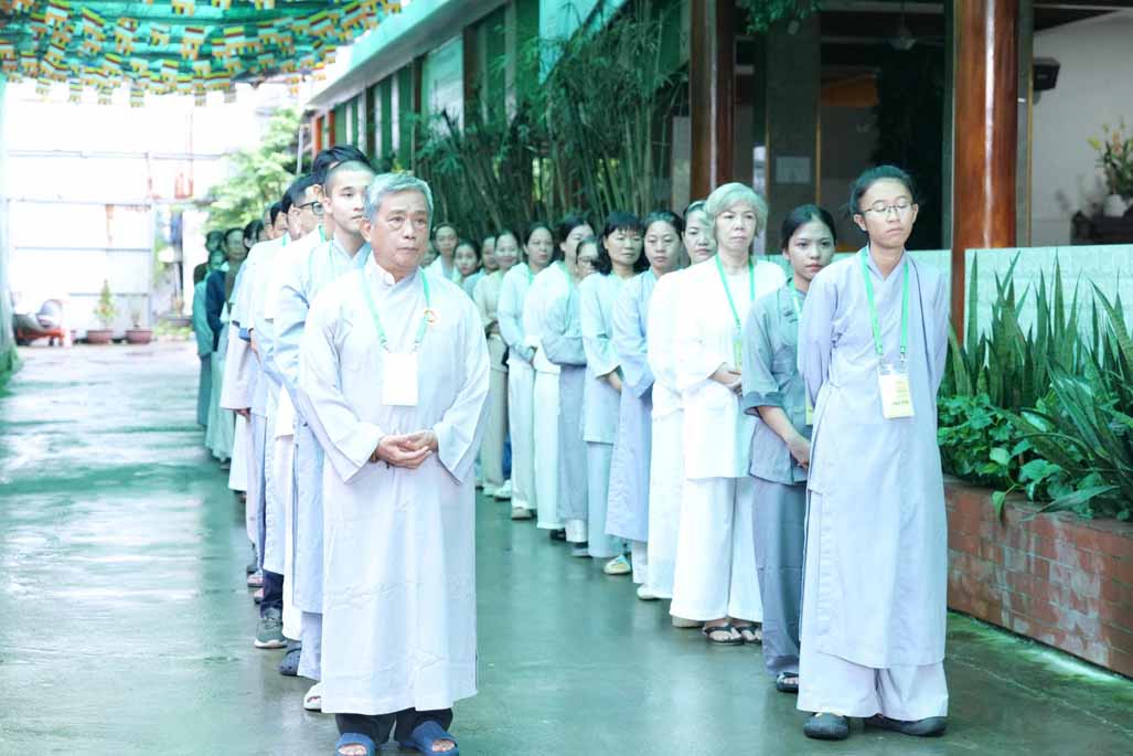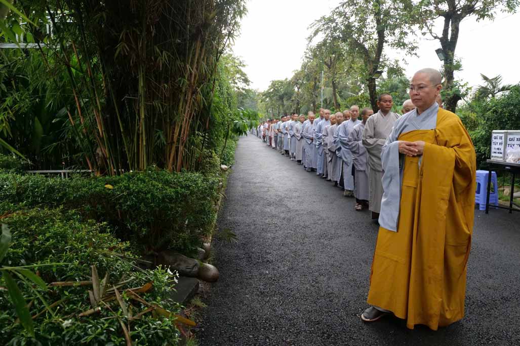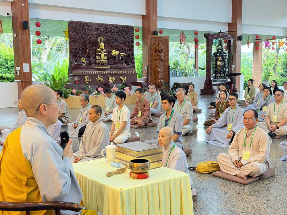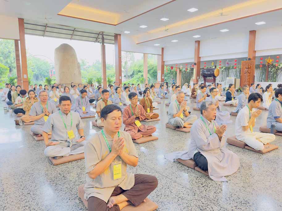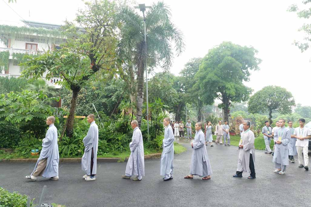 Buổi chiều, đại chúng tiếp tục thực tập thiền tọa và thiền hành kết hợp hơi thở chánh niệm, duy trì sự tỉnh giác trong từng động tác. Không khí tu học diễn ra thanh tịnh, trầm lắng, mỗi hành giả như hòa mình vào nhịp thở chung của đạo tràng.
