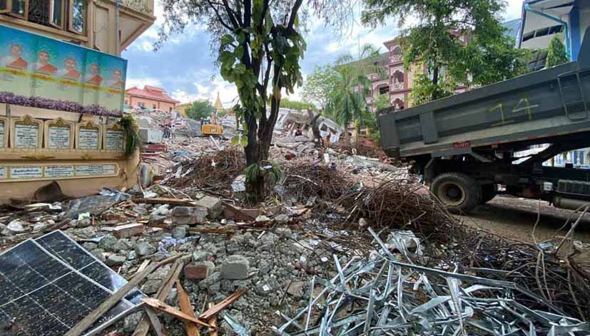 Cũng trên lộ trình ấy, đoàn đã ghé Tu viện DHAMMADHARA WASO – nơi đây, từng là nơi tu học của 300 chư Tăng. Giờ đây, trong tổng số 31 công trình trong Tu viện chỉ còn lại 1 công trình duy nhất, 30 công trình đã bị phá hủy hoàn toàn kể cả Chánh điện.