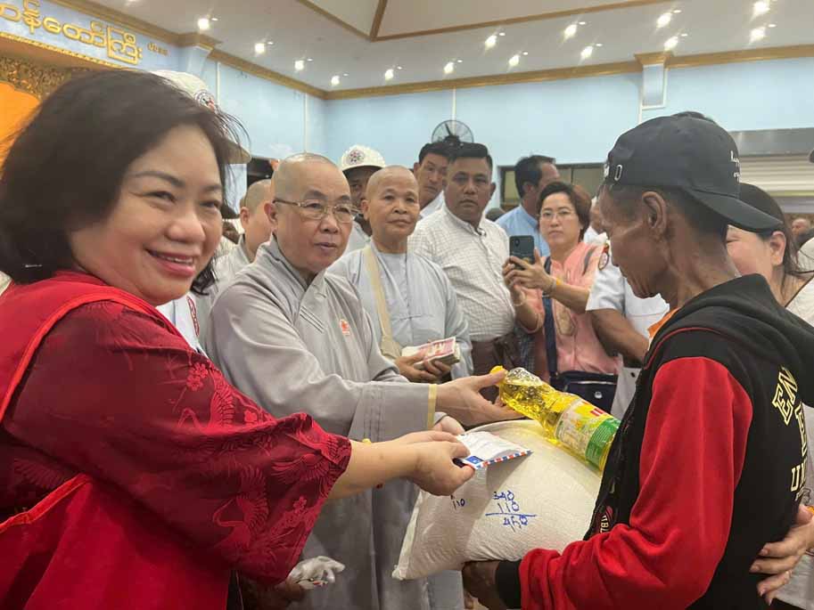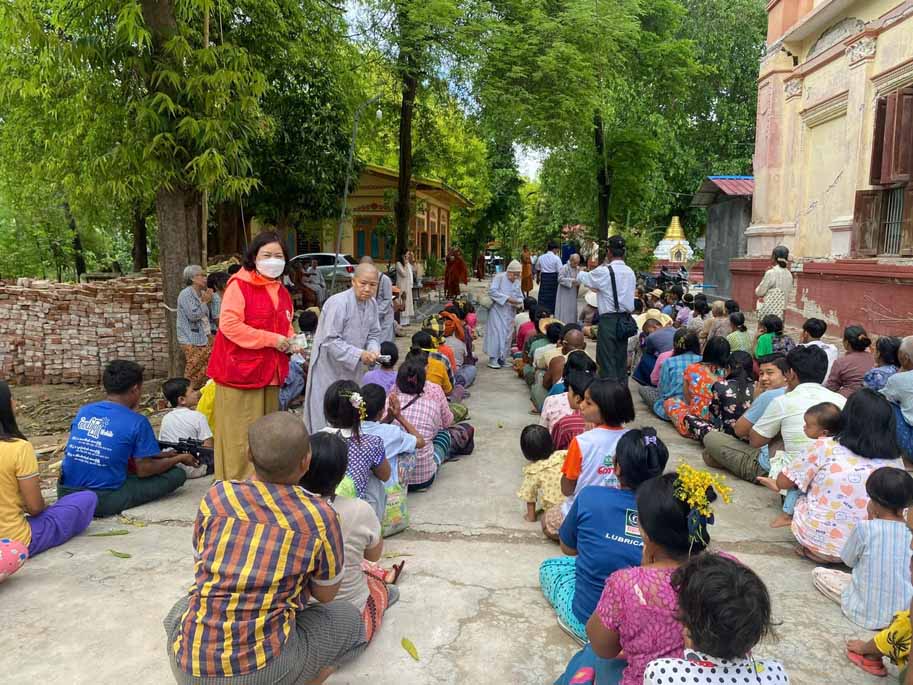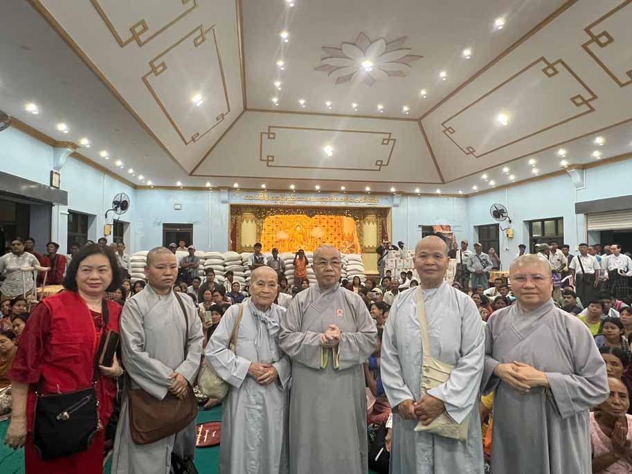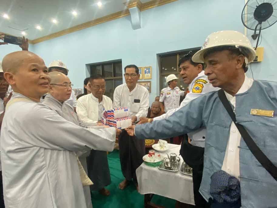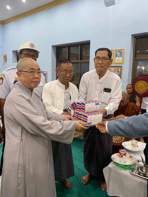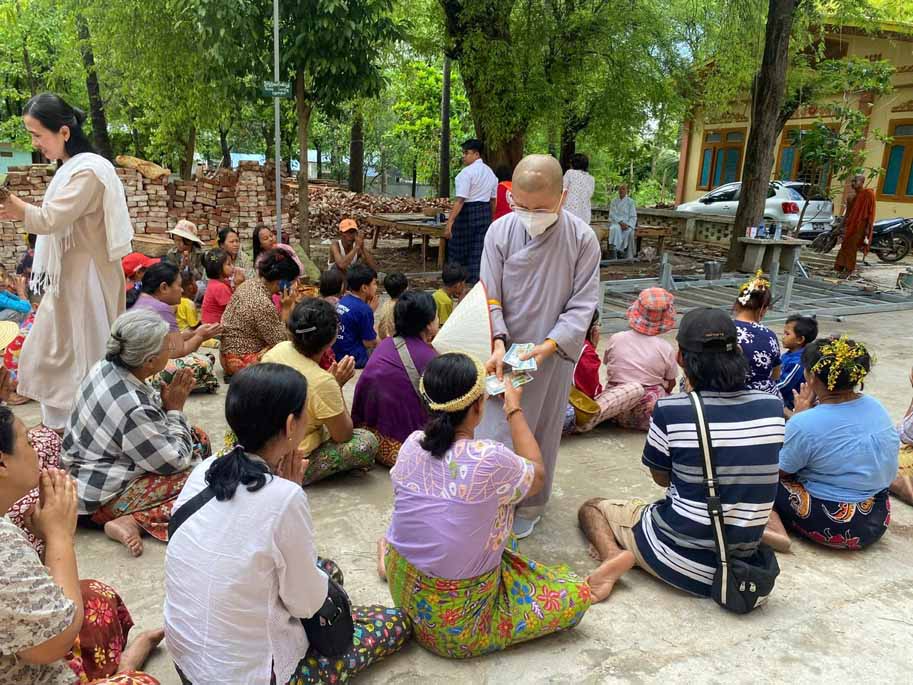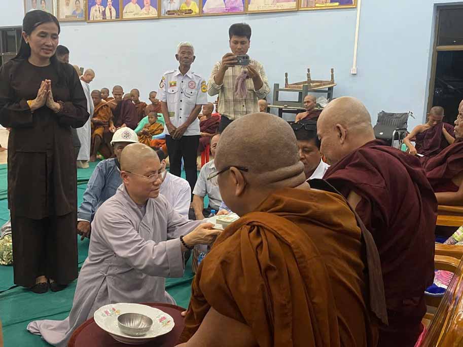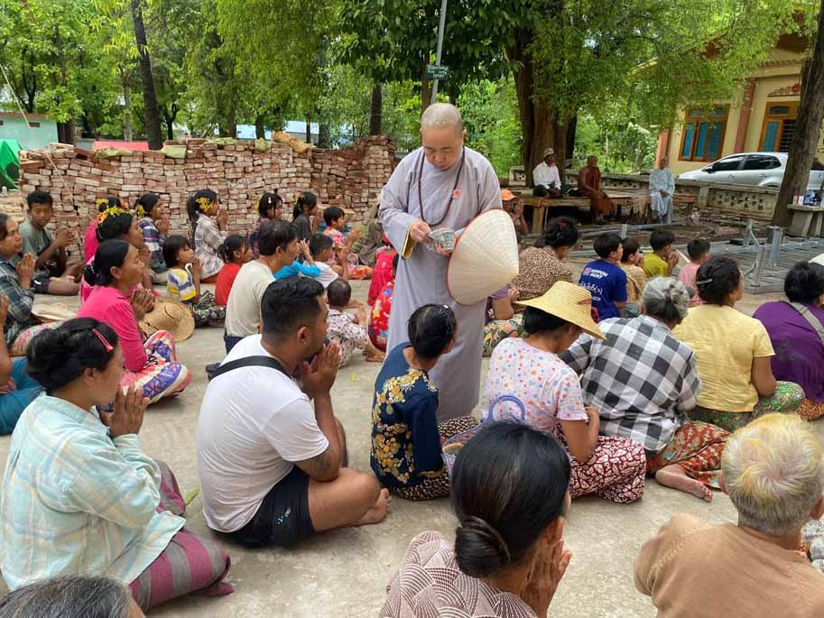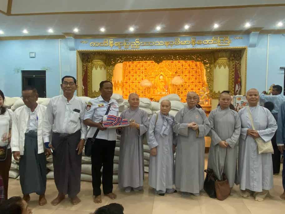 Sáng ngày 30/04/2025 (03/04/ Ất Tỵ), một hành trình dài 600km từ thủ đô Yangon về thị trấn Pyaw Bwe, thuộc vùng Mandalay ,để thăm hỏi và hổ trợ tịnh tài lên 45 ngôi chùa bị thiệt hại và chia sẻ 500 phần quà đến 500 hộ gia đình bị ảnh hưởng thiên tai động đất gặp nhiều khó khăn. Đoàn đã trao mỗi phần quà gồm: 20 kg gạo, 1 chai dầu và tịnh tài, tổng trị giá 350 triệu đồng.