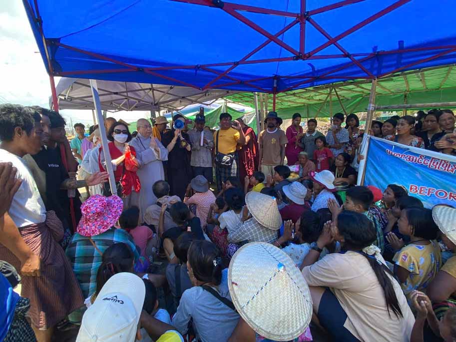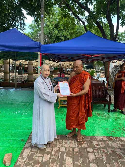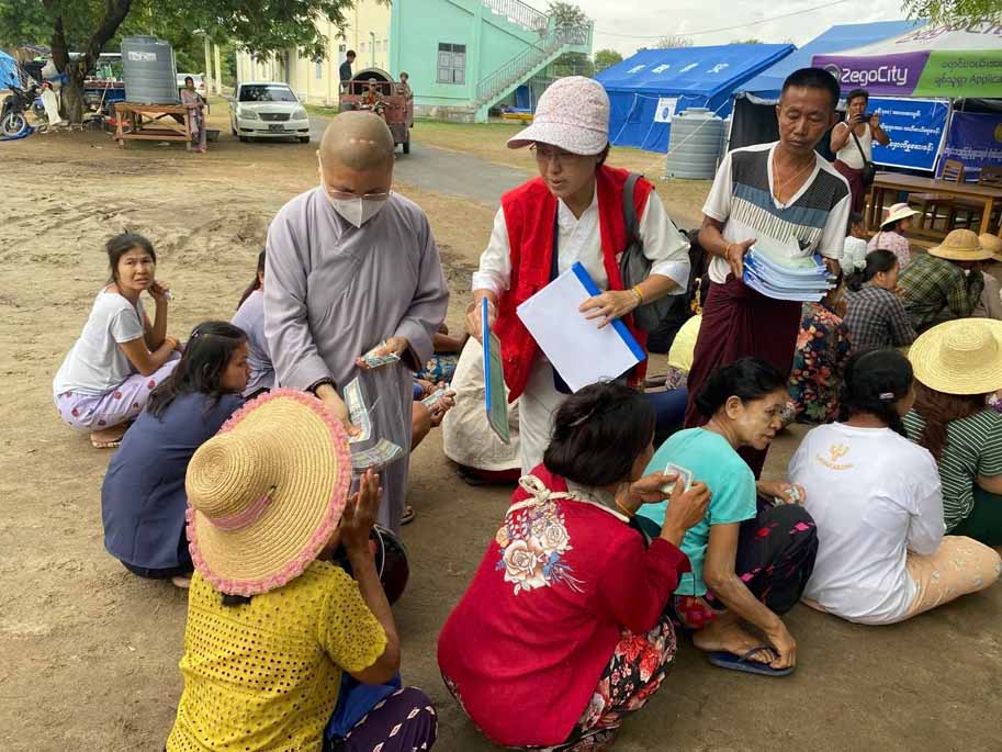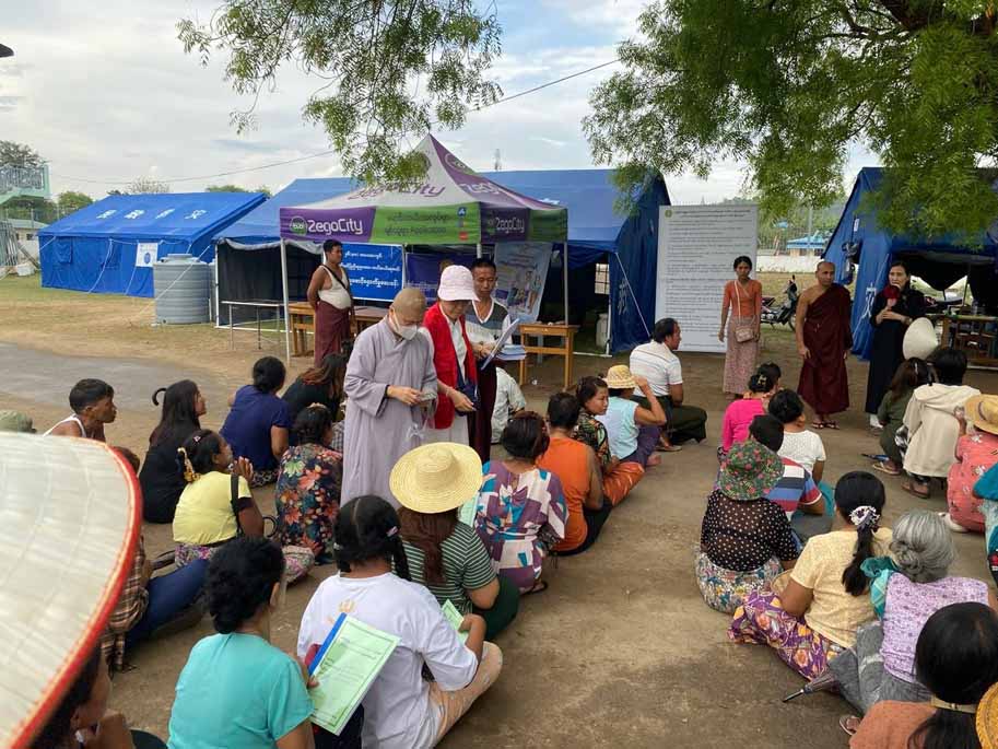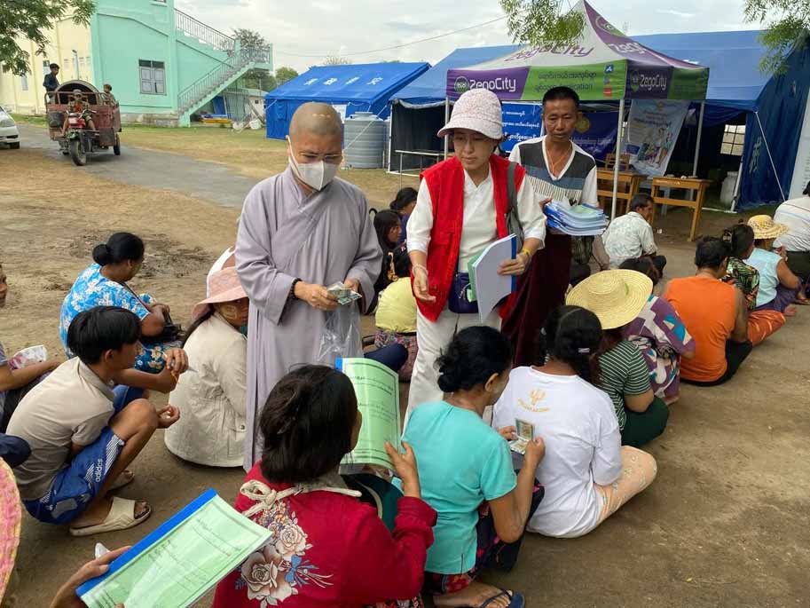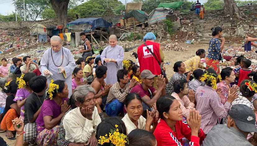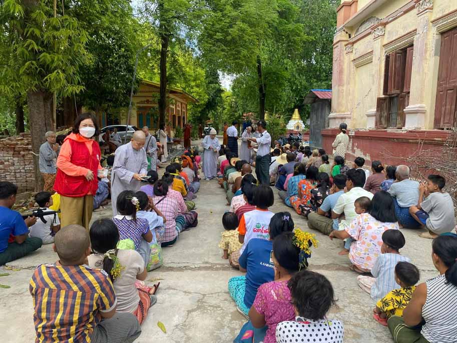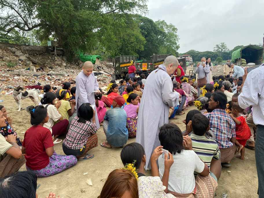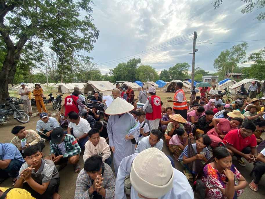 Sáng ngày 30/04/2025 (03/04/ Ất Tỵ), một hành trình dài 600km từ thủ đô Yangon về thị trấn Pyaw Bwe, thuộc vùng Mandalay ,để thăm hỏi và hổ trợ tịnh tài lên 45 ngôi chùa bị thiệt hại và chia sẻ 500 phần quà đến 500 hộ gia đình bị ảnh hưởng thiên tai động đất gặp nhiều khó khăn. Đoàn đã trao mỗi phần quà gồm: 20 kg gạo, 1 chai dầu và tịnh tài, tổng trị giá 350 triệu đồng.
