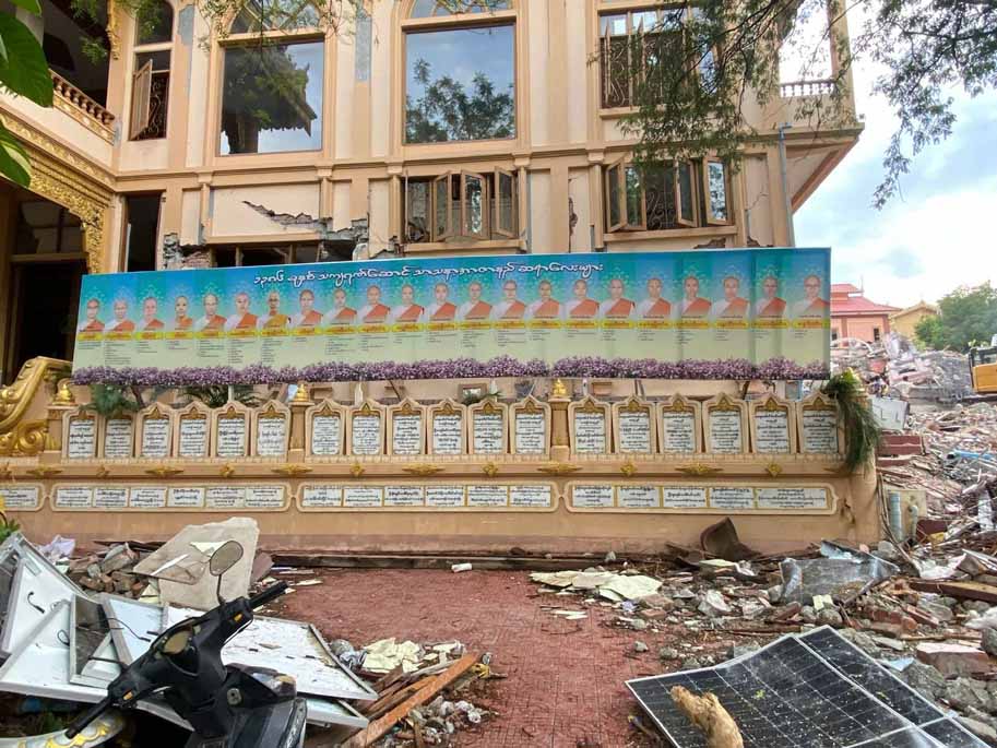 Sau đó, đoàn di chuyển đến khu vực Sagaing, đây là khu vực chịu ảnh hưởng nặng nề của trận động đất kinh hoàng ấy. Ước tính khoảng 1.000 người thiệt mạng với 90% công trình bị phá hủy. Trong đó nhiều công trình quan trọng như: trạm cứu hỏa, bệnh viện, trường học và cơ sở tôn giáo đã bị sập và hư hỏng nặng. Đoàn đã cúng dường Tam Bảo và chư Tôn đức tại 2 Tu viện Tăng, Tu viện Ni LAY KYAUNG MYE OAK, nơi có hàng trăm chư Tăng và 300 chư Ni đang tu học đã bị phá hủy hoàn toàn (trong đó có 9 chư Ni và 4 chư Tăng đã viên tịch trong trận động đất).