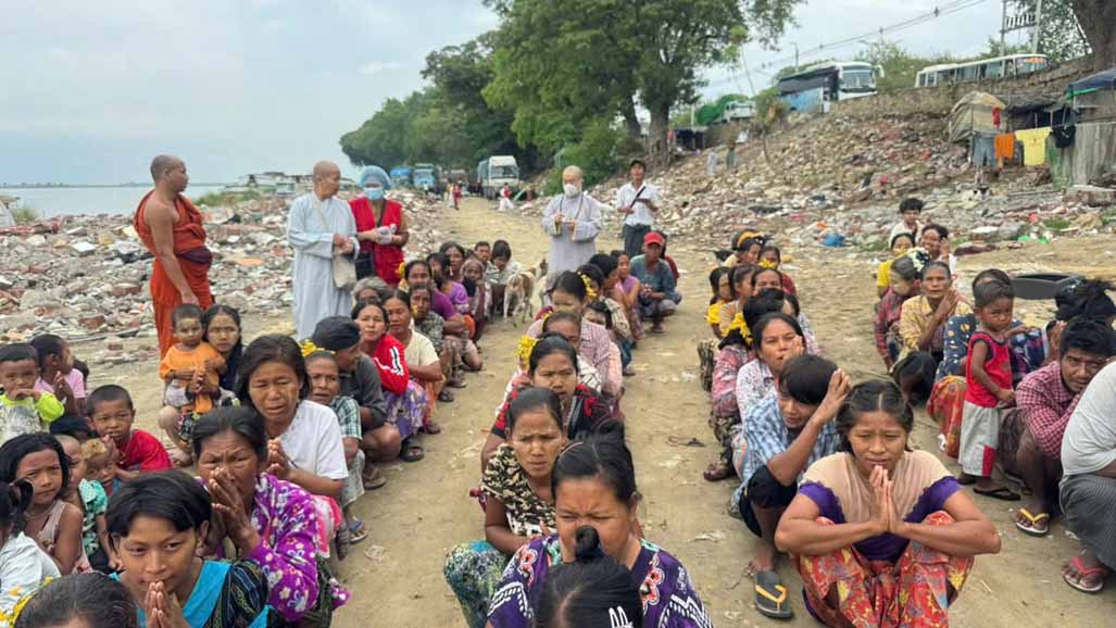 Tiếp nối hành trình, ngày 02/05/2025 (05/04/ Ất Tỵ), đoàn tiếp tục từ Mandalay hướng về Saging, suốt dọc đường trải dài hàng chục km là những căn lều tạm đơn sơ được dựng lên, là nơi tạm trú của hàng ngàn hộ gia đình mất nhà, đoàn đã trao tặng quà đến khoảng 800 hộ dân nơi đây.