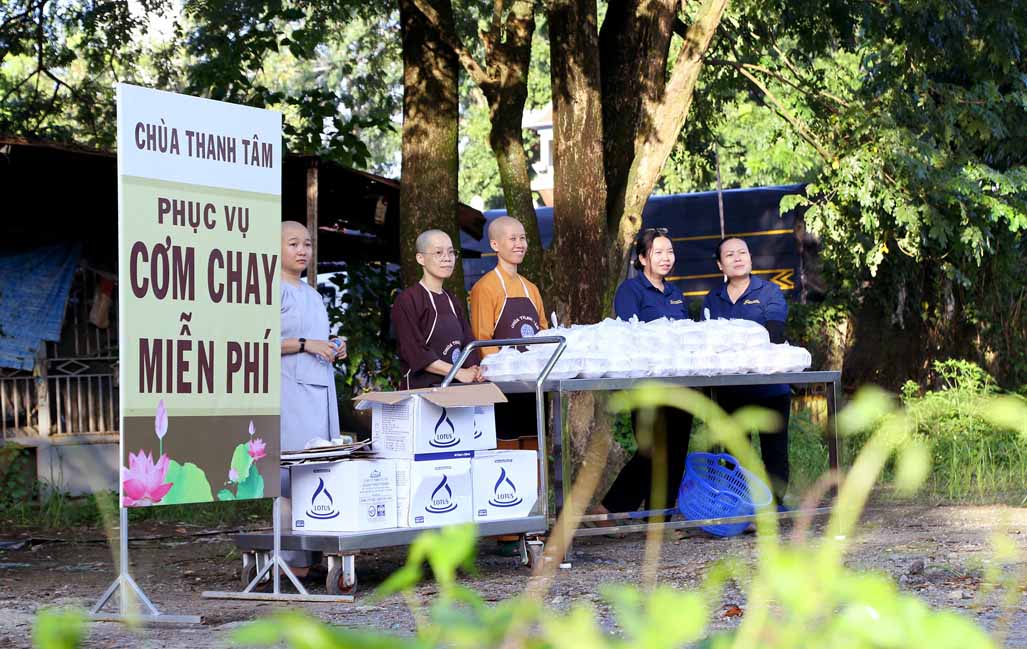 Ngày 21/ 09/ 2025 (30 tháng 7 năm Ất Tỵ) chùa Thanh Tâm và nhà hàng chay Huệ Tâm phục vụ 700 phần cơm chay và nước uống đến người dân địa phương.