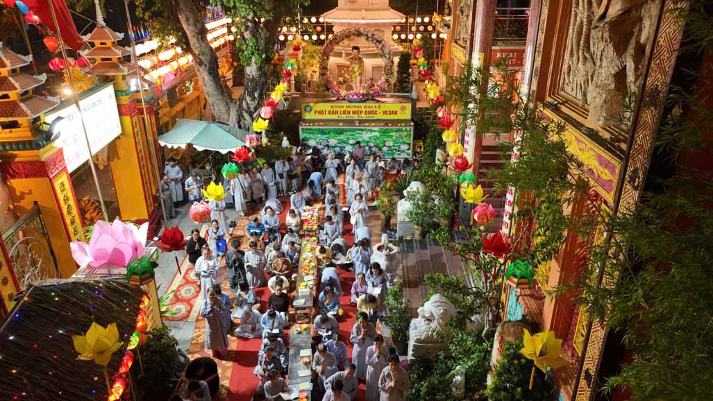 Sau đó chư Tăng cùng Phật tử đã nhiễu hoa đăng, chiêm bái hình ảnh từ bi của Bồ Tát trong ánh sáng lung linh nhiệm màu rồi vân tập về dưới tôn tượng Quan Thế Âm lộ thiên tiến hành lễ lạy ngũ bách danh Quán Thế Âm.