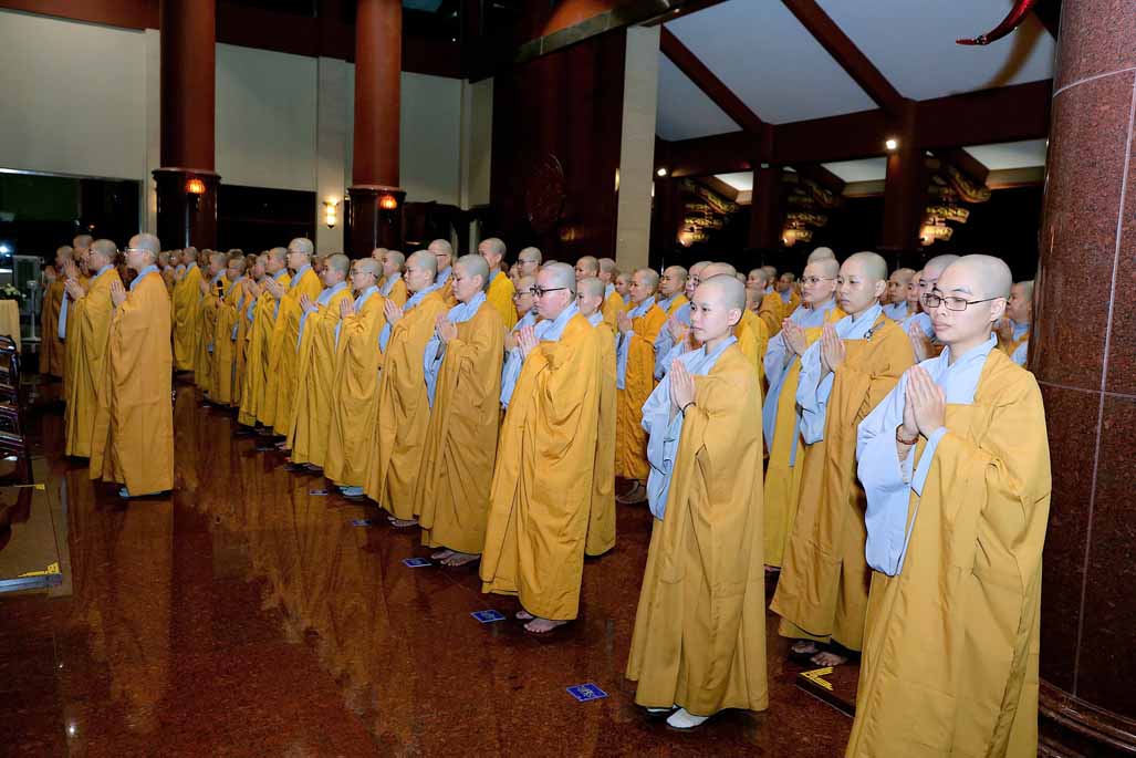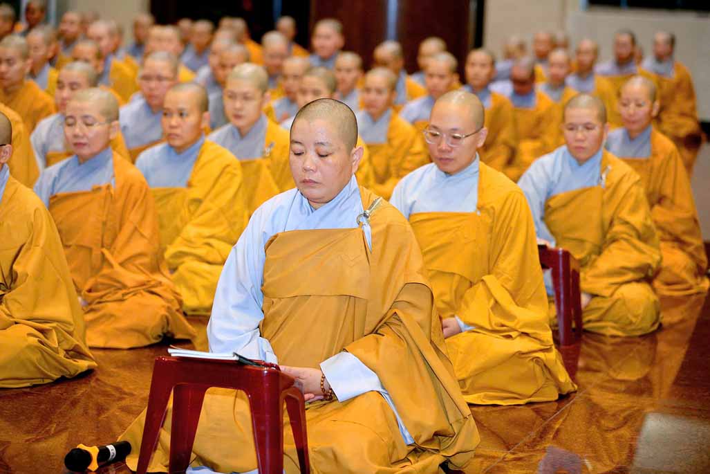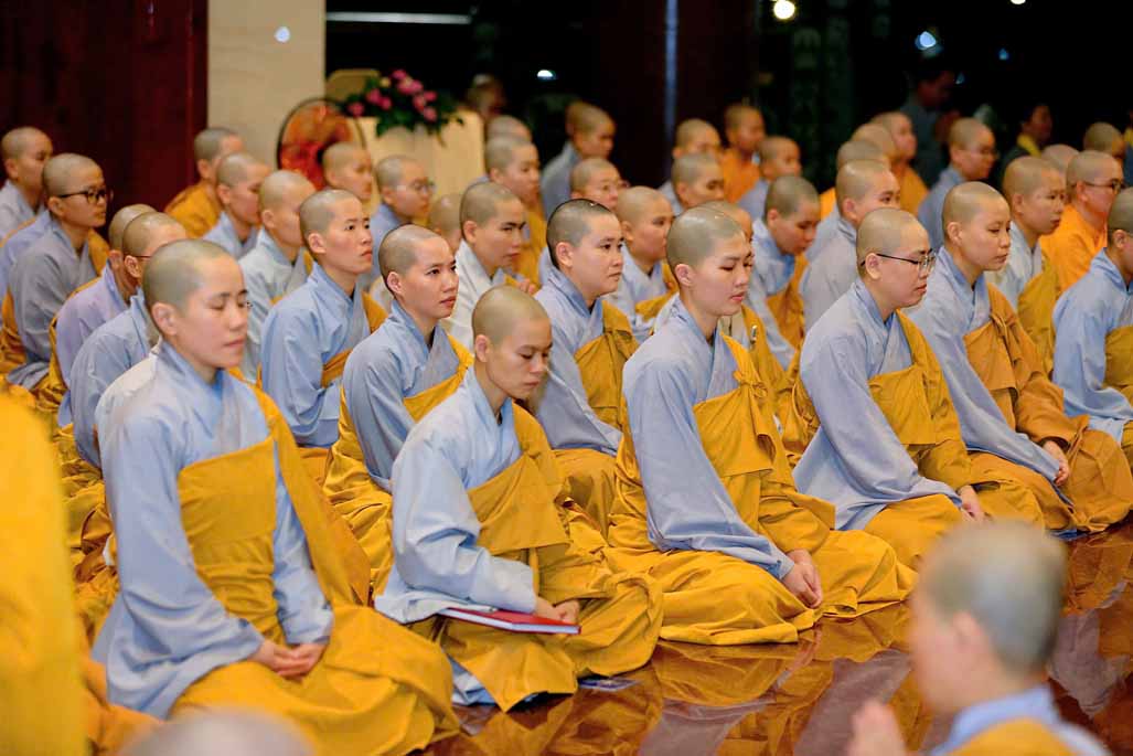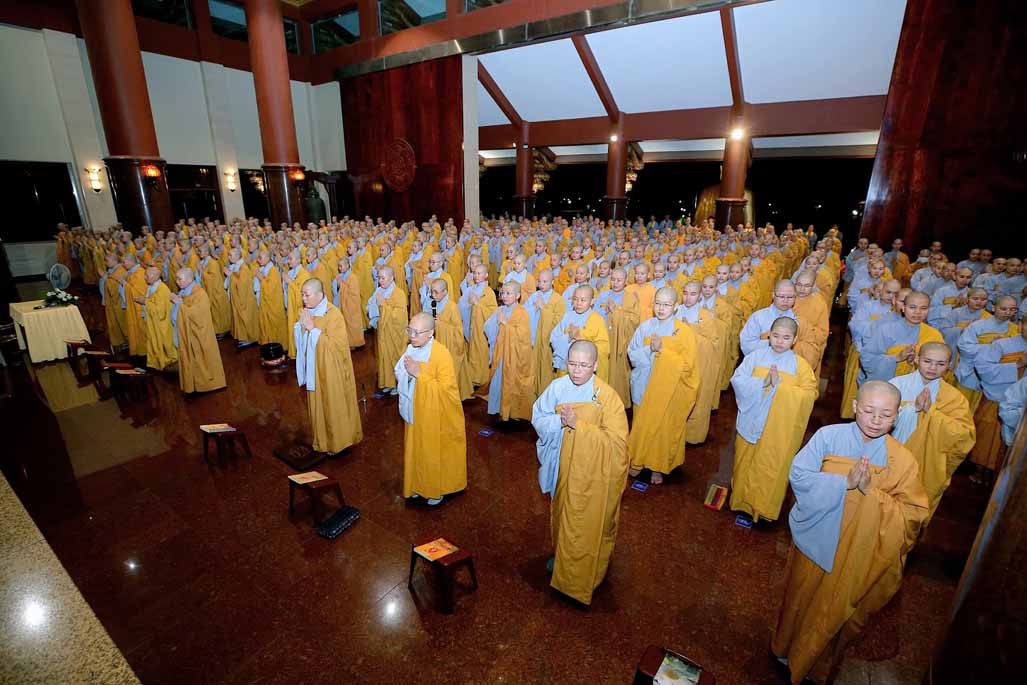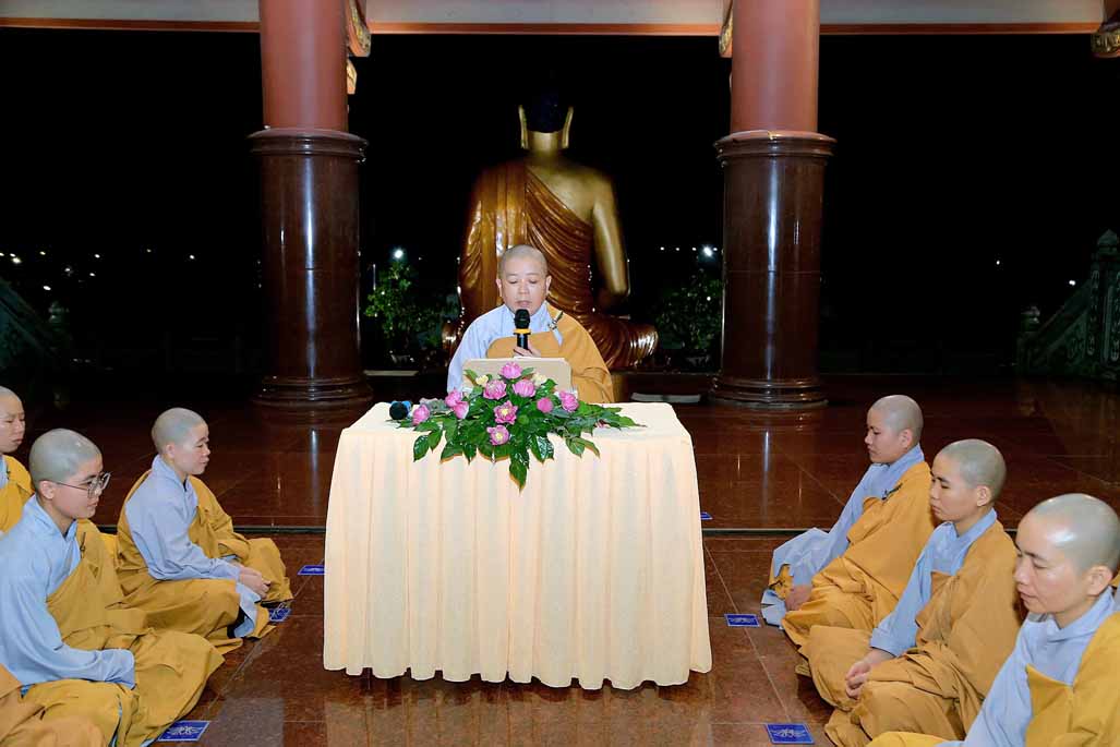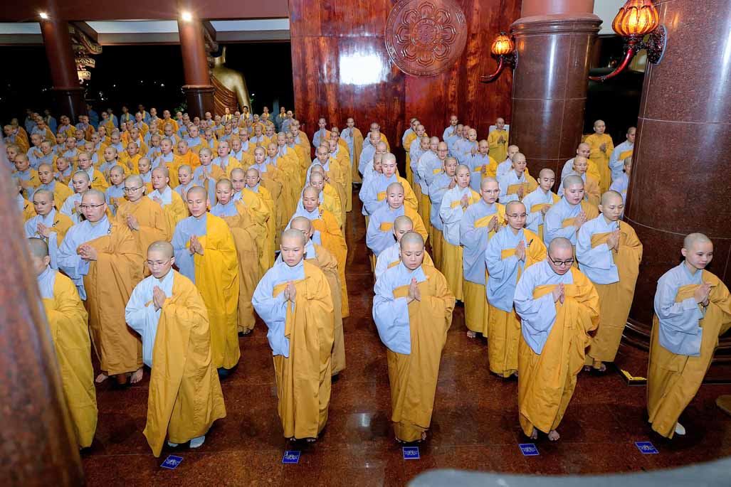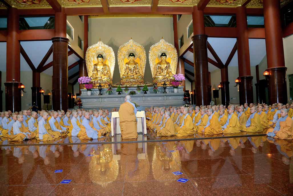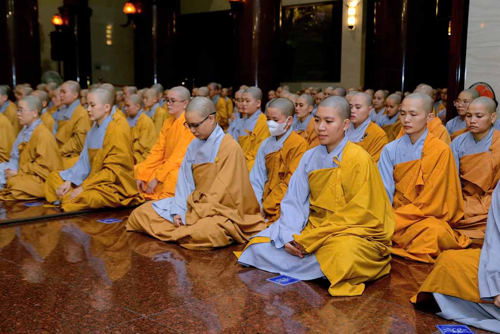Theo sư cô Lệ Duyên – Thông kiểm số chúng, kỳ Bố tát lần này gồm: Ni sư: 2 vị; Tỳ kheo Ni Bồ Tát: 338 vị; Tỳ kheo Ni Thanh Văn: 26 vị; Thức Xoa Ma Na: 60 vị; Sa-di Ni: 7 vị; Ưu Bà Tắc: 5 vị; Ưu Bà Di: 10 vị. Tổng số chúng là: 447 vị.