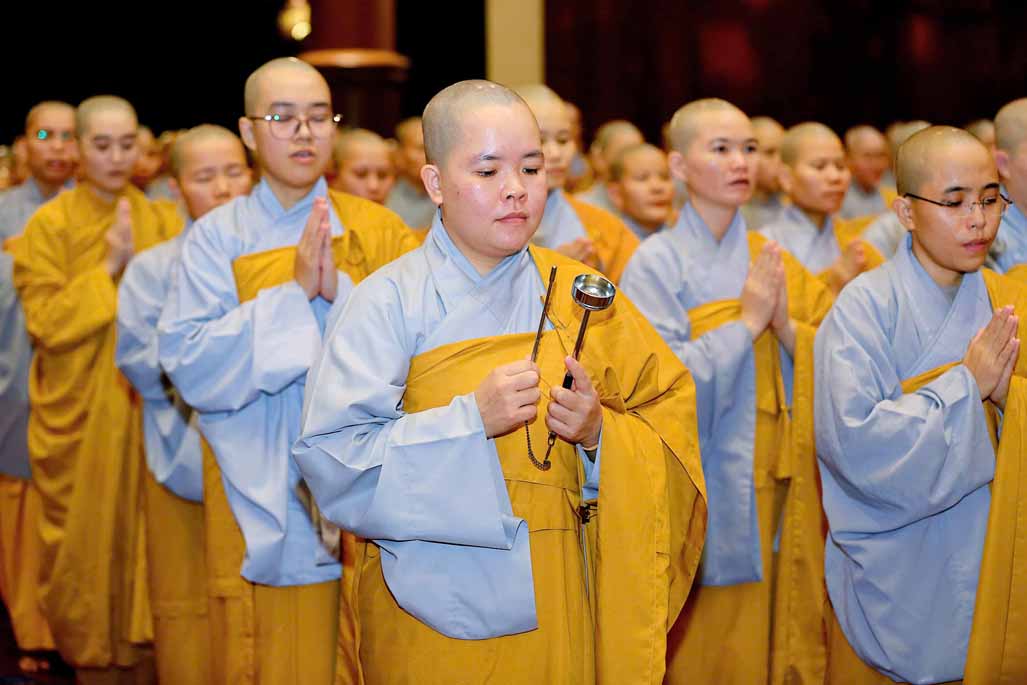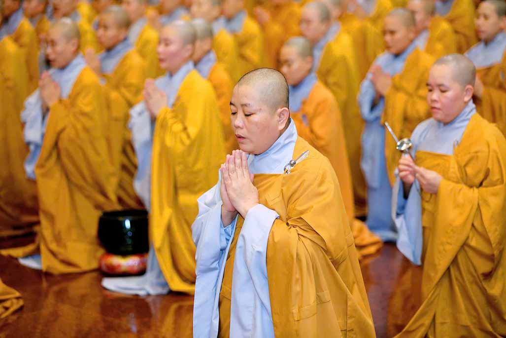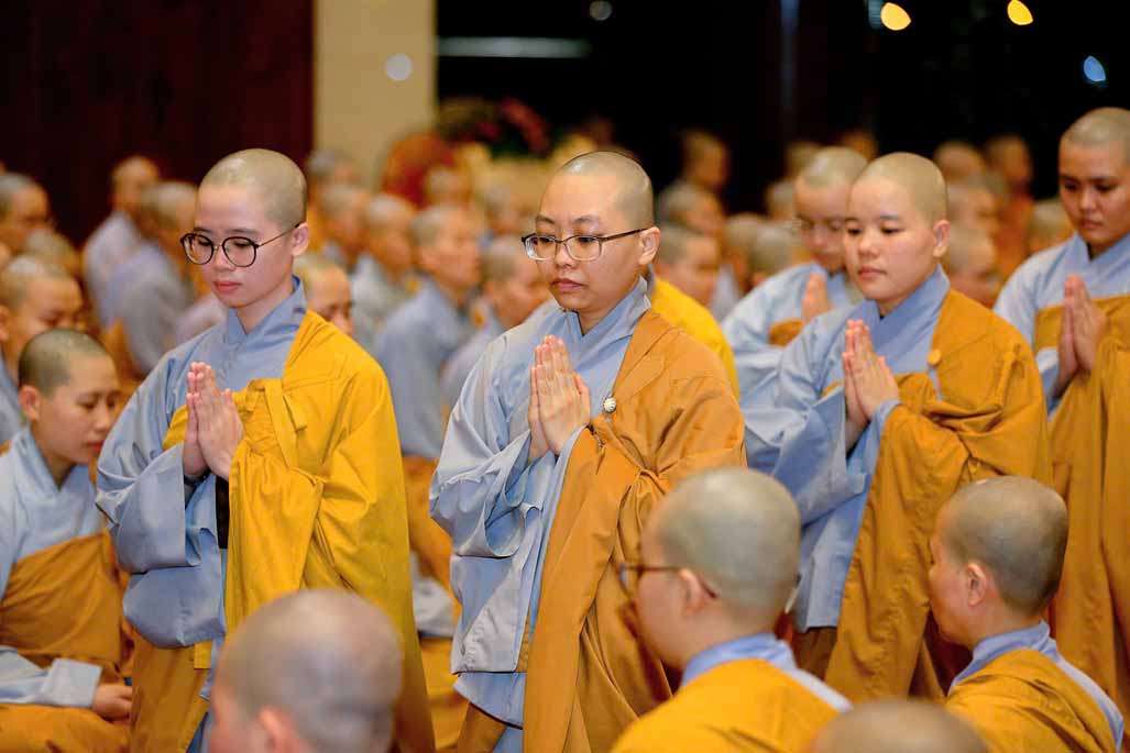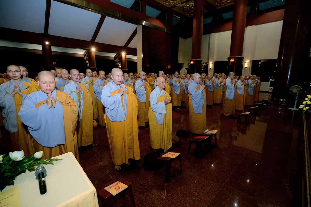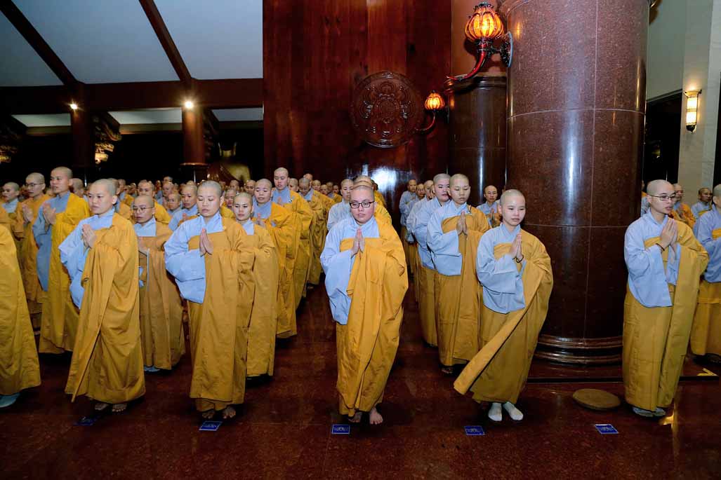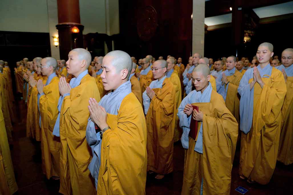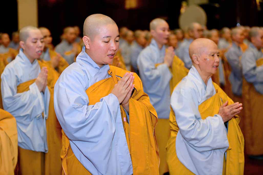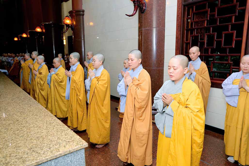 Theo sư cô Lệ Duyên – Thông kiểm số chúng, kỳ Bố tát lần này gồm: Ni sư: 2 vị; Tỳ kheo Ni Bồ Tát: 338 vị; Tỳ kheo Ni Thanh Văn: 26 vị; Thức Xoa Ma Na: 60 vị; Sa-di Ni: 7 vị; Ưu Bà Tắc: 5 vị; Ưu Bà Di: 10 vị. Tổng số chúng là: 447 vị.