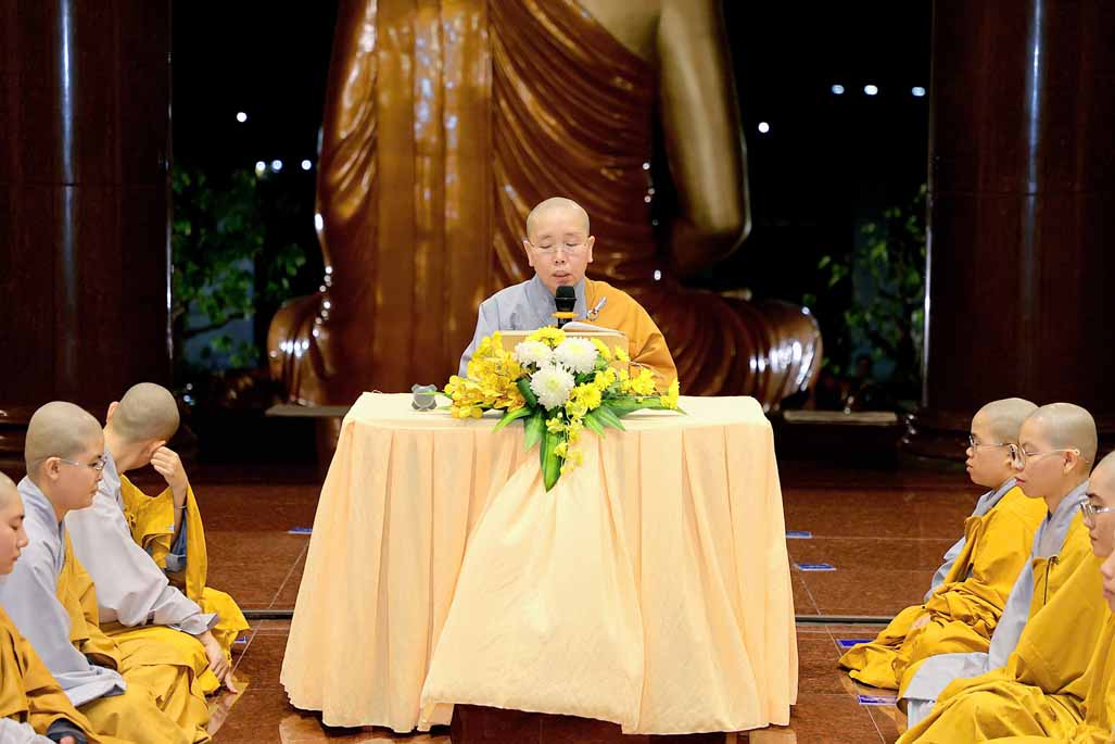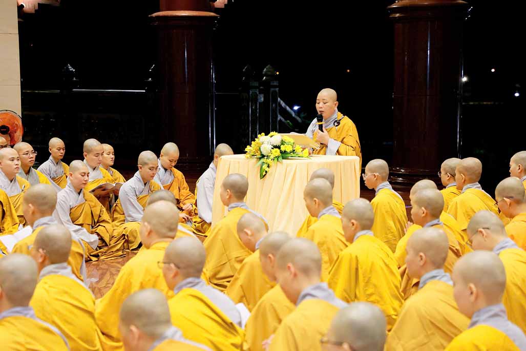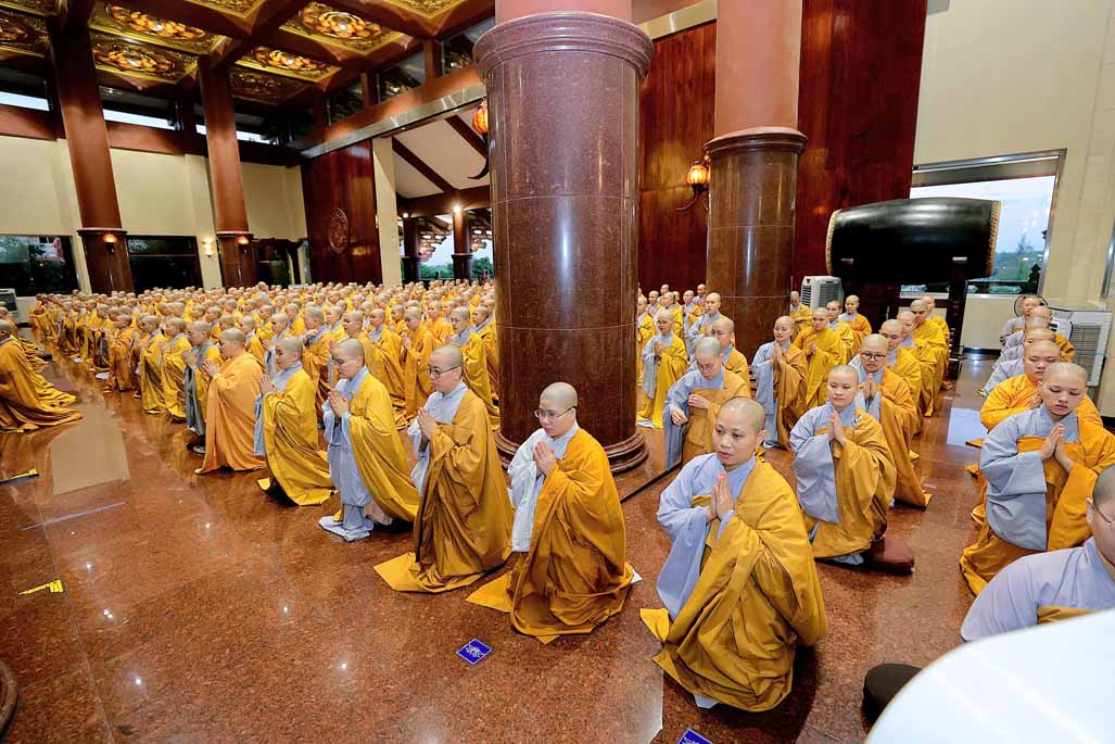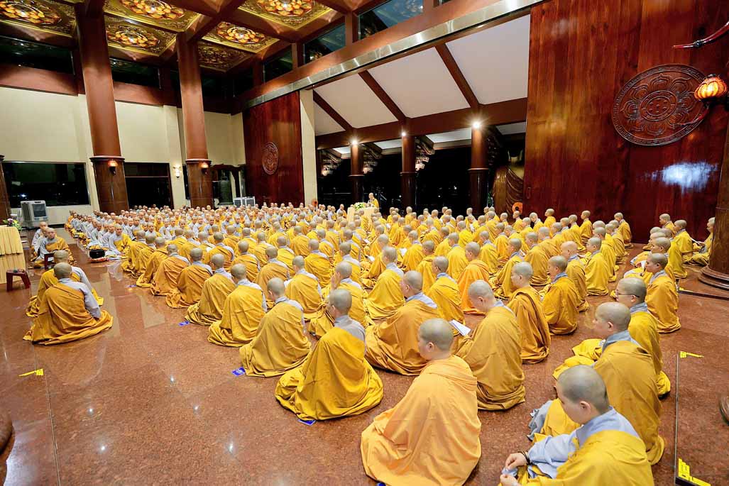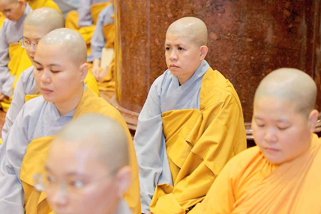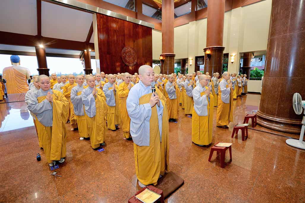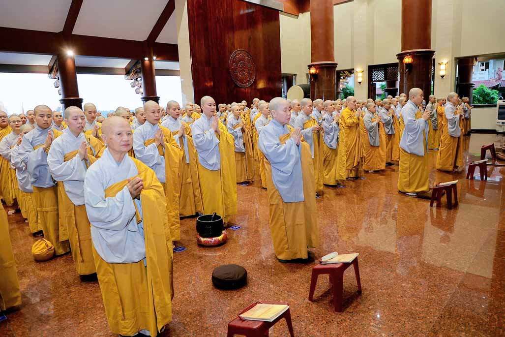 Theo sư cô Lê Duyên – Thông kiểm số chúng, kỳ Bố tát lần này Ni sư 2 vị, Tỳ kheo Ni Bồ Tát 338 vị, Tỳ kheo Ni Thanh Văn 28 vị, Thức xoa Ma na 51 vị, Sa di Ni 2 vị, Ưu Bà Tắc 5 vị, Ưu Bà Di 7 vị. Tổng số chúng 433 vị.