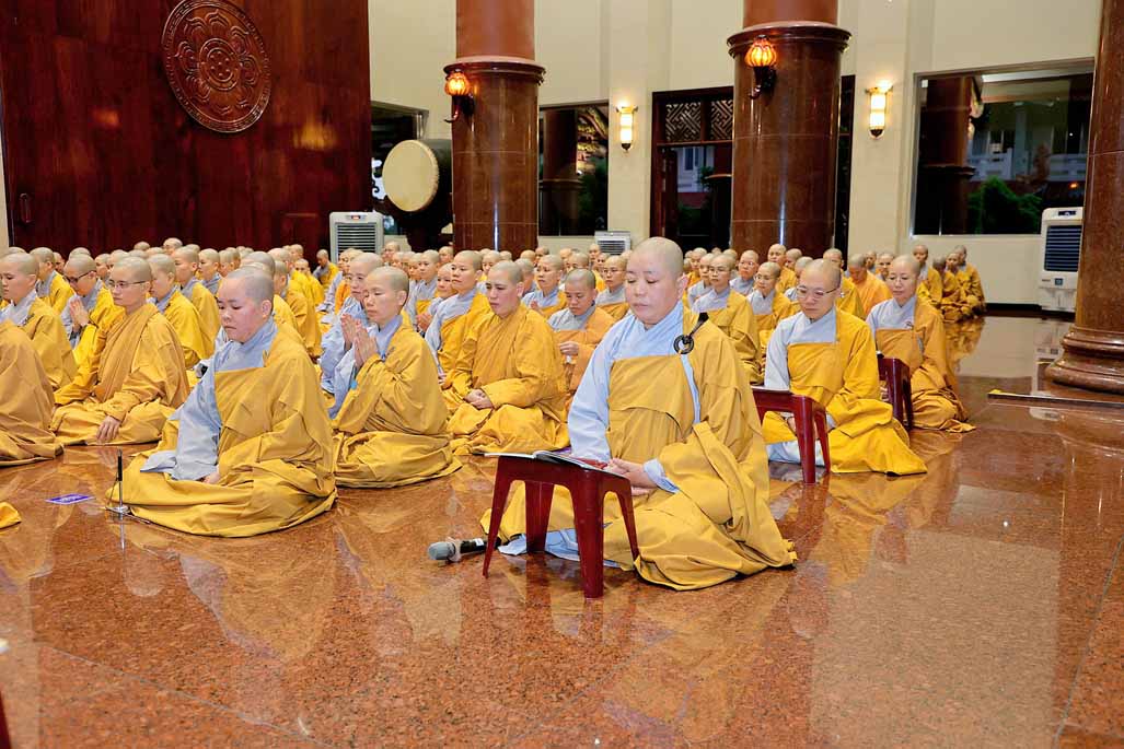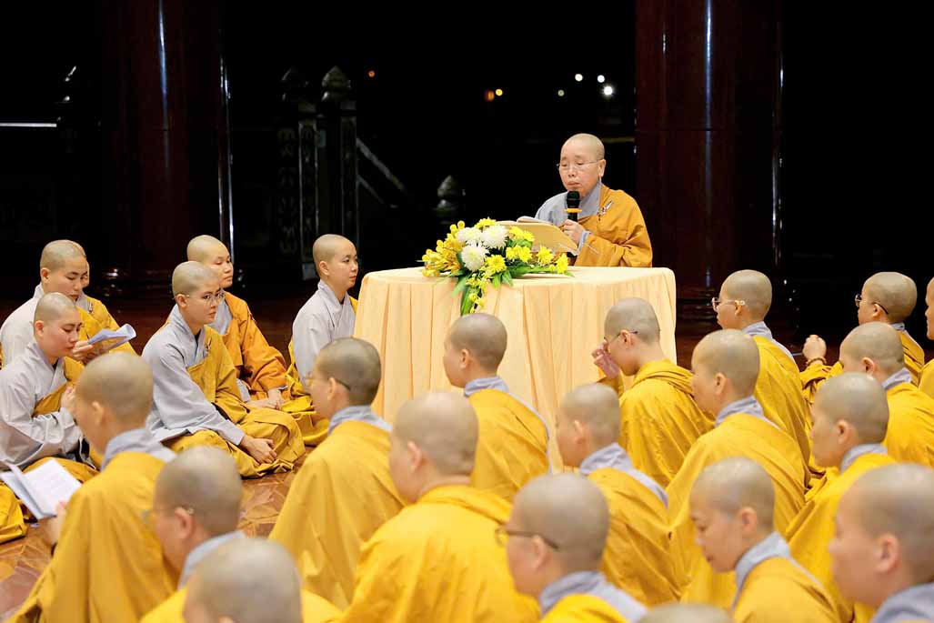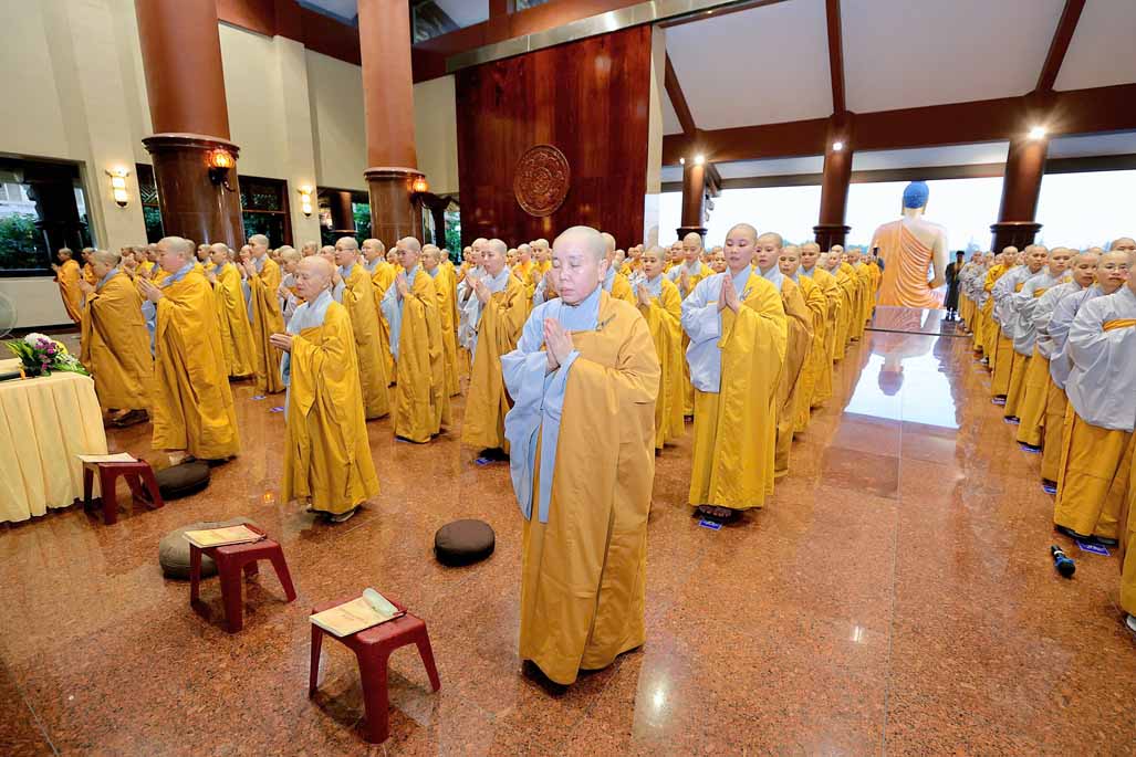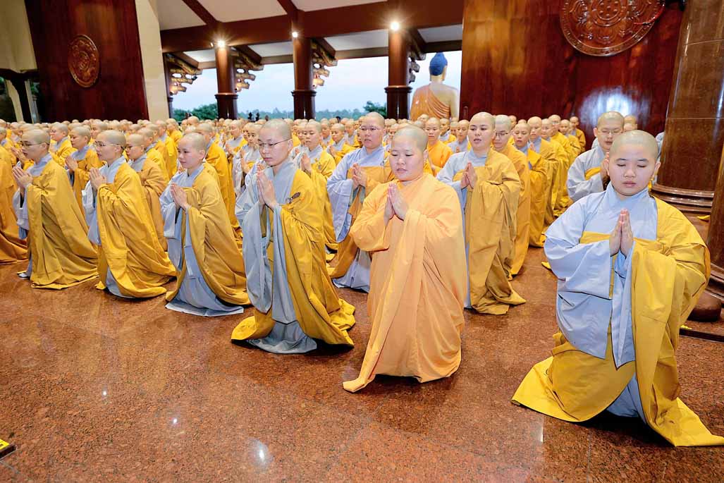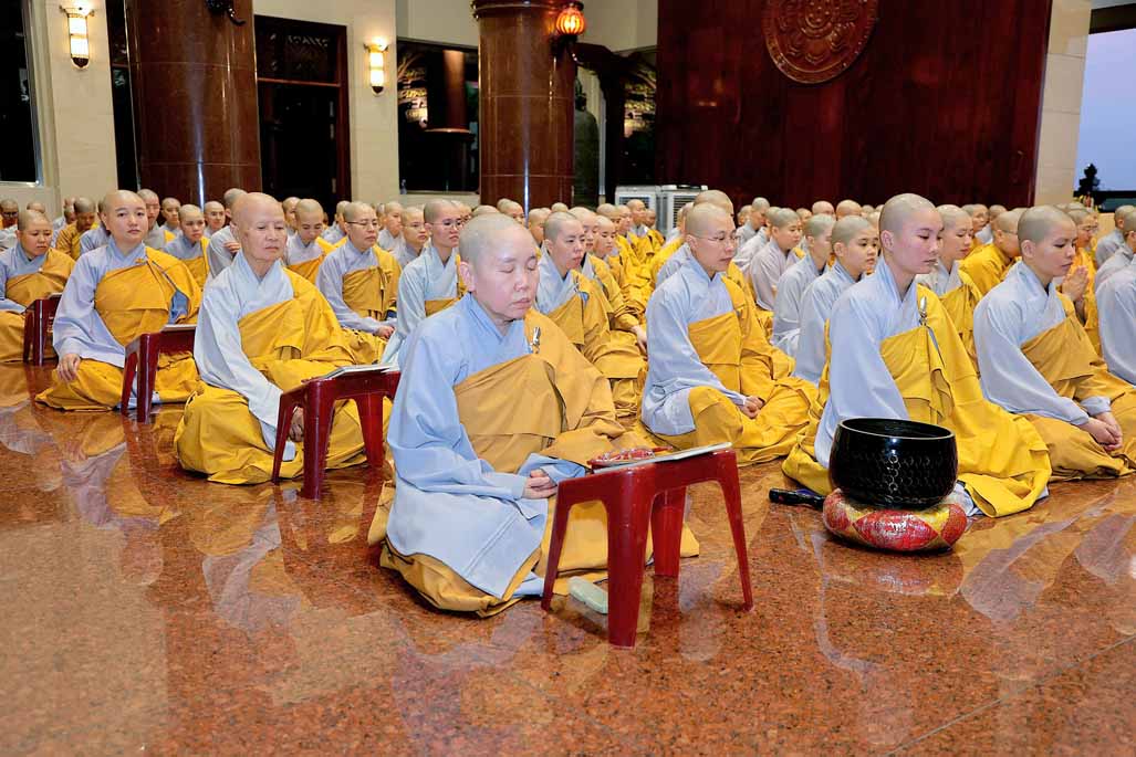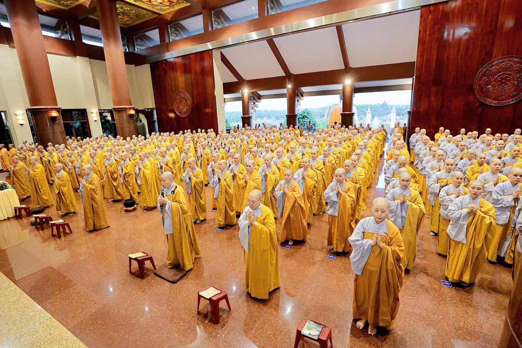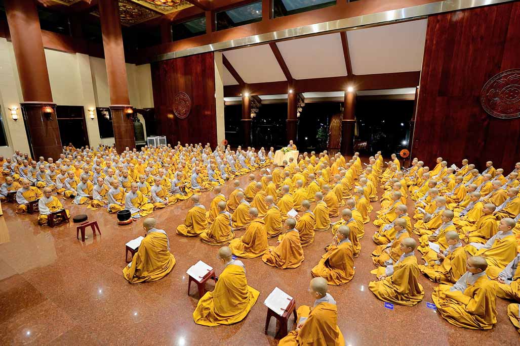 Theo sư cô Lê Duyên – Thông kiểm số chúng, kỳ Bố tát lần này Ni sư 2 vị, Tỳ kheo Ni Bồ Tát 338 vị, Tỳ kheo Ni Thanh Văn 28 vị, Thức xoa Ma na 51 vị, Sa di Ni 2 vị, Ưu Bà Tắc 5 vị, Ưu Bà Di 7 vị. Tổng số chúng 433 vị.