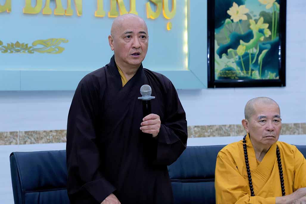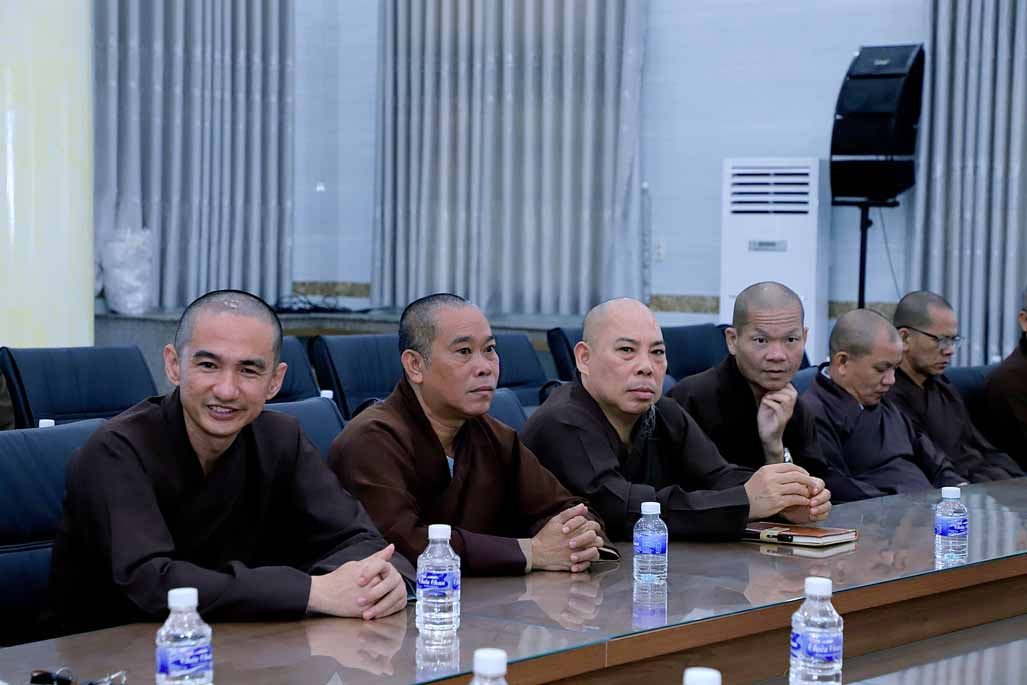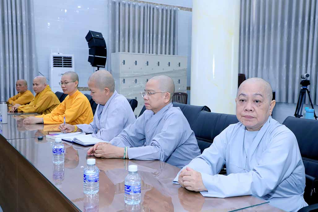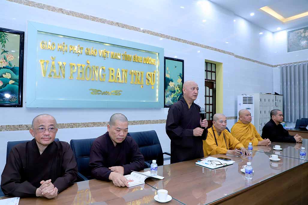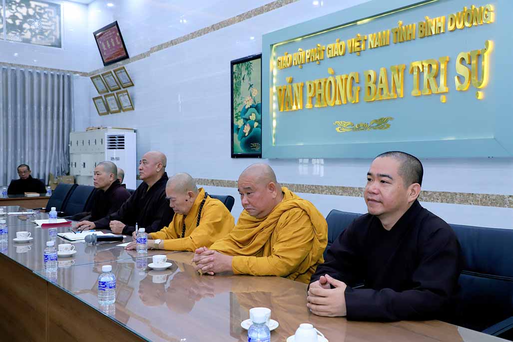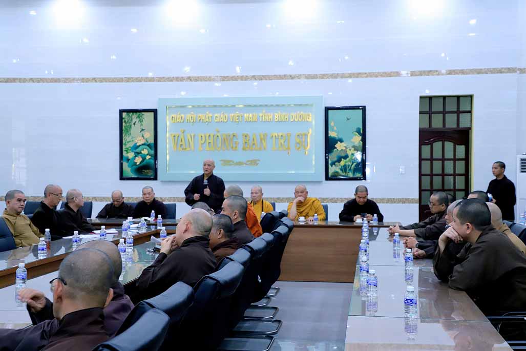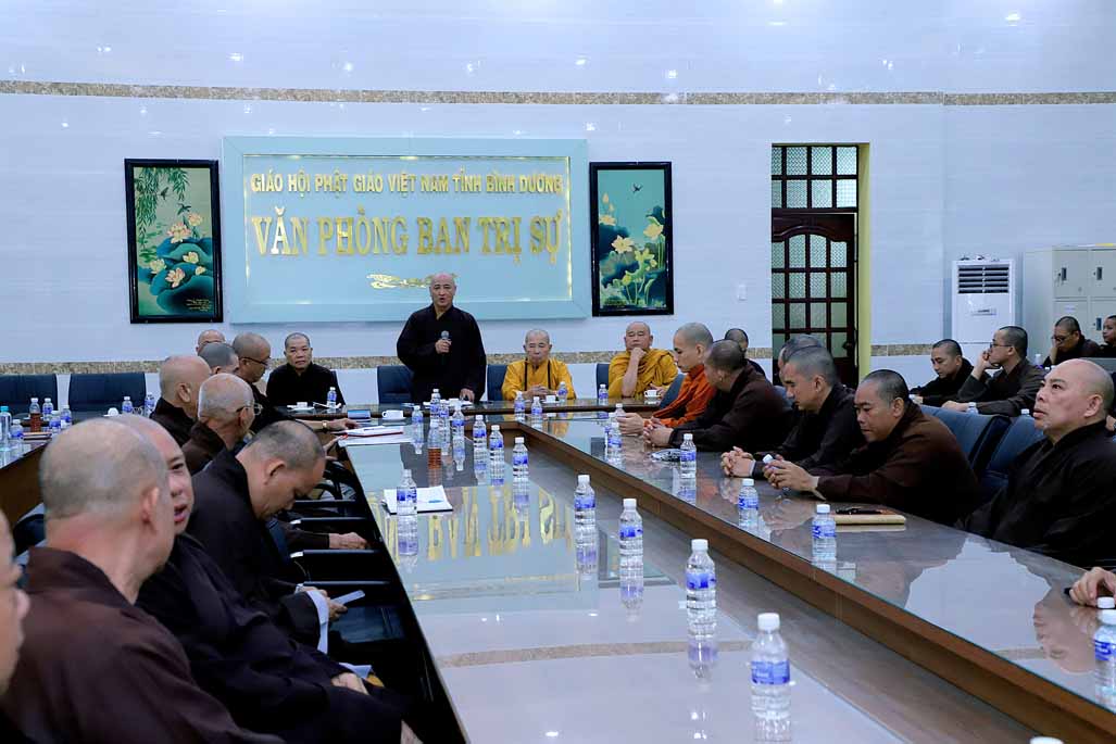 Phiên họp diễn ra với sự chủ tọa của Hòa thượng Thích Huệ Thông – Phó Chủ tịch HĐTS, Trưởng Ban Pháp chế Trung ương, Trưởng ban Trị sự GHPGVN tỉnh Bình Dương; HT. Thích Thiện Duyên – Ủy viên HĐTS, Phó ban Thường trực BTS GHPGVN tỉnh; TT. Thích Chơn Phát – Uỷ viên HĐTS, Phó BTS kiêm Trưởng Ban Giáo dục Phật giáo tỉnh; TT. Thích Minh Vũ – Phó BTS, Trưởng Ban Hoằng pháp Phật giáo tỉnh; TT. Thích Minh Lực – Phó ban Trị sự, Trưởng Ban Phật giáo Quốc tế GHPGVN tỉnh; ĐĐ. Thích Thiện Hưng – Phó ban Trị sự, Trưởng Ban Thông tin Truyền thông PG tỉnh; Ni trưởng Thích nữ Pháp Như – Phó ban Trị sự, Trưởng Phân ban Ni giới GHPGVN tỉnh; Ni sư Thích nữ Từ Thảo – Ủy viên HĐTS, Phó BTS kiêm Trưởng Ban Kinh tế Tài chánh GHPGVN tỉnh; TT. Thích Huệ Tín – Chánh Thư ký ban Trị sự Phật giáo tỉnh; ĐĐ. Thích Đức Dũng – Phó Thư ký kiêm Chánh Văn phòng ban Trị sự Phật giáo tỉnh; ĐĐ. Thích Huệ Nghiêm – Phó Thư ký kiêm Phó Văn phòng ban Trị sự Phật giáo tỉnh cùng chư Tôn đức Tăng Ni thành viên BTS tỉnh đồng trở về tham dự.