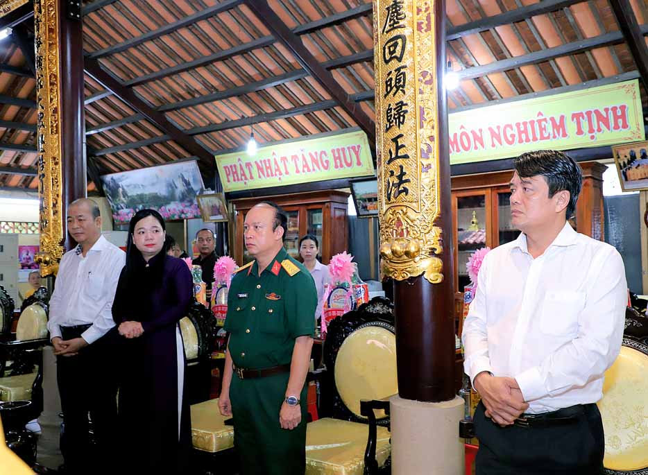 Cùng tham gia trong đoàn có ông Bùi Thanh Nhân – Ủy viên Ban Thường vụ Tỉnh ủy, Trưởng Ban Tuyên giáo và Dân vận Tỉnh ủy; ông Bùi Minh Thạnh – Phó Chủ tịch UBND tỉnh; Đại tá Nguyễn Đình Chuẩn – Tỉnh uỷ viên, Chính ủy BCHQS tỉnh; bà Nguyễn Thị Thảo Nguyên – Trưởng Ban Văn hóa Xã hội – HĐND tỉnh; ông Trịnh Đức Tài – Giám đốc Sở Dân tộc và Tôn giáo tỉnh cùng đại diện các sở ban ngành tỉnh HĐND, UBND, UBMTTQVN, Công an tỉnh Bình Dương.