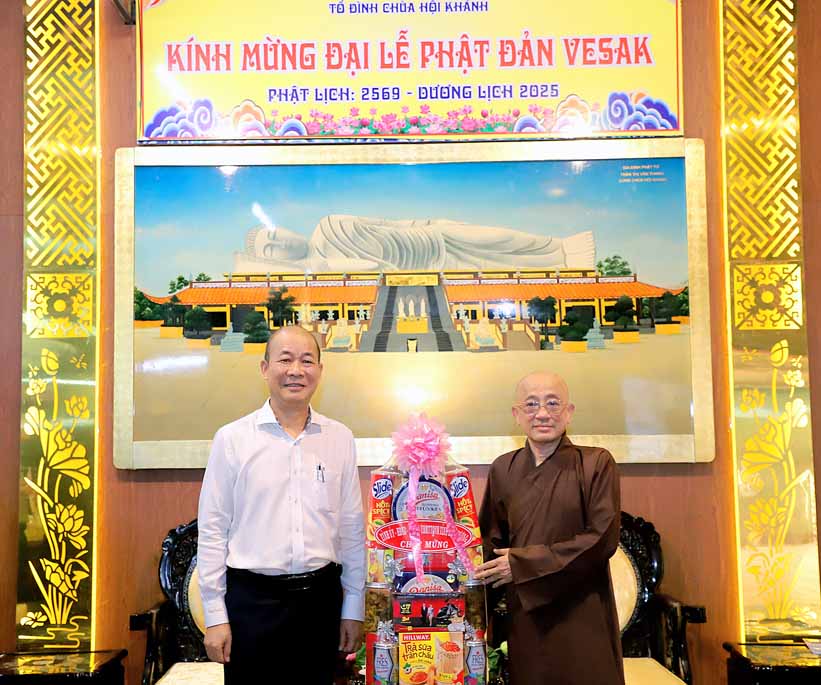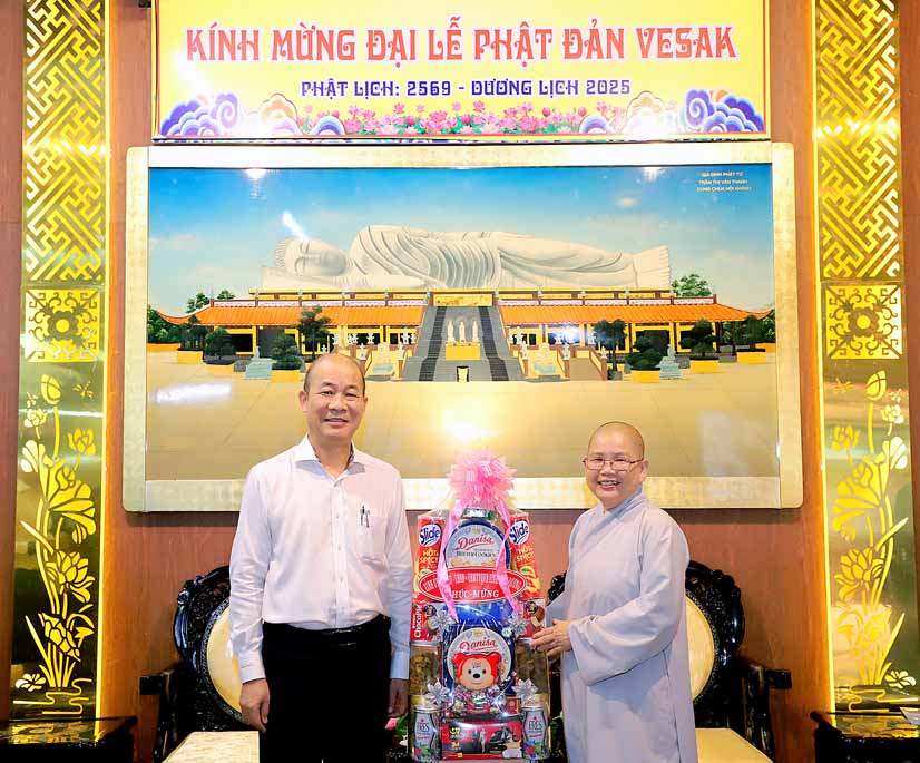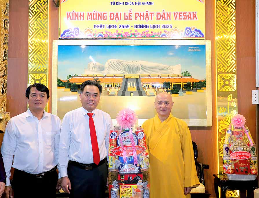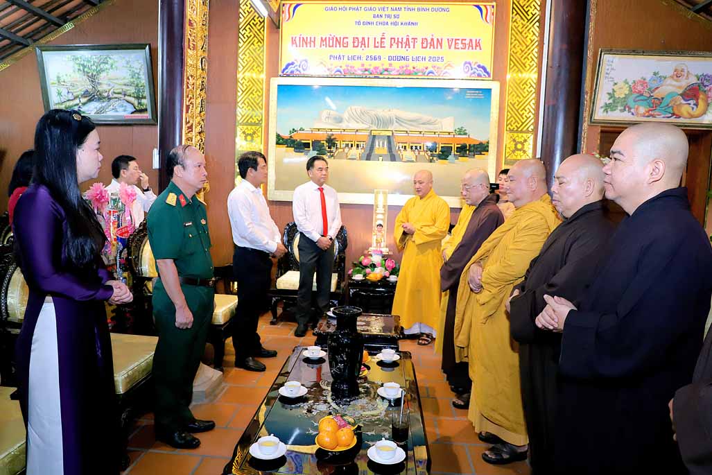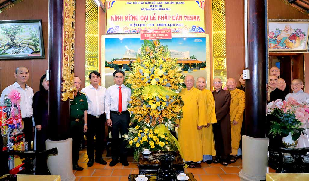 Sáng ngày 29/4/2025, nhân dịp Đại lễ Phật đản PL. 2569 – DL. 2025, đoàn lãnh đạo Tỉnh ủy do ông Nguyễn Lộc Hà – Phó Bí thư Thường trực Tỉnh ủy tỉnh Bình Dương làm trưởng đoàn đã đến thăm, chúc mừng Hòa thượng Thích Huệ Thông và Tăng Ni Phật giáo tỉnh nhà tại Văn phòng Ban Trị sự – Tổ đình Hội Khánh (P. Phú Cường, TP. Thủ Dầu Một).