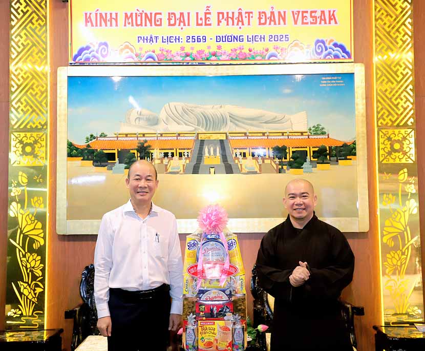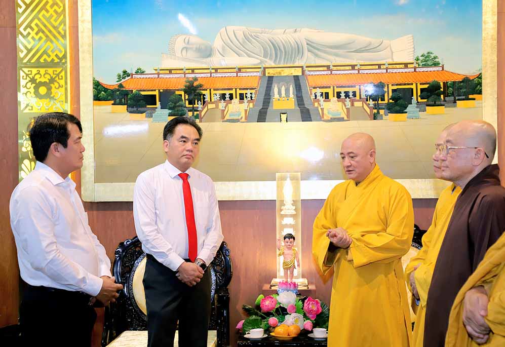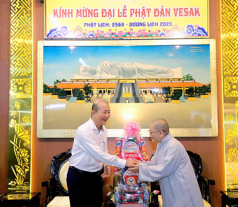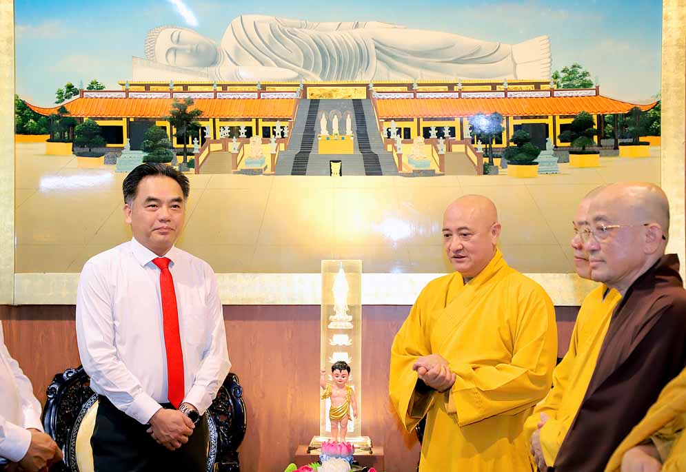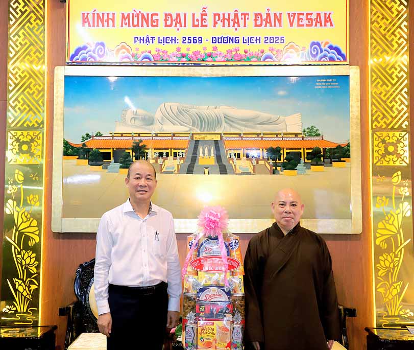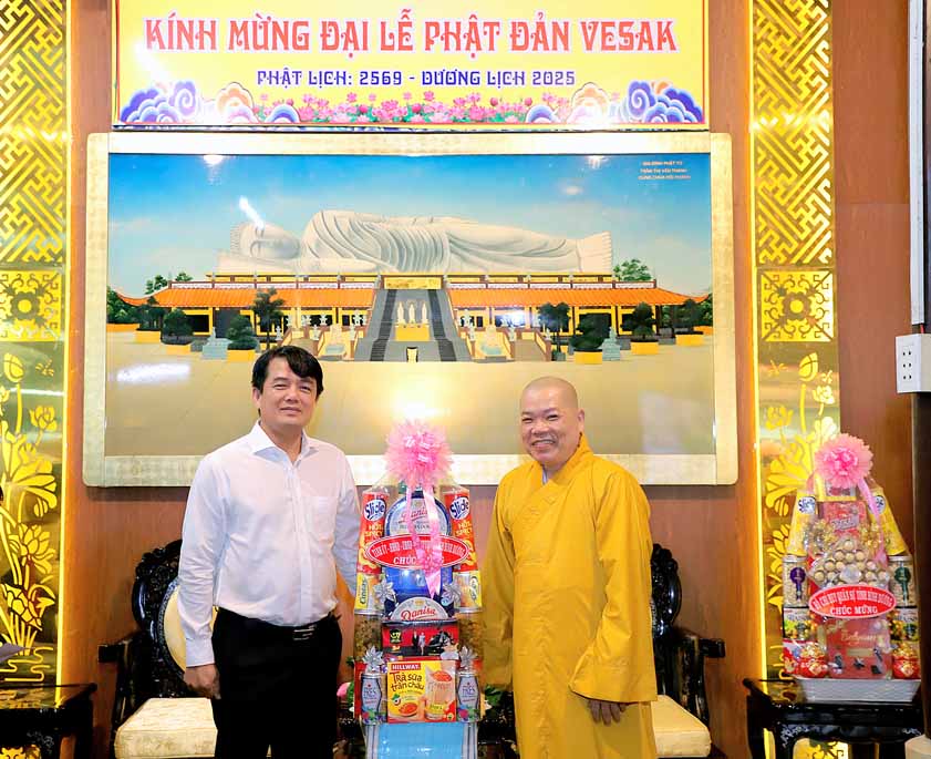 Sáng ngày 29/4/2025, nhân dịp Đại lễ Phật đản PL. 2569 – DL. 2025, đoàn lãnh đạo Tỉnh ủy do ông Nguyễn Lộc Hà – Phó Bí thư Thường trực Tỉnh ủy tỉnh Bình Dương làm trưởng đoàn đã đến thăm, chúc mừng Hòa thượng Thích Huệ Thông và Tăng Ni Phật giáo tỉnh nhà tại Văn phòng Ban Trị sự – Tổ đình Hội Khánh (P. Phú Cường, TP. Thủ Dầu Một).