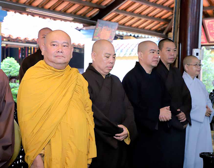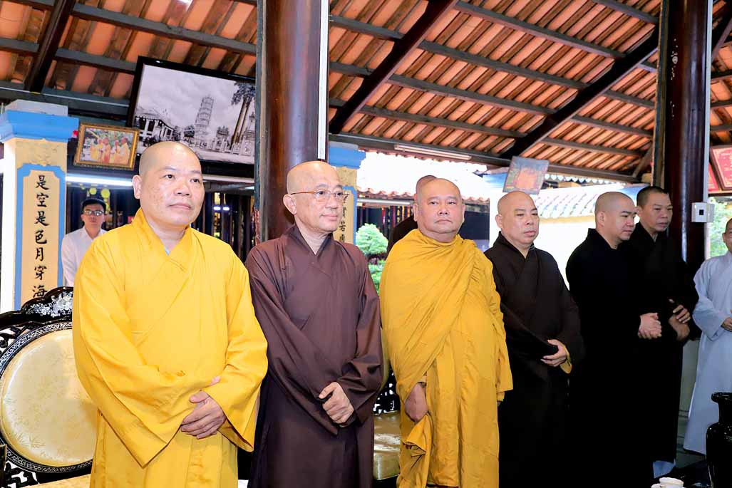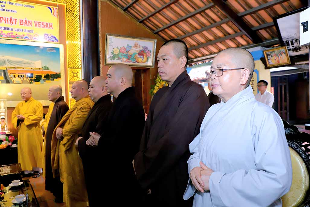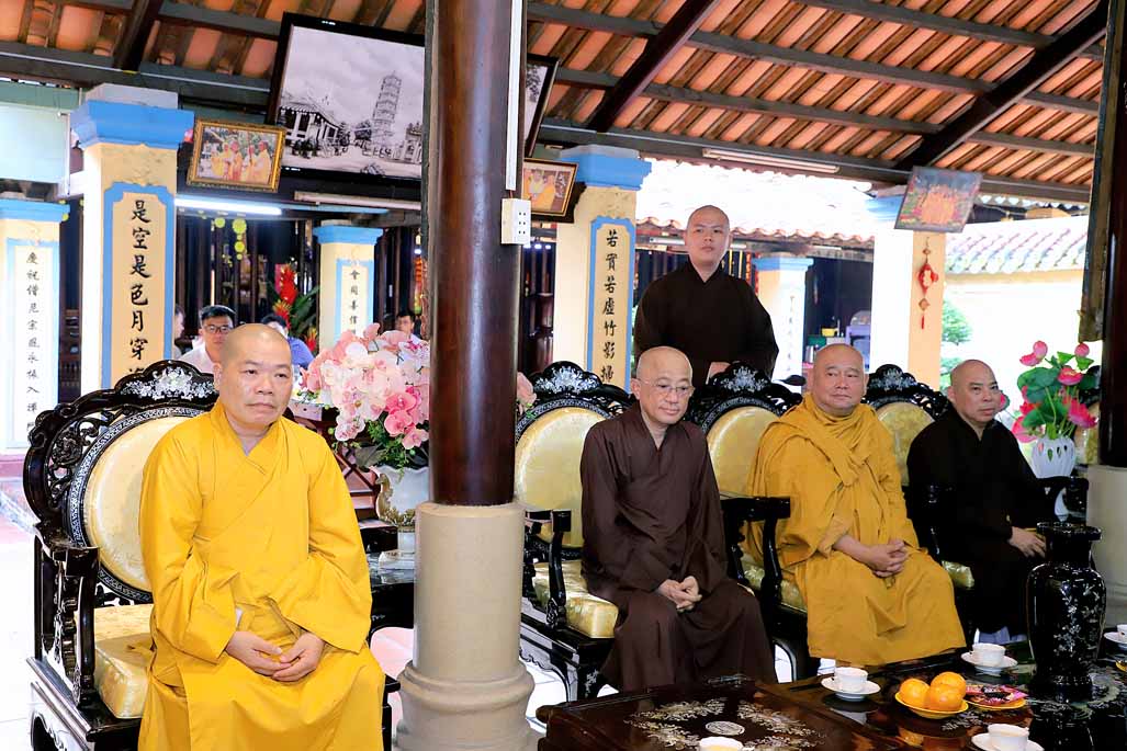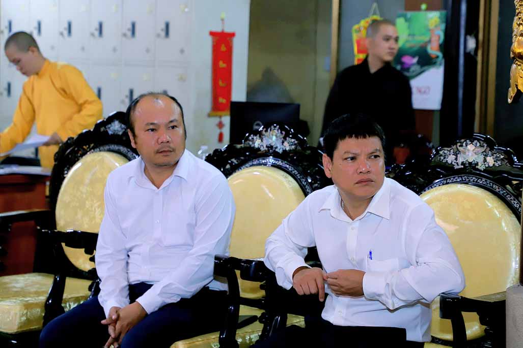 Thân mật đón tiếp đoàn có Hòa thượng Thích Huệ Thông – Phó Chủ tịch HĐTS, Trưởng ban Pháp chế Trung ương, Trưởng ban Trị sự GHPGVN tỉnh Bình Dương; TT. Thích Chơn Phát – Uỷ viên HĐTS, Phó BTS kiêm Trưởng Ban Giáo dục Phật giáo tỉnh; TT. Thích Minh Vũ – Phó BTS, Trưởng Ban Hoằng pháp Phật giáo tỉnh; TT. Thích Minh Lực – Phó ban Trị sự, Trưởng Ban Phật giáo Quốc tế GHPGVN tỉnh; ĐĐ. Thích Thiện Hưng – Phó ban Trị sự, Trưởng Ban Thông tin Truyền thông PG tỉnh; Ni sư Thích nữ Từ Thảo – Ủy viên HĐTS, Phó BTS kiêm Trưởng ban Kinh tế Tài chánh GHPGVN tỉnh; TT. Thích Huệ Tín – Chánh Thư ký ban Trị sự Phật giáo tỉnh cùng chư Tôn đức Tăng Ni thành viên BTS tỉnh.
