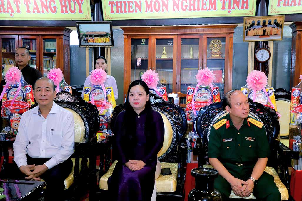 Đặc biệt, ông Phó Bí thư Thường trực Tỉnh ủy đã chúc mừng Hòa thượng Thích Huệ Thông vừa được Ủy ban Nhân dân tỉnh Bình Dương vinh danh là một trong những cá nhân tiêu biểu, đã có thời gian dài gắn bó với tỉnh nhà trong sự nghiệp xây dựng và phát triển tỉnh Bình Dương giai đoạn 1975 – 2025; khẳng định, hướng về Đại lễ Kỷ niệm 50 năm ngày Giải phóng miền Nam, thống nhất đất nước, GHPG Việt Nam tỉnh Bình Dương cùng chư Tăng Ni, Phật tử đã có những đóng góp tích cực, quan trọng chung tay, góp sức cùng các cấp chính quyền, đoàn thể thực hiện hiệu quả mục tiêu phát triển kinh tế – xã hội, công tác an sinh xã hội, nhân rộng các phong trào thi đua yêu nước cũng như xây dựng khối đại đoàn kết toàn dân.