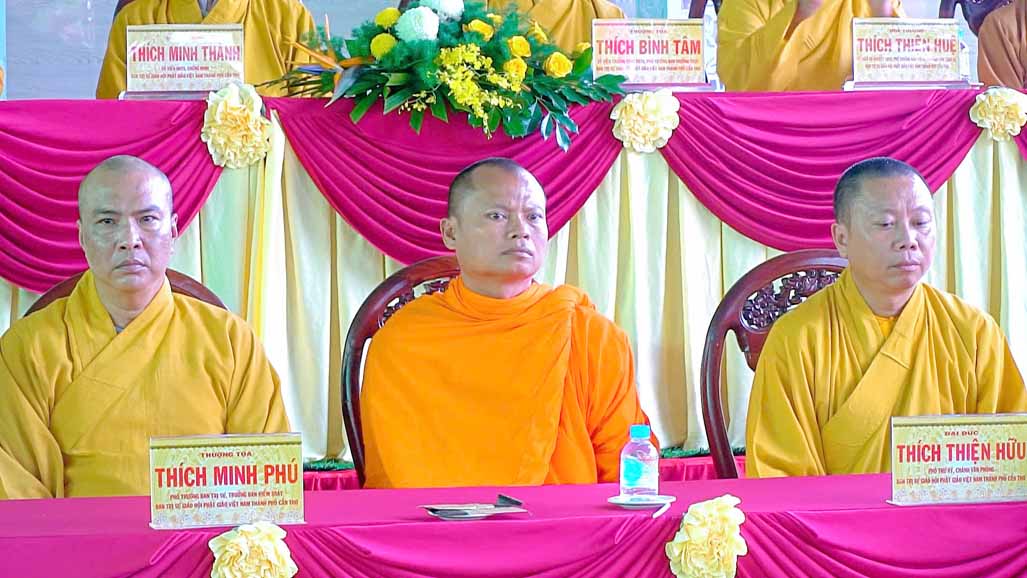 Về phía Phái đoàn Tp. Cần Thơ, có sự hiện diện của TT. Thích Bình Tâm – Ủy viên Thường trực Hội đồng Trị sự GHPGVN, Phó Trưởng ban Thường trực ban Trị sự GHPGVN Tp. Cần Thơ, Trưởng đoàn; Thượng tọa Thích Phước Thành – Ủy viên Hội đồng Trị sự GHPGVN, Phó Trưởng Ban Thường trực BTS GHPGVN Tp. Cần Thơ; HT. Thích Thiện Huệ – Ủy viên dự khuyết Hội đồng Trị sự GHPGVN, Trưởng Ban Tăng sự Phật giáo Tp. Cần Thơ; TT. Lý Hùng – Ủy viên Hội đồng Trị sự GHPGVN, Trưởng Ban Pháp chế; Ni trưởng Thích Như Hương – Phó ban Trị sự, Trưởng Phân ban Ni giới Phật giáo Tp. Cần Thơ cùng chư Tôn đức Tăng Ni Thường trực, thành viên ban Trị sự Phật giáo Tp. Cần Thơ.