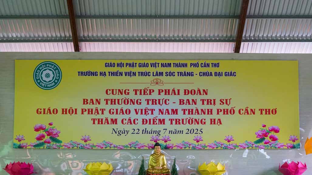 Ngày 22/ 7/ 2025 (28 tháng 6 năm Ất Tỵ), tại Thiền viện Trúc Lâm Sóc Trăng và chùa Đại Giác, chư Tôn đức Tăng Ni Ban Chức sự hai điểm trường hạ cùng quý Tăng Ni trụ trì và hành giả an cư, đã trang nghiêm cung đón Phái đoàn ban Thường trực BTS GHPGVN Tp. Cần Thơ quang lâm thăm và sách tấn chư hành giả an cư.