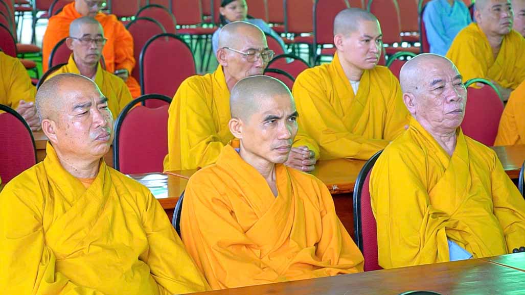 Tiếp theo, TT. Thích Thiện Nguyện đã trình bày báo cáo khái quát tình hình tu học và sinh hoạt hành trì của chư hành giả an cư tại hai điểm Trường hạ: Trường hạ Tăng tại Thiền viện Trúc Lâm Sóc Trăng (số 69 Trần Nhân Tông, phường Phú Lợi, Tp. Cần Thơ) có 109 hành giả an cư nội thiền và ngoại thiền. Trường hạ Ni tại Chùa Đại Giác (số 542 Nguyễn Huệ, phường Phú Lợi, Tp. Cần Thơ) có 155 hành giả an cư nội thiền và ngoại thiền. Công phu tu học của chư hành giả diễn ra nghiêm túc, thanh tịnh, đúng tinh thần pháp an cư kiết hạ; thể hiện rõ sự tiến tu đạo nghiệp và tinh thần hòa hợp trong Tăng đoàn.