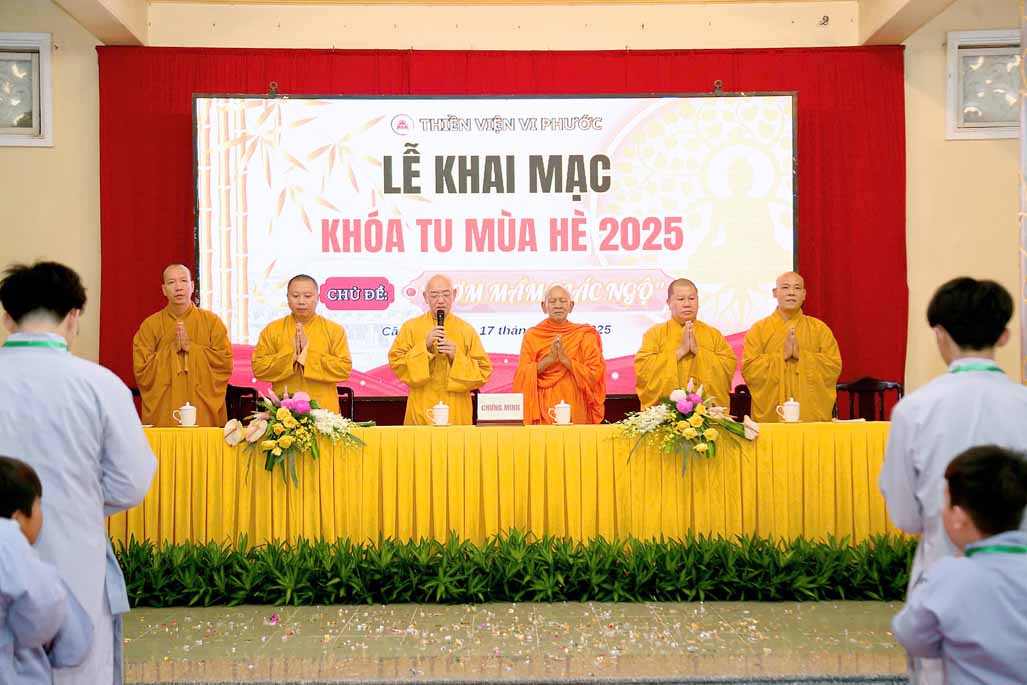 Buổi lễ khai mạc vinh dự đón tiếp sự quang lâm chứng minh của Hòa thượng Đào Như – Phó Chủ tịch Hội đồng Trị sự GHPGVN, Trưởng ban Trị sự GHPGVN tỉnh Cần Thơ, Thượng tọa Thích Bình Tâm – Ủy viên Thường trực Hội đồng Trị sự, Phó Trưởng Ban Thường trực ban Trị sự GHPGVN TP. Cần Thơ, Thượng tọa Thích Chiếu Nhơn – Ủy viên Thường trực ban Trị sự GHPGVN, Phó ban Thường trực Ban Hướng dẫn Phật tử TP. Cần Thơ. Thượng tọa Thích Thanh Lập – Phó ban Trị sự GHPGVN, Trưởng Ban Hướng dẫn Phật tử TP. Cần Thơ, Đại đức Thích Thiện Hữu – Chánh Văn phòng ban Trị sự GHPGVN tỉnh Cần Thơ, Đại đức Thích Đạt Ma Hải Huyền – Ủy viên ban Trị sự GHPGVN tỉnh Cần Thơ, Ni sư Thích Chơn Như – Phó Trưởng ban Trị sự kiêm Trưởng Ban Kinh tế Tài chính GHPGVN TP. Cần Thơ, Trụ trì Thiền viện Vi Phước, Trưởng ban Tổ chức khóa tu, Ni sư Thích Huệ Trí – Phó Trụ trì Thiền viện Vi Phước, Phó ban Tổ chức khóa tu.