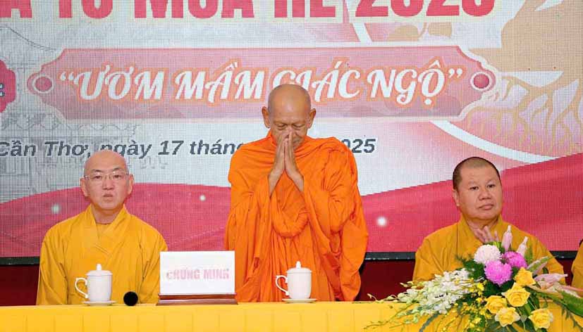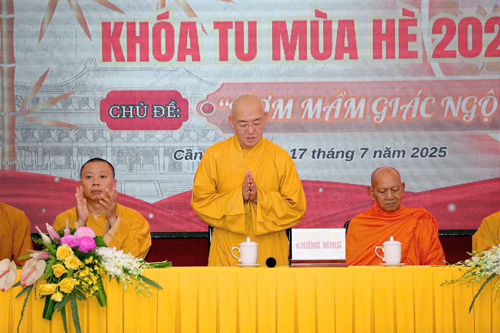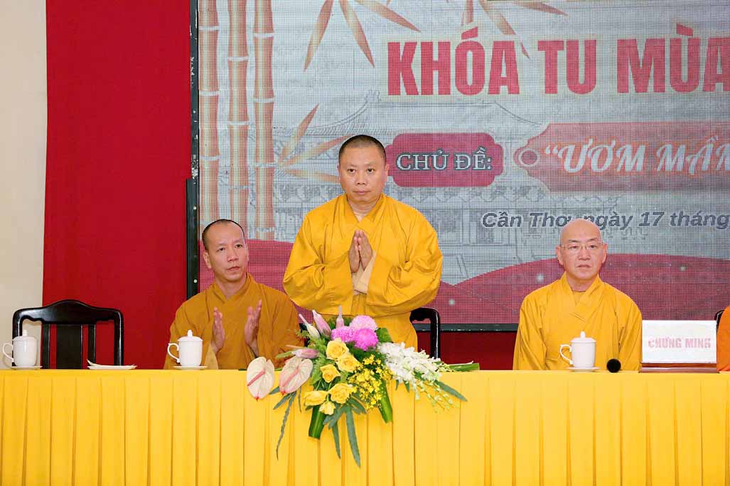 Buổi lễ khai mạc vinh dự đón tiếp sự quang lâm chứng minh của Hòa thượng Đào Như – Phó Chủ tịch Hội đồng Trị sự GHPGVN, Trưởng ban Trị sự GHPGVN tỉnh Cần Thơ, Thượng tọa Thích Bình Tâm – Ủy viên Thường trực Hội đồng Trị sự, Phó Trưởng Ban Thường trực ban Trị sự GHPGVN TP. Cần Thơ, Thượng tọa Thích Chiếu Nhơn – Ủy viên Thường trực ban Trị sự GHPGVN, Phó ban Thường trực Ban Hướng dẫn Phật tử TP. Cần Thơ. Thượng tọa Thích Thanh Lập – Phó ban Trị sự GHPGVN, Trưởng Ban Hướng dẫn Phật tử TP. Cần Thơ, Đại đức Thích Thiện Hữu – Chánh Văn phòng ban Trị sự GHPGVN tỉnh Cần Thơ, Đại đức Thích Đạt Ma Hải Huyền – Ủy viên ban Trị sự GHPGVN tỉnh Cần Thơ, Ni sư Thích Chơn Như – Phó Trưởng ban Trị sự kiêm Trưởng Ban Kinh tế Tài chính GHPGVN TP. Cần Thơ, Trụ trì Thiền viện Vi Phước, Trưởng ban Tổ chức khóa tu, Ni sư Thích Huệ Trí – Phó Trụ trì Thiền viện Vi Phước, Phó ban Tổ chức khóa tu.