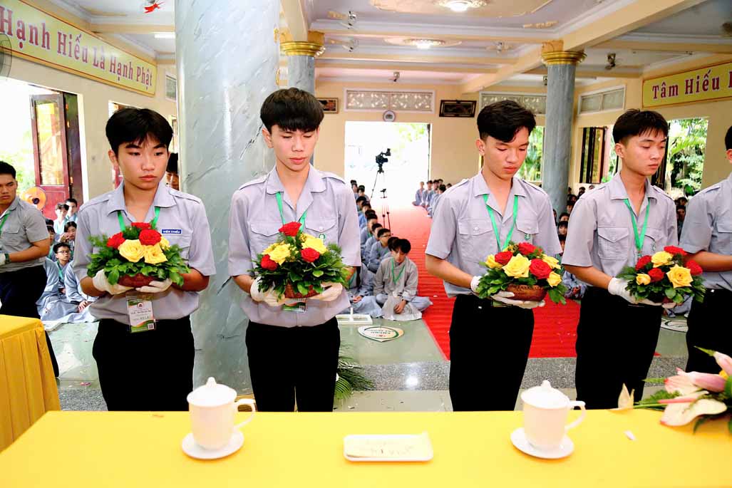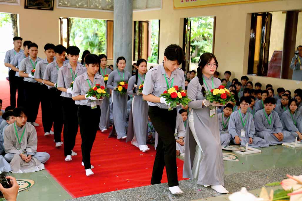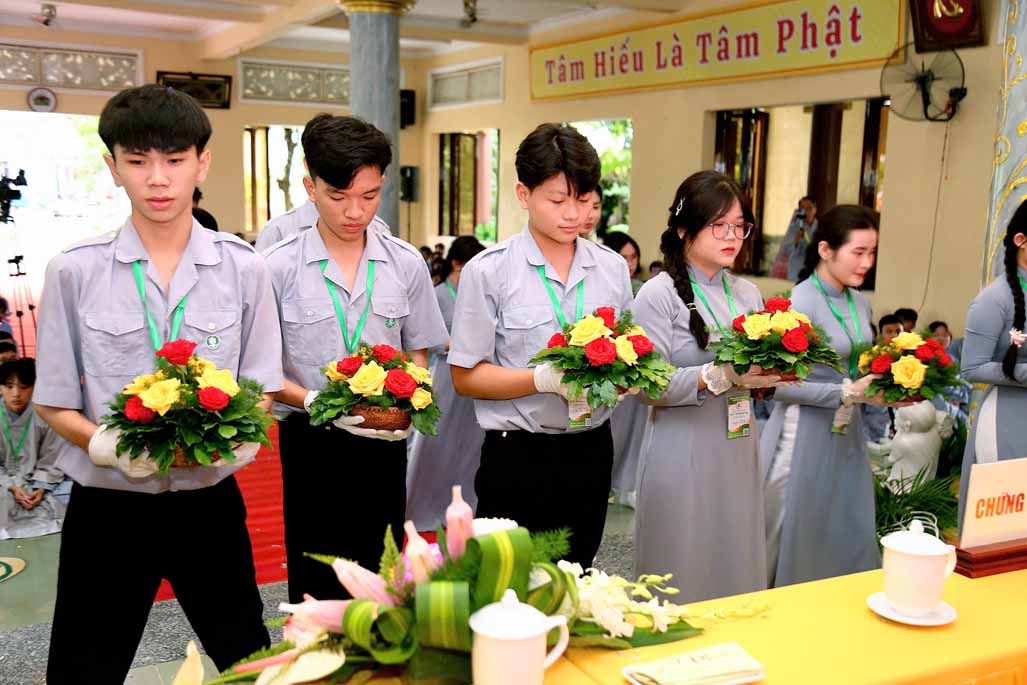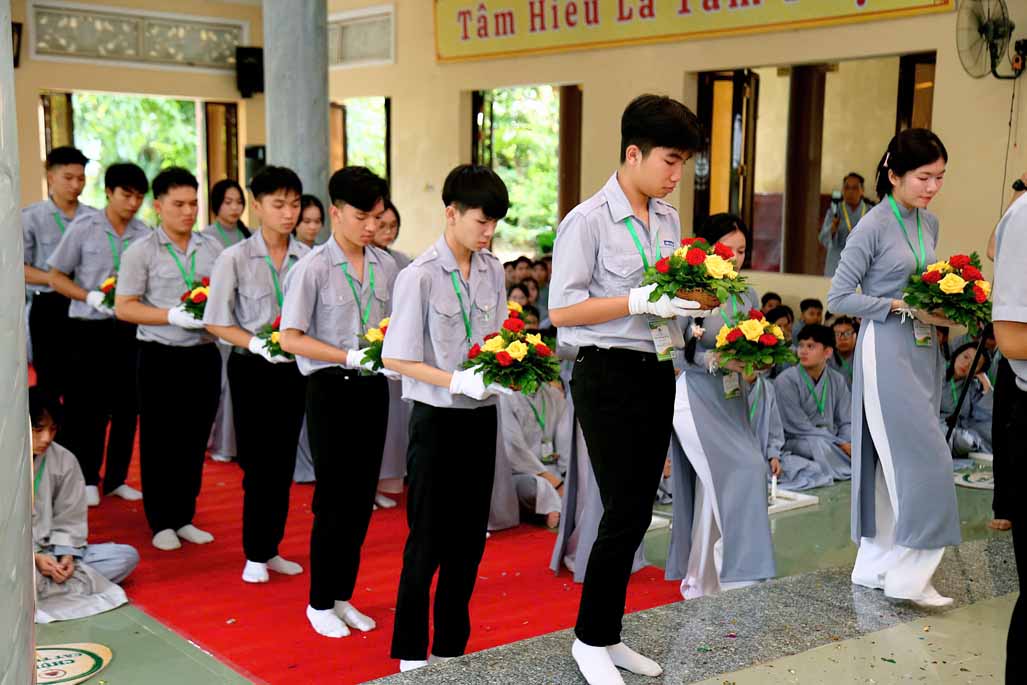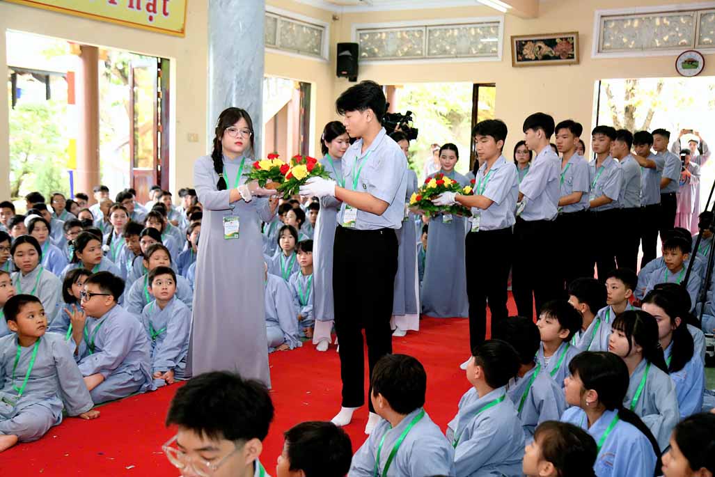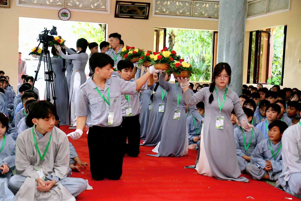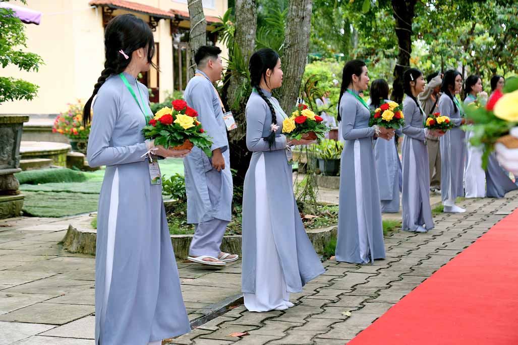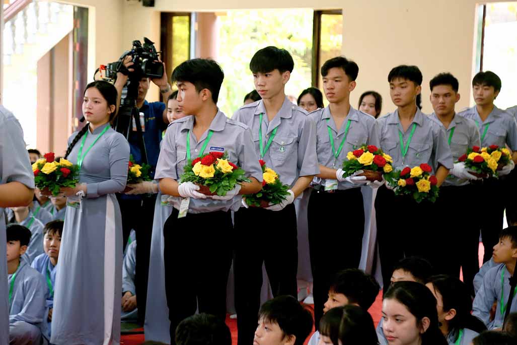 Mở đầu buổi lễ khai mạc là tiết mục múa dâng hoa do Phật tử Thiền viện Vi Phước trình diễn, mang đến không khí tươi vui và trang trọng cho sự kiện.