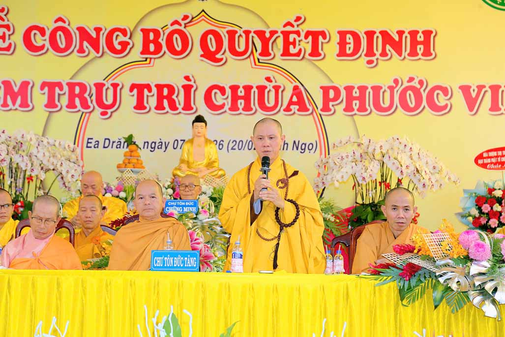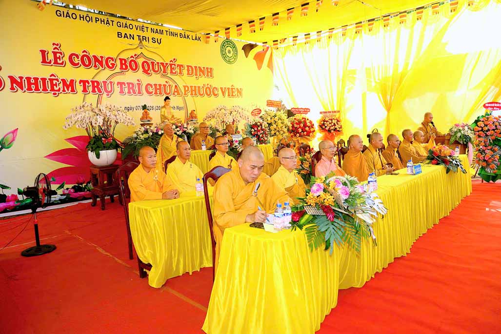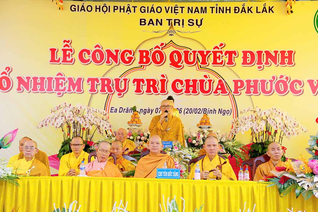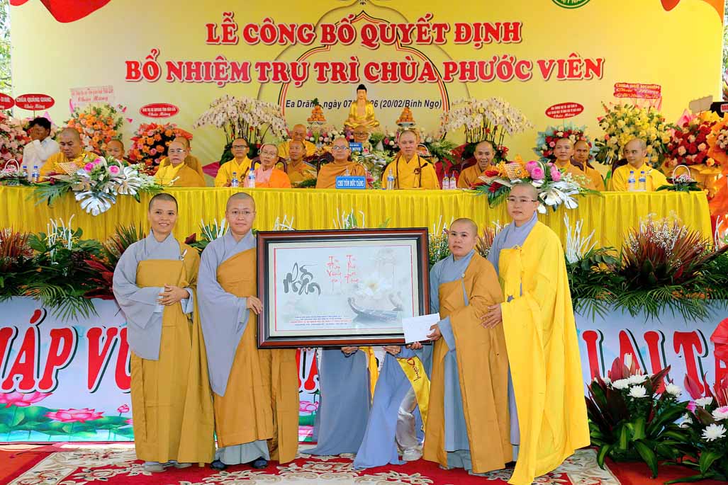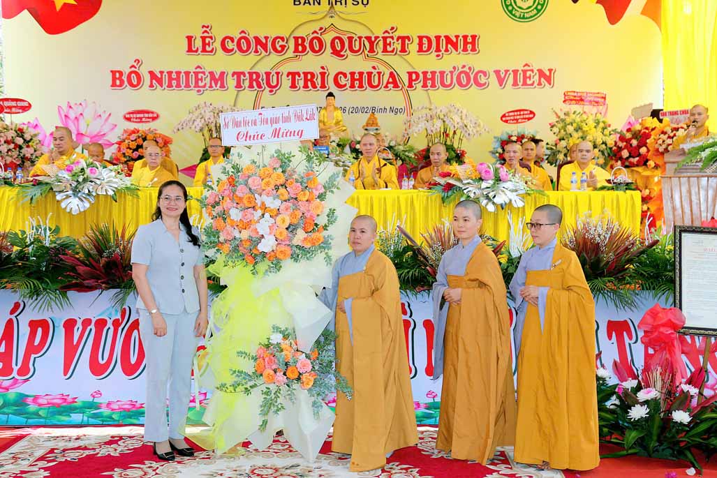 Sáng ngày 07/4/2026 (20 tháng 2 năm Bính Ngọ). Ban Trị sự GHPGVN tỉnh Đắk Lắk, đã long trọng tổ chức Lễ công bố và trao quyết định bổ nhiệm Sư cô Thích nữ Huệ Lạc – Trụ trì chùa Phước Viên (xã Ea Đrăng, tỉnh Đắk Lắk).