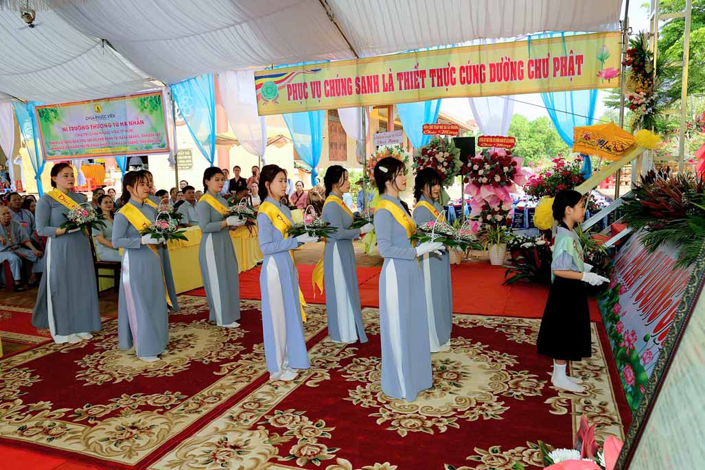 Một trong những khoảnh khắc xúc động tại buổi lễ, Ni trưởng Thích nữ Từ Thanh – Nguyên trụ trì chùa Phước Viên, bậc Y chỉ sư của tân trụ trì, chứng kiến người đệ tử của mình chính thức gánh vác trọng trách lớn lao. Ánh mắt của Ni trưởng hoan hỷ và niềm tự hào, khi sư cô tân trụ trì dâng lời phát nguyện. Đối với Ni trưởng, đây không chỉ là một buổi lễ hành chính giáo hội, mà là quả ngọt của bao năm tháng dày công giáo dưỡng, uốn nắn đệ tử từ những bước chân đầu tiên trên con đường giải thoát.