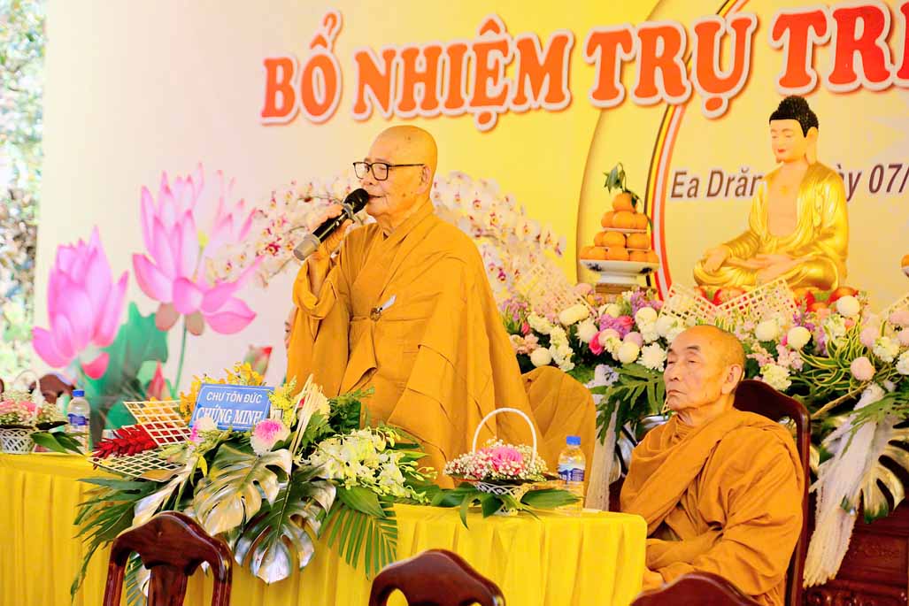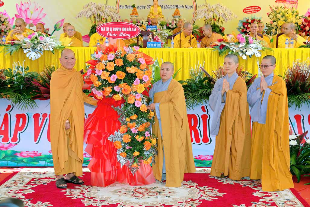 Buổi lễ cử hành dưới sự Chứng minh và tham dự của: HT. Thích Châu Quang – Ủy viên HĐTS, Chứng minh Ban Trị sự GHPGVN tỉnh Đắk Lắk, HT. Thích Giác Tiến – Ủy viên HĐTS, Chứng minh Ban Trị sự GHPGVN tỉnh Đắk Lắk, HT. Thích Giác Đạo – Ủy viên HĐTS, Phó Trưởng ban Thường trực Ban Nghi lễ Trung ương, Phó Trưởng BTS GHPGVN tỉnh Thừa Thiên Huế, TT. Thích Nguyên Minh – Ủy viên HĐTS, Trưởng BTS GHPGVN tỉnh Đắk Lắk, Thượng tọa Thích Giác Phổ – Phó Trưởng ban Thường trực BTS GHPGVN tỉnh Đắk Lắk, TT. Thích Chúc Phát – Phó Trưởng ban, Chánh Thư ký Ban Trị sự GHPGVN tỉnh Đắk Lắk, chư Tôn đức BTS GHPGVN tỉnh trụ trì các tự viện.