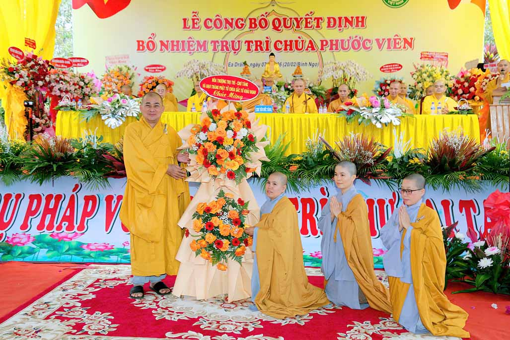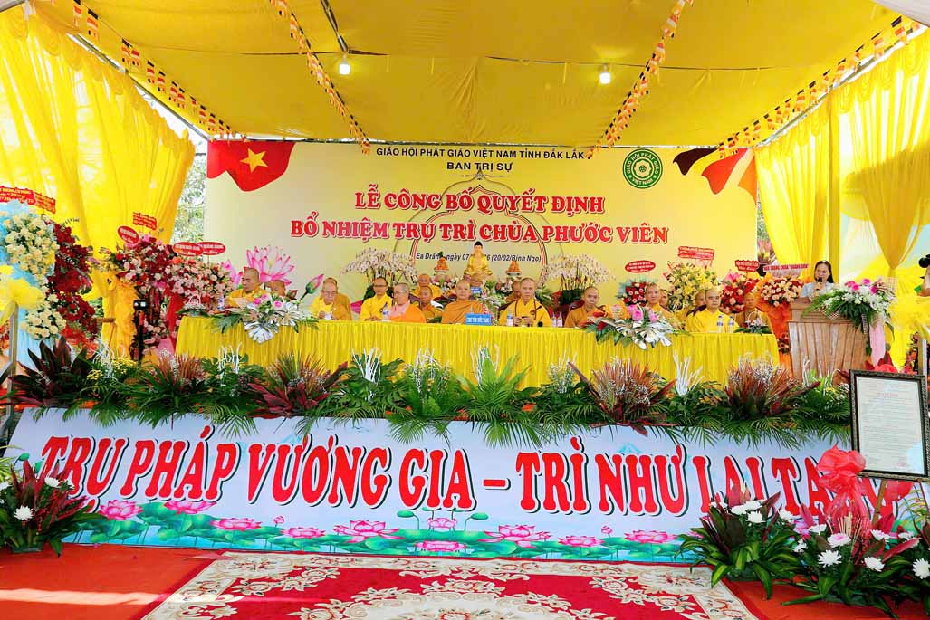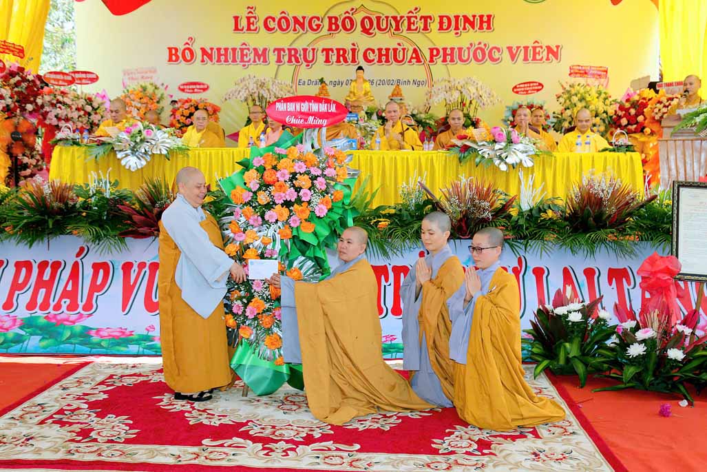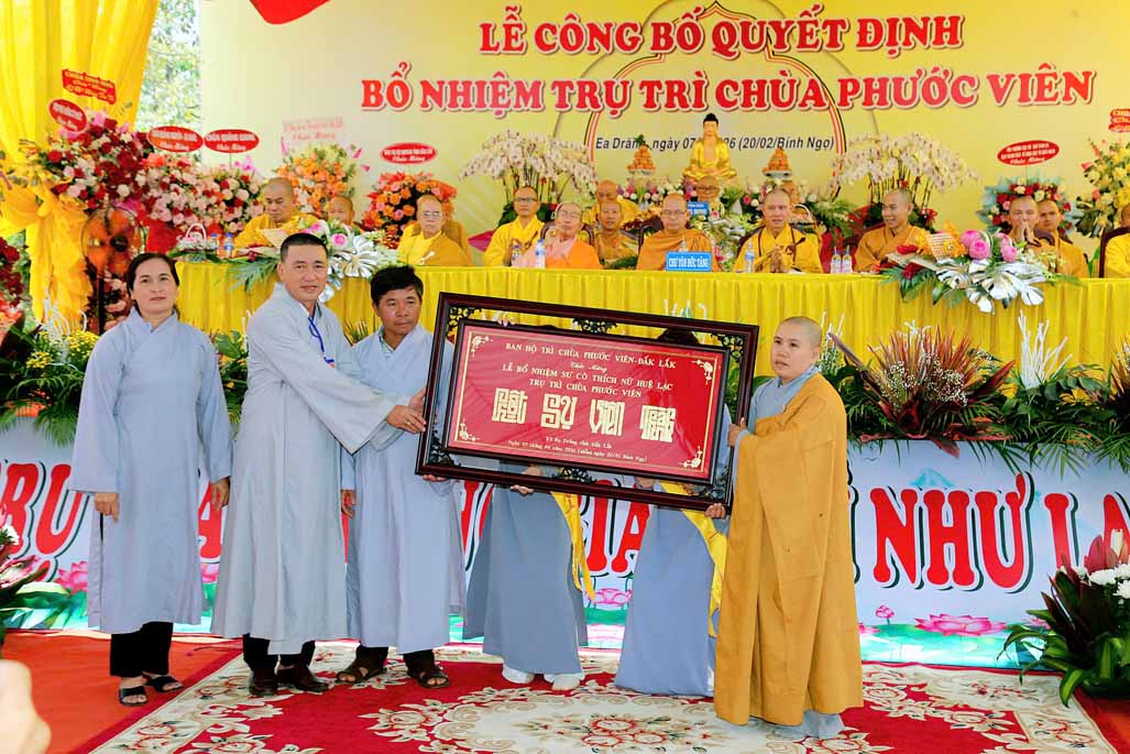 Tại buổi lễ, Đại đức Thích Chúc Phát đại diện Ban Thư ký BTS GHPGVN tỉnh Đắk Lắk, đã công bố quyết định của BTS, bổ nhiệm Sư cô Thích nữ Huệ Lạc, chính thức giữ chức vụ trụ trì chùa Phước Viên. Theo quyết định, Sư cô Thích nữ Huệ Lạc cùng Ban Hộ trì Tam bảo có trách nhiệm quản lý, điều hành mọi hoạt động Phật sự tại chùa Phước Viên, thực hiện đúng Hiến chương GHPGVN và pháp luật nhà nước.