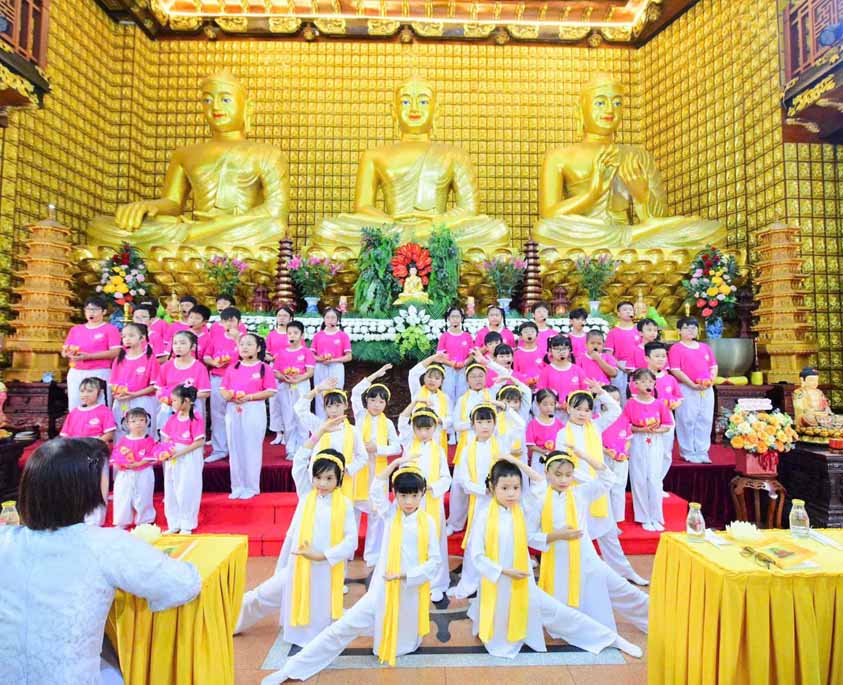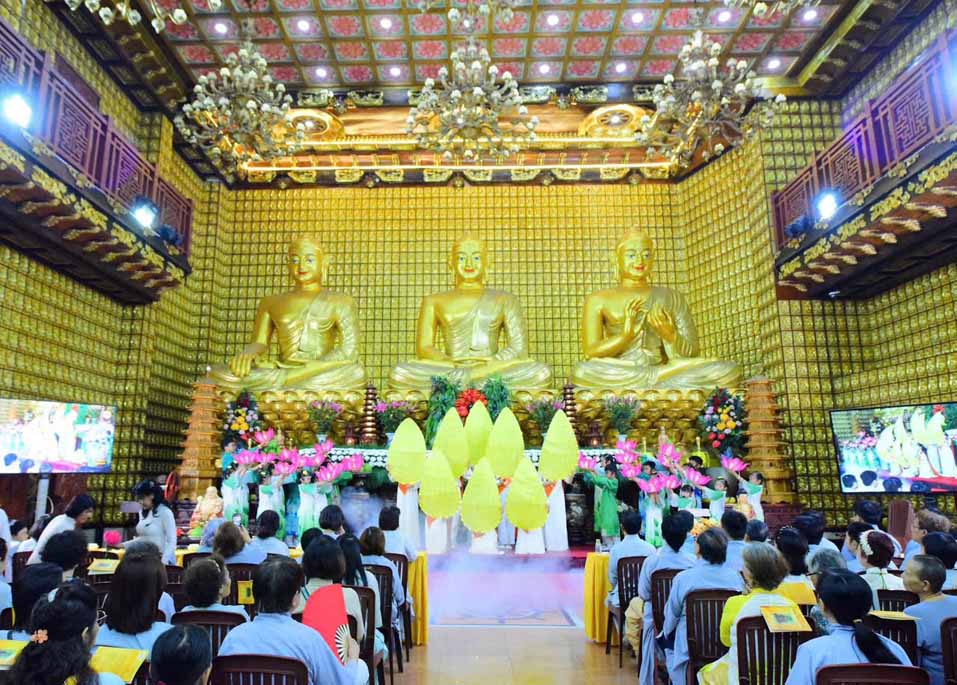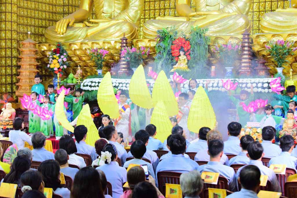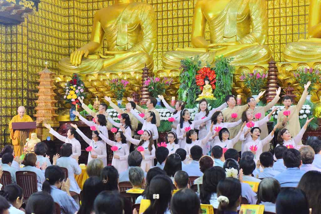 Mở đầu buổi lễ là các tiết mục đạo ca do Ban Đạo ca chùa Giác Ngộ trình bày.