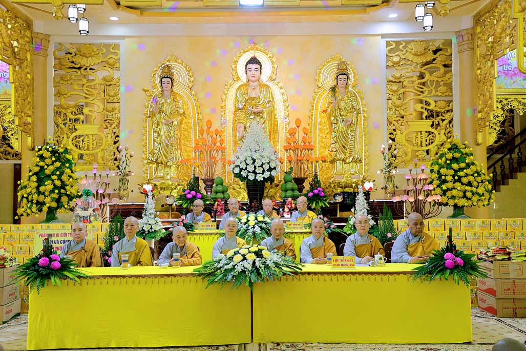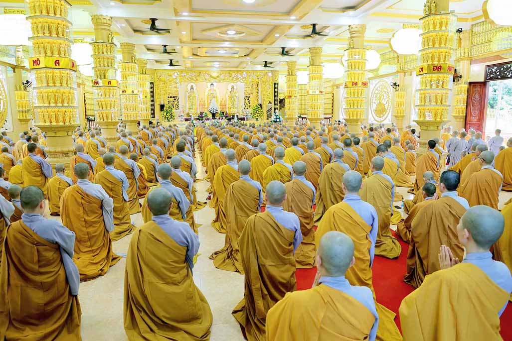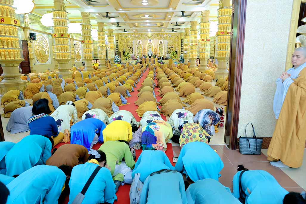Toàn thể Hội chúng niêm hương đảnh lễ Tam bảo, tại Chánh điện A Mi chùa Long Vân.