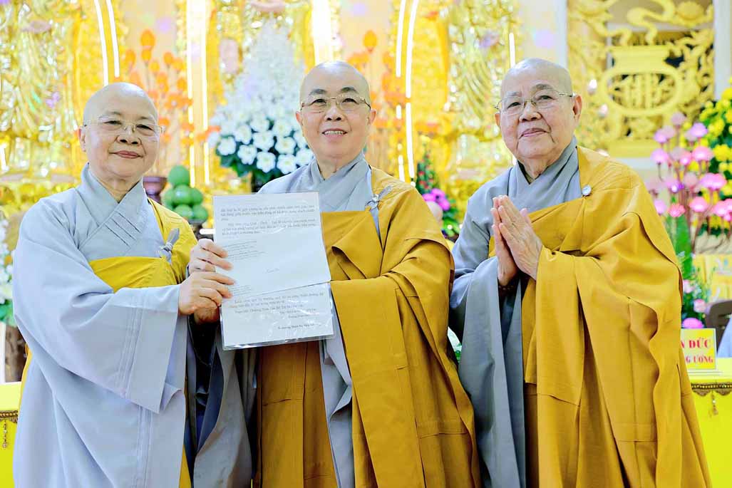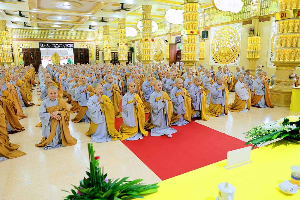 Cung đối trước chư Tôn đức Ni PBNG Trung ương, NS. Thích Quảng Tiên – Đại diện Trường hạ Ni chùa Long Vân đã báo tình hình sinh hoạt, tu học và số lượng hành giả An cư kiết hạ.
