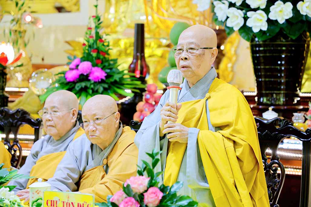 Tiếp đến, NT. Thích Như Thảo đại diện phái đoàn tuyên đọc bức tâm thư của Ni trưởng trưởng PBNG Trung ương gửi đến chư Hành giả an cư cả nước nói chung và hành giả an cư tại đạo tràng chùa Long Vân tỉnh Đồng Nai nói riêng. Trong tâm thư có đoạn: “ Hãy thắp sáng Giới – Định – Tuệ để chuyển hóa chính mình và lan tỏa năng lượng an lành đến mọi miền đất nước, như trong kinh Pháp Cú thường dạy: