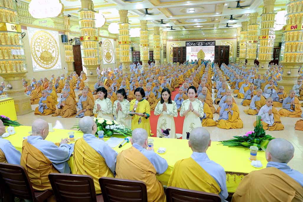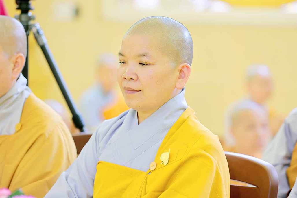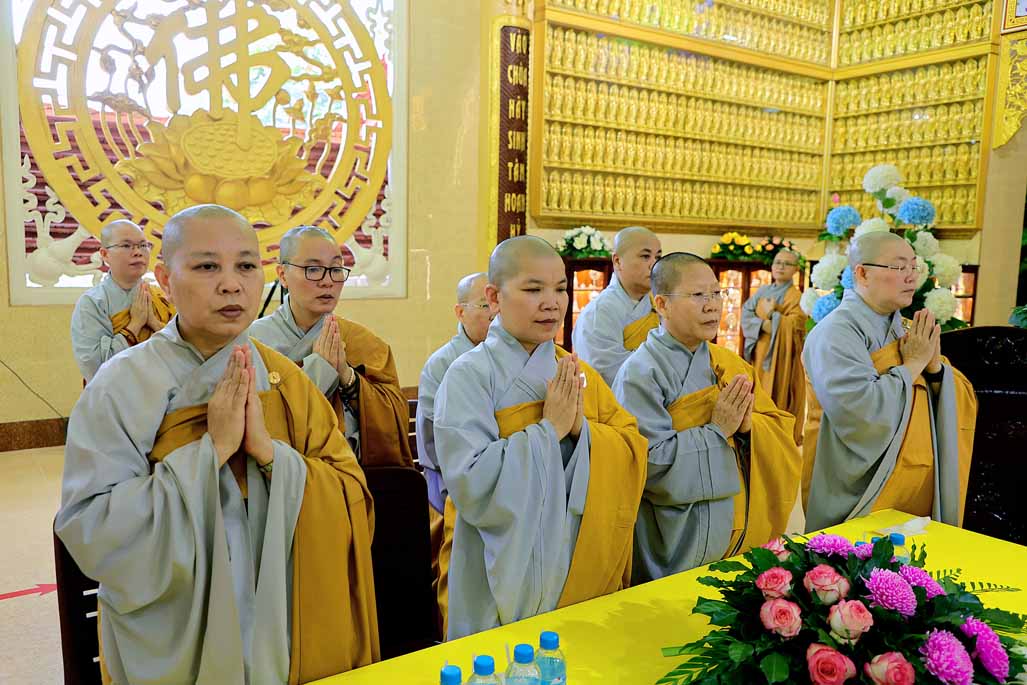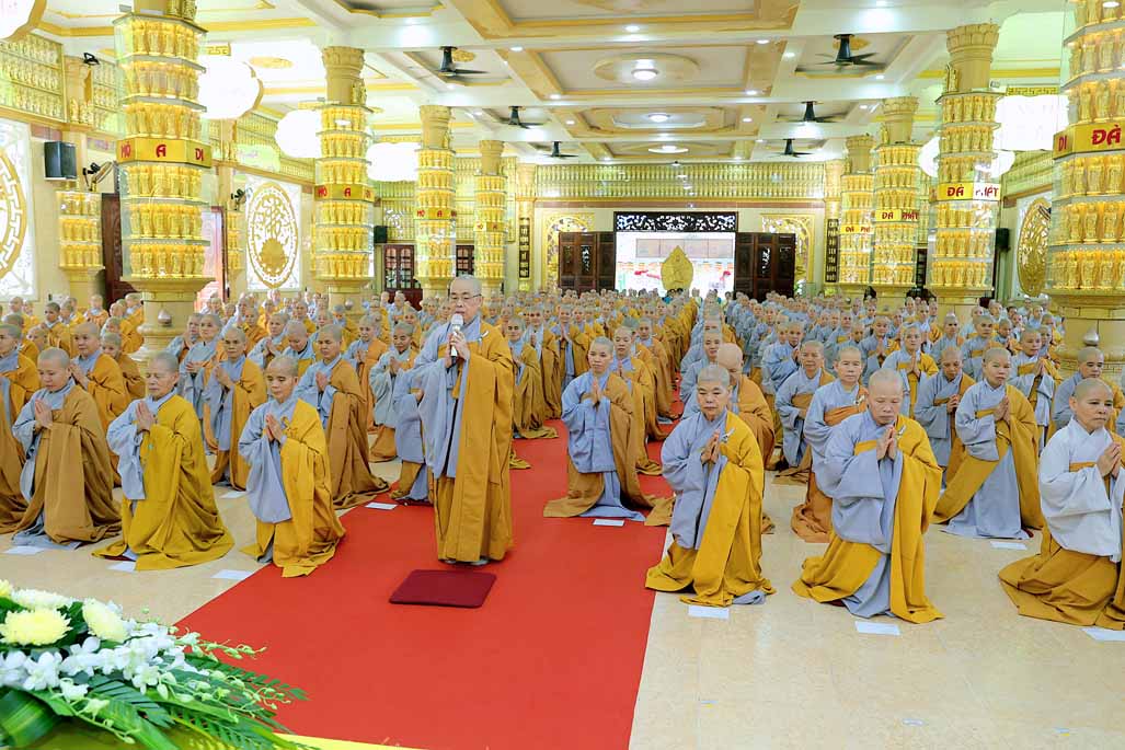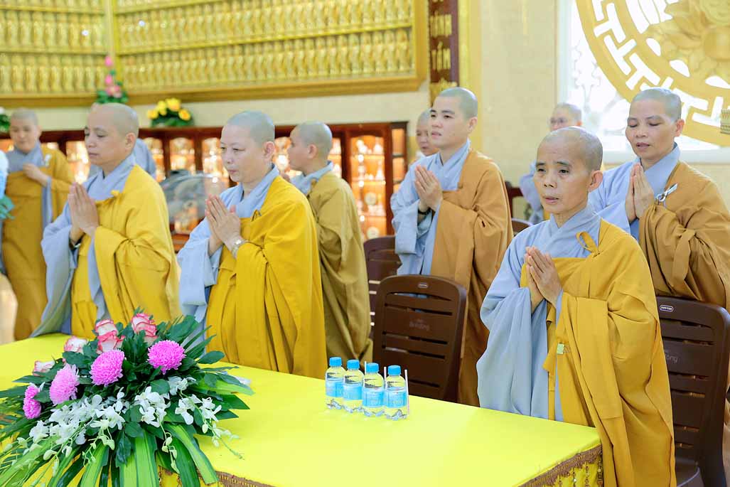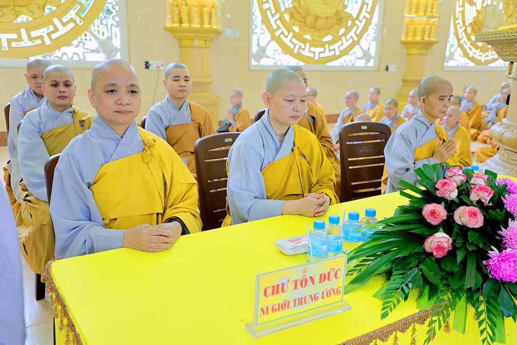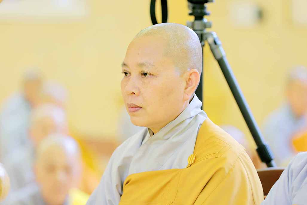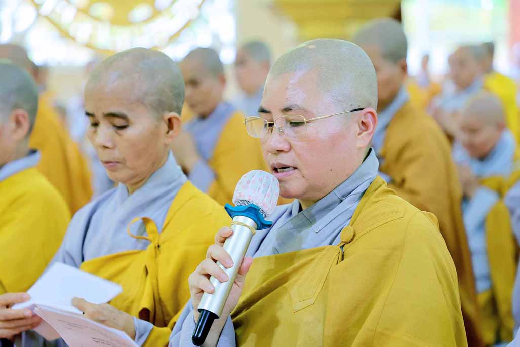 Cung đối trước chư Tôn đức Ni PBNG Trung ương, NS. Thích Quảng Tiên – Đại diện Trường hạ Ni chùa Long Vân đã báo tình hình sinh hoạt, tu học và số lượng hành giả An cư kiết hạ.
