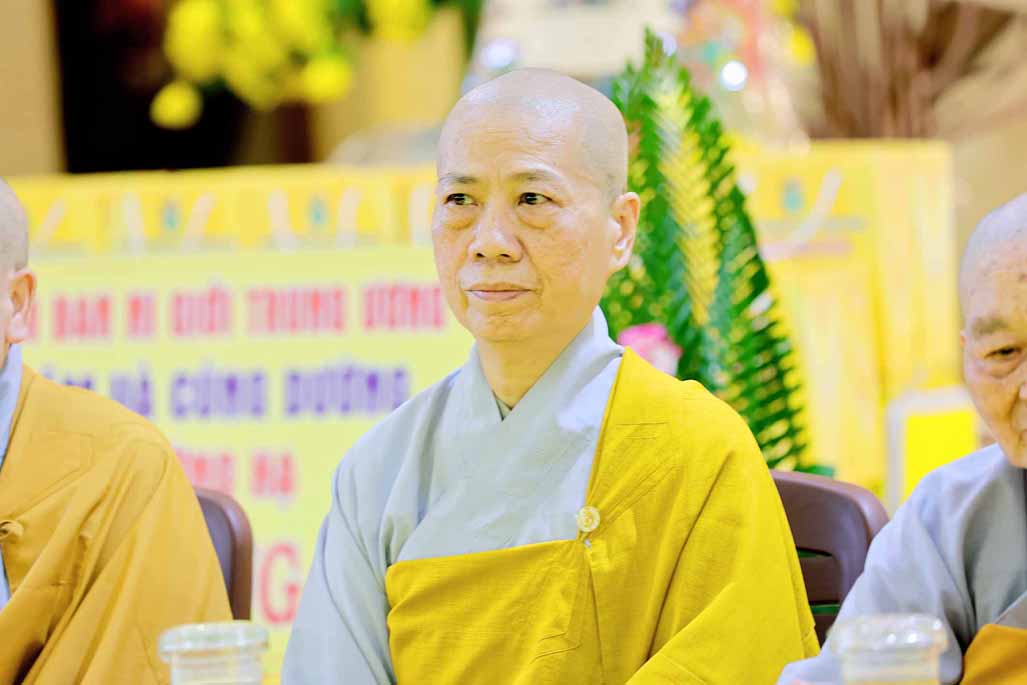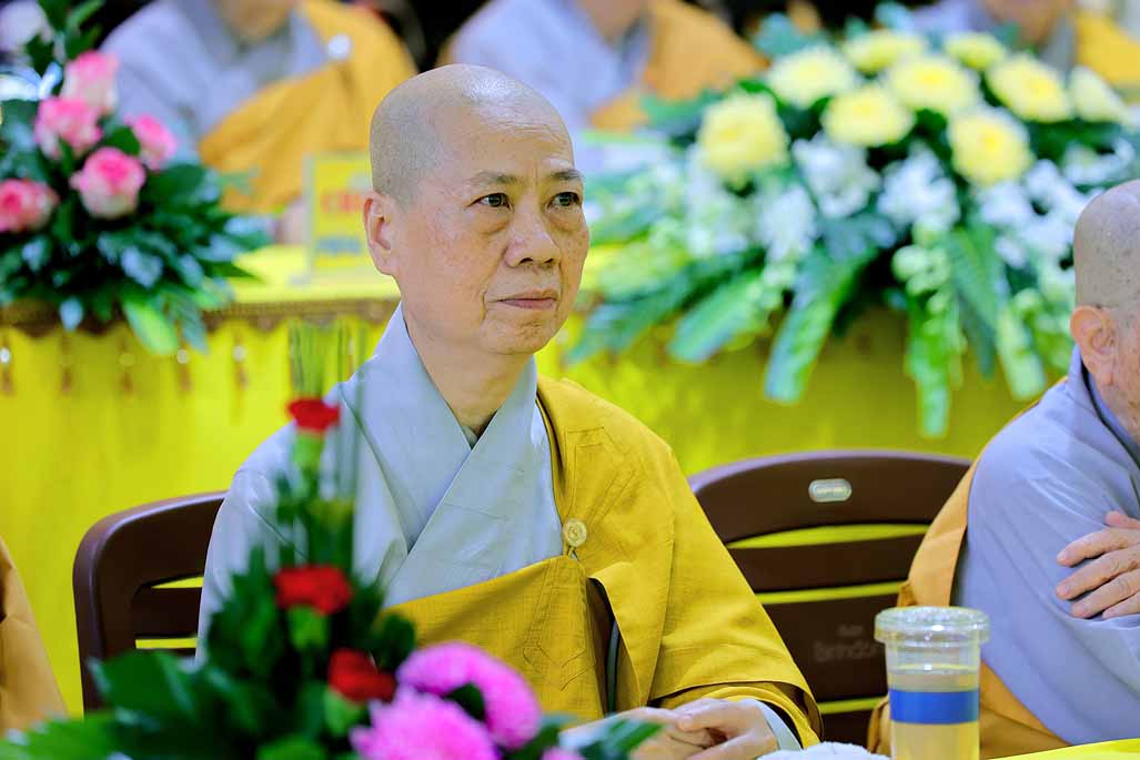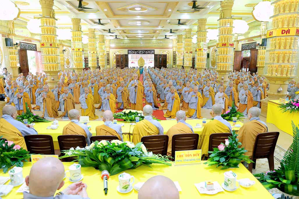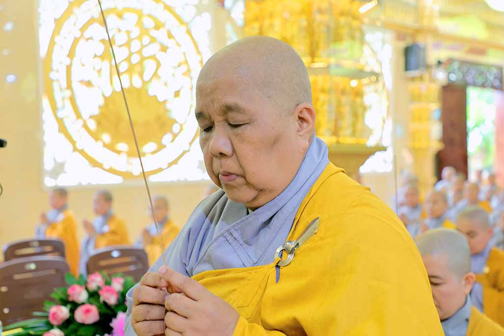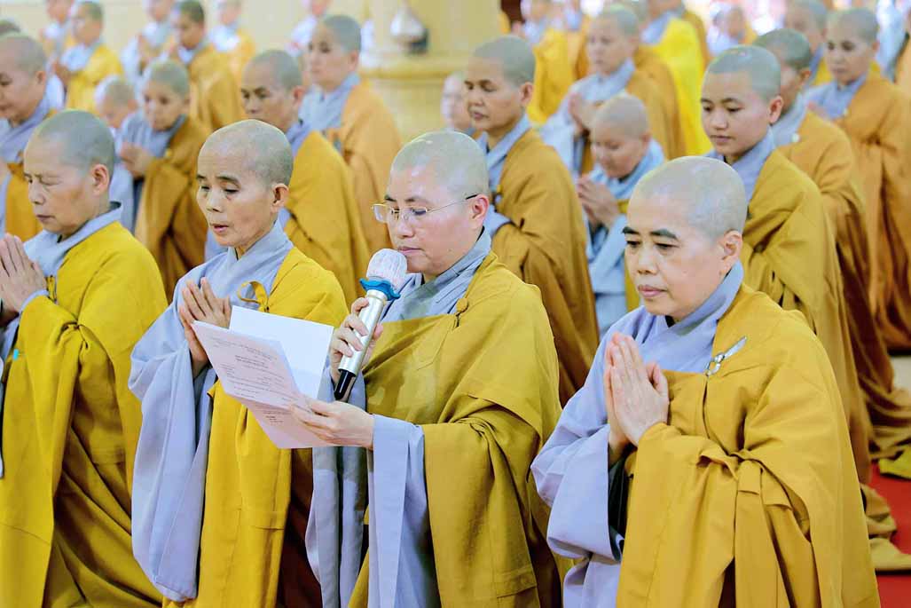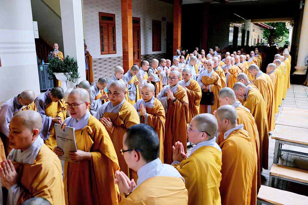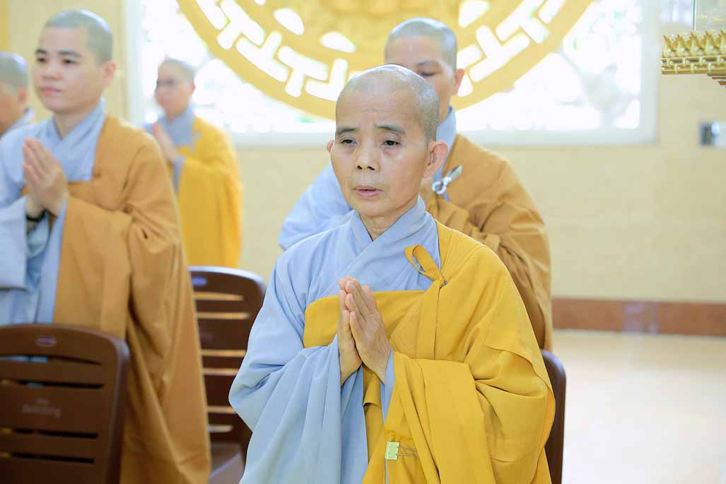 Cung đối trước chư Tôn đức Ni PBNG Trung ương, NS. Thích Quảng Tiên – Đại diện Trường hạ Ni chùa Long Vân đã báo tình hình sinh hoạt, tu học và số lượng hành giả An cư kiết hạ.