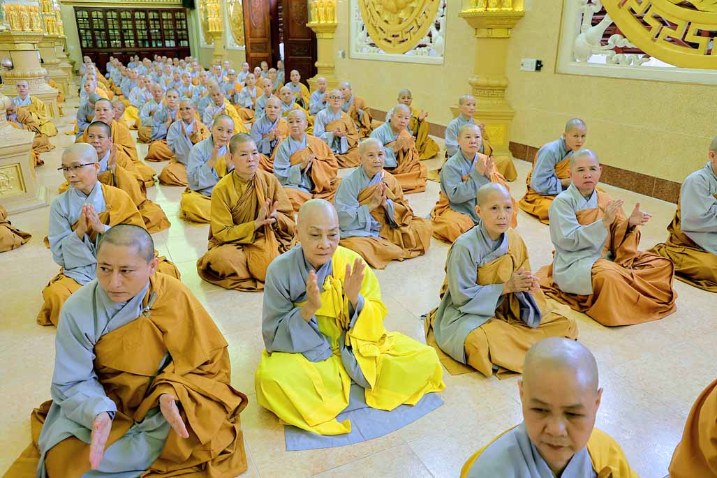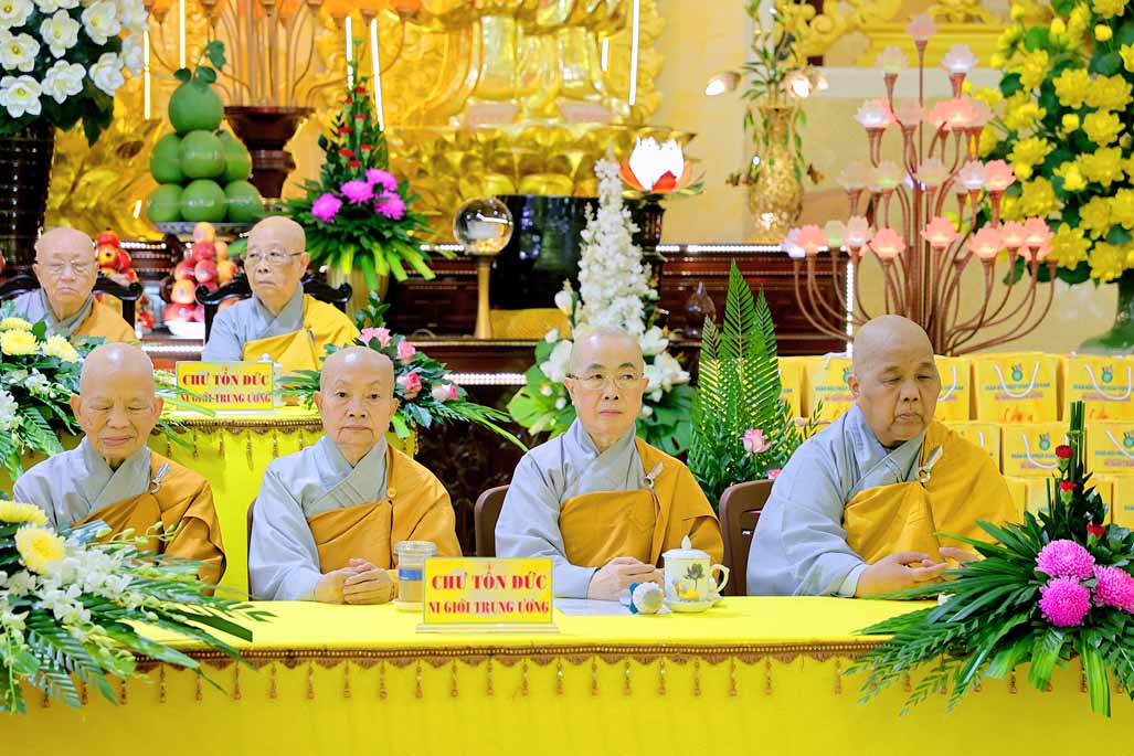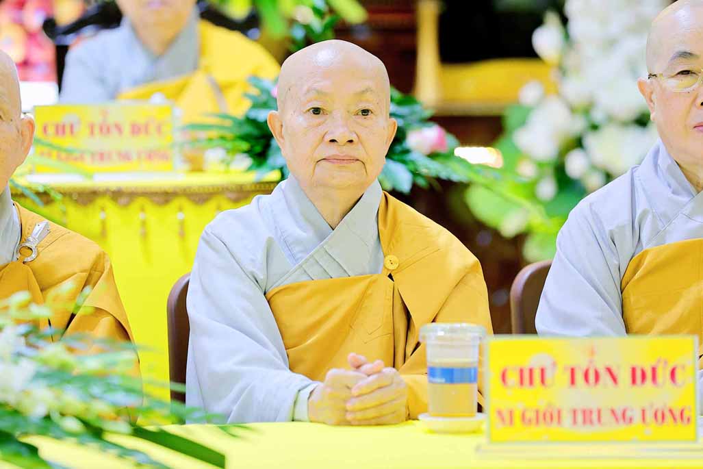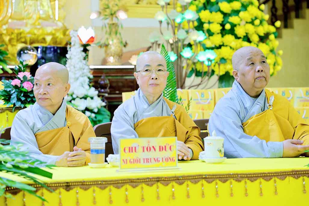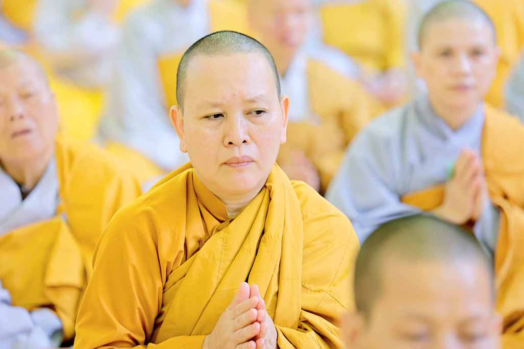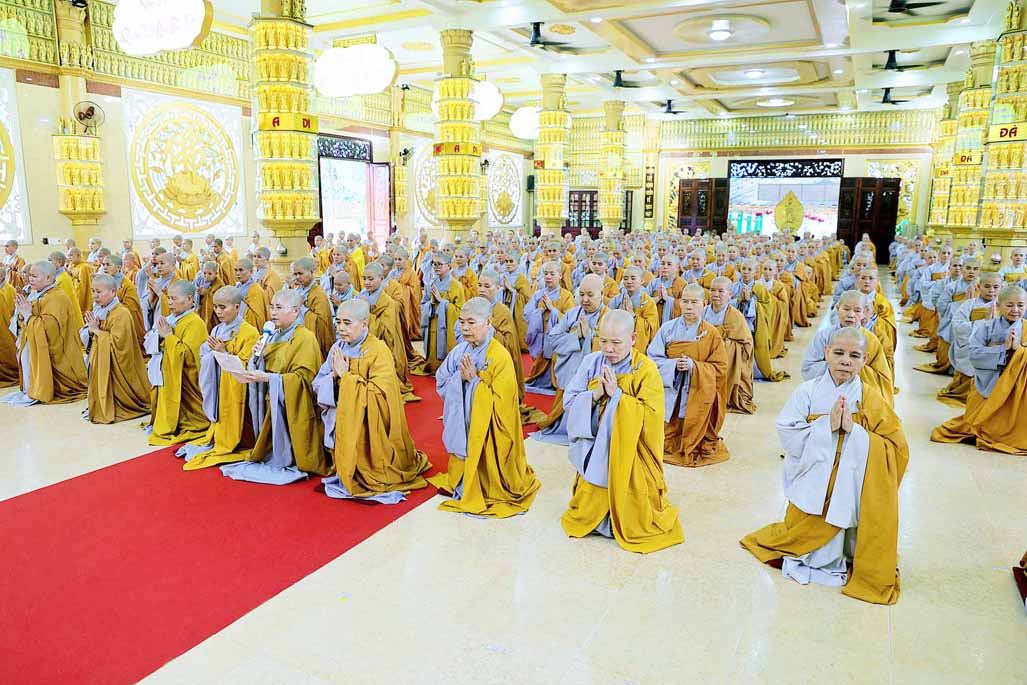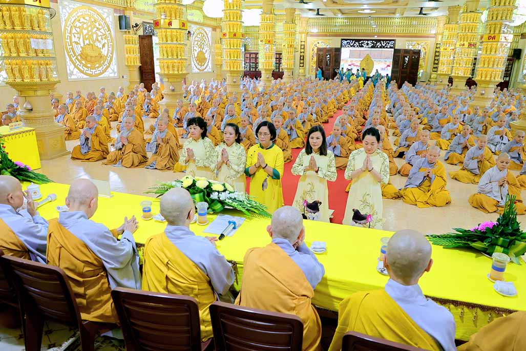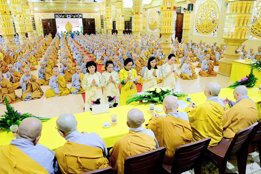 Cung đối trước chư Tôn đức Ni PBNG Trung ương, NS. Thích Quảng Tiên – Đại diện Trường hạ Ni chùa Long Vân đã báo tình hình sinh hoạt, tu học và số lượng hành giả An cư kiết hạ.