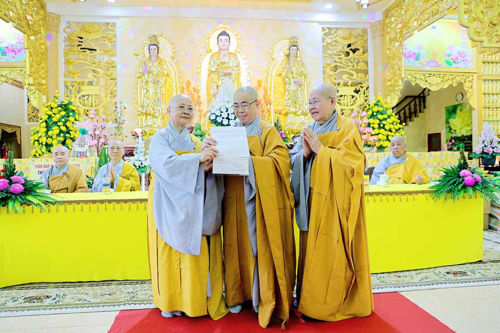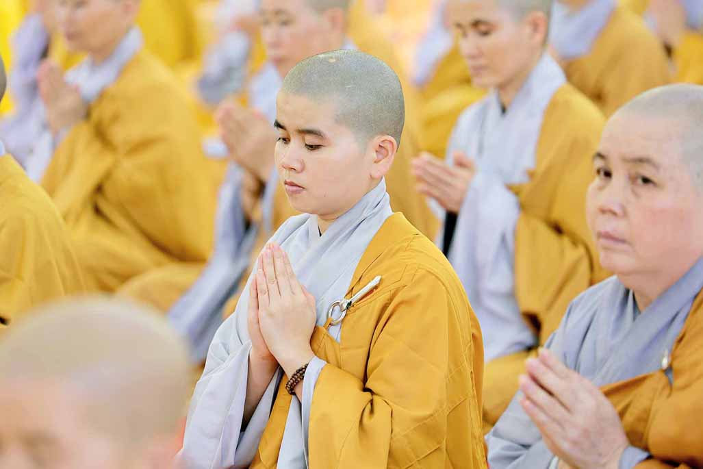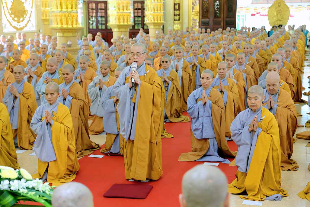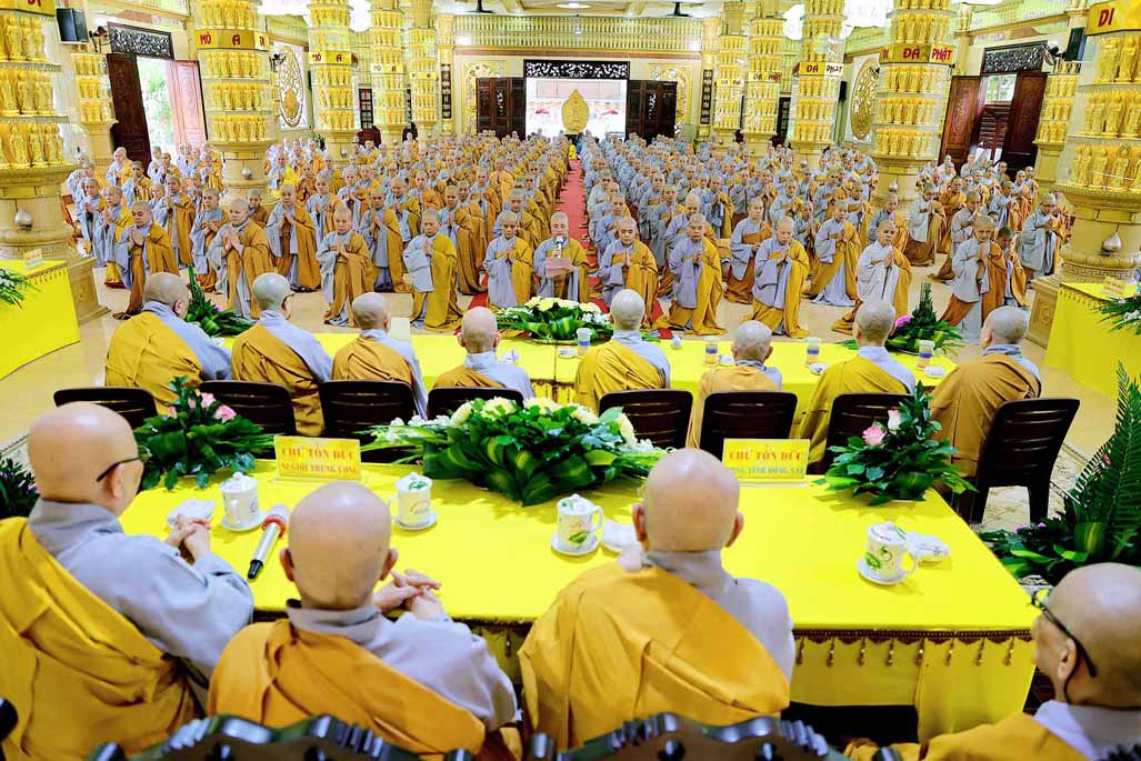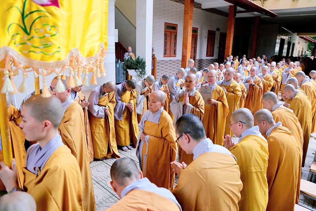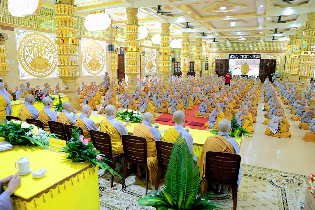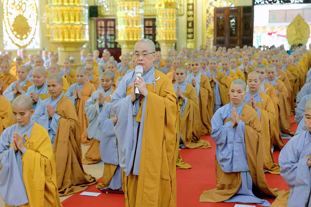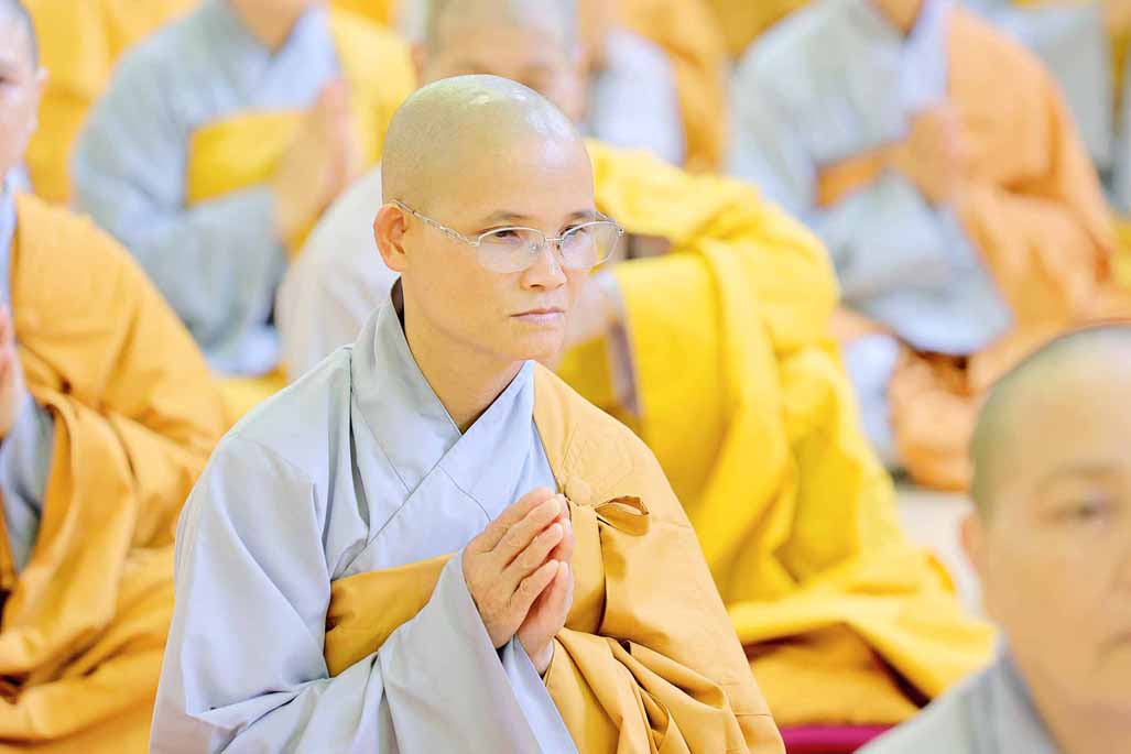 Cung đối trước chư Tôn đức Ni PBNG Trung ương, NS. Thích Quảng Tiên – Đại diện Trường hạ Ni chùa Long Vân đã báo tình hình sinh hoạt, tu học và số lượng hành giả An cư kiết hạ.