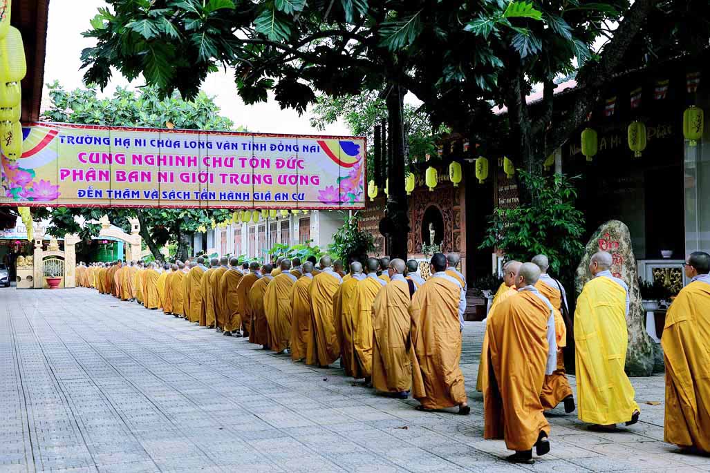 Sáng ngày ngày 08/06 nhuần/ Ất Tỵ (01/08/2025), ban Chức sự và chư hành giả tại hạ trường chùa Long Vân (số 109, tổ 9, P. Tam Phước, T. Đồng Nai) đã hân hoan, cung đón phái đoàn Phân ban Ni giới Trung ương thăm và cúng dường, đoàn do Ni trưởng Thích Từ Nhẫn – Phó trưởng PBNG Trung ương, Phó BTS, Trưởng PBNG TP. HCM làm Trưởng đoàn. Đoàn còn có NT. Thích Như Như – Phó trưởng PBNG Trung ương, NT. Thích Như Huệ – Phó trưởng PBNG Trung ương, NT. Thích Như Thảo – Ủy viên ban Thường trực HĐTS, Phó trưởng PBNG Trung ương, Ủy viên ban Thường trực BTS, Phó Thường trực PBNG TP. HCM, NT. Thích Như Dung – Phó trưởng Phân ban Ni giới Trung Ương, Phó Ban trị sự kiêm Trưởng Phân ban Ni giới tỉnh Đồng Nai, NT. Thích Viên Giác – Cố vấn PBNG TP. HCM, NT. Thích Như Hiền – Ủy viên Thường trực PBNG Trung ương, Phó trưởng PBNG TP. HCM, NS. Thích Như Nguyệt – Ủy viên HĐTS, Phó trưởng PBNG Trung ương, ủy viên ban Thường trực BTS, Phó trưởng PBNG TP. HCM, NS. Thích Lệ Thuận – Phó PBNG Trung ương, Phó trưởng PBNG TP. HCM, NS. Thích Huệ Hiếu – Ủy viên Thường trực PBNG Trung ương, NS. Thích Thuần Chơn – Ủy viên Thường trực PBNG Trung ương, ủy viên Thường trực PBNG TP.HCM, NS. Thích Huệ Khánh – Ủy viên Thường trực PBNG TP. HCM, Ni sư Thích Huệ Liên – Phó Thư ký, phó Văn phòng PBNG TP. HCM, cùng chư Tôn đức Ni ủy viên PBNG Trung ương và nam nữ Phật tử đi cùng đoàn.