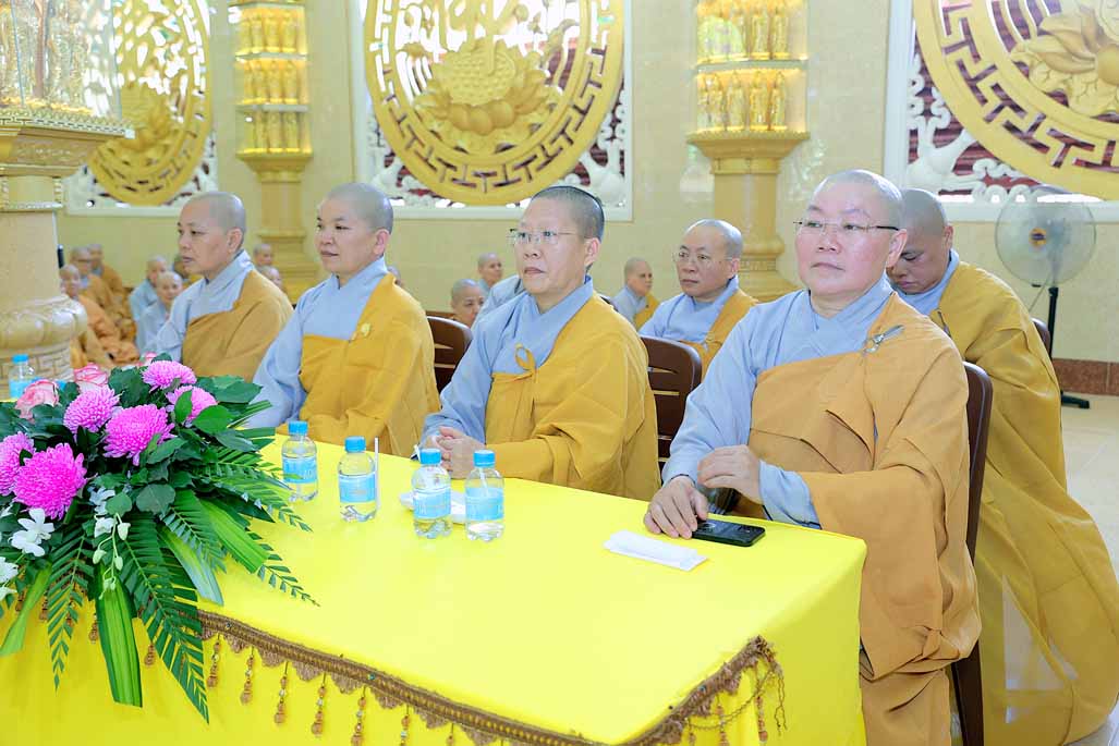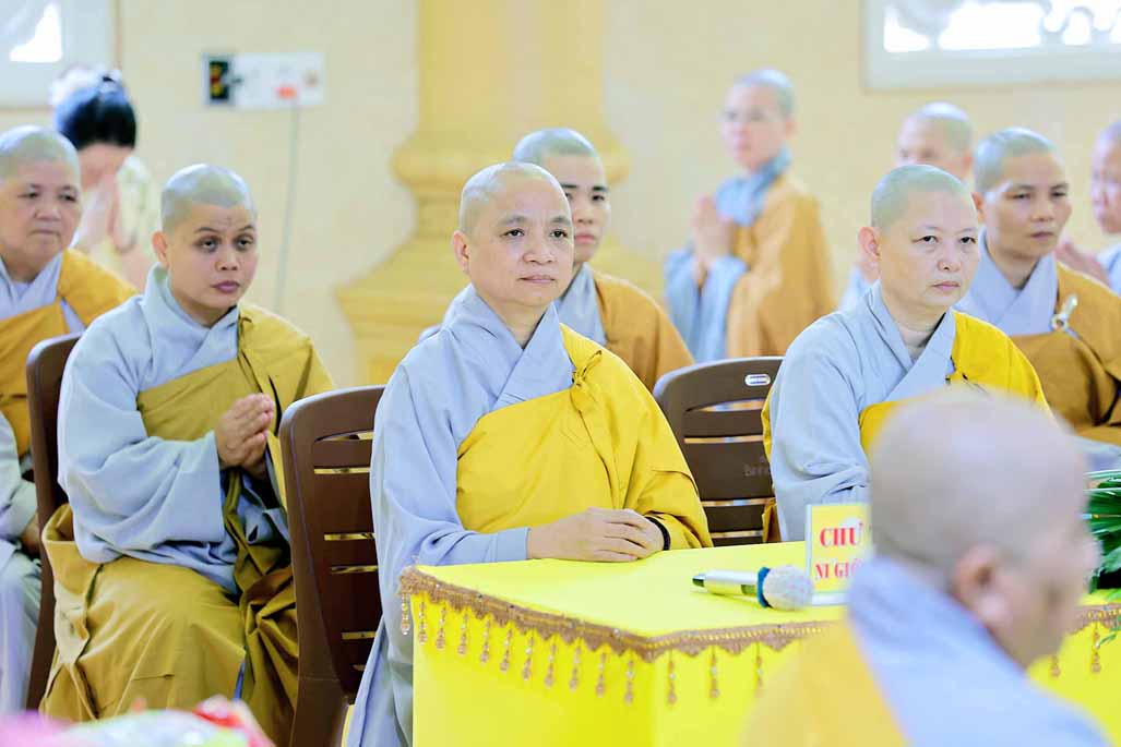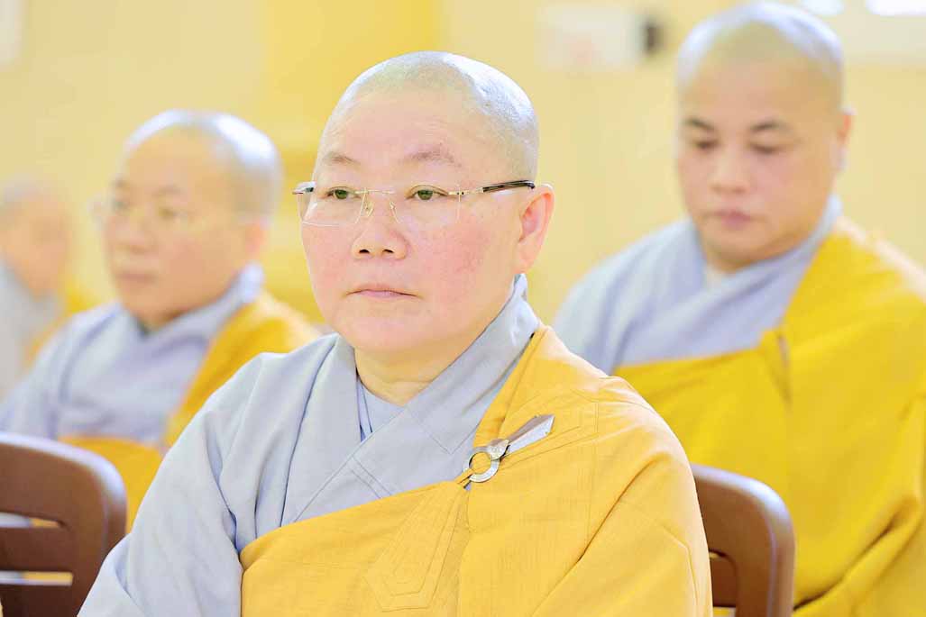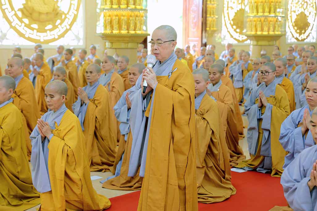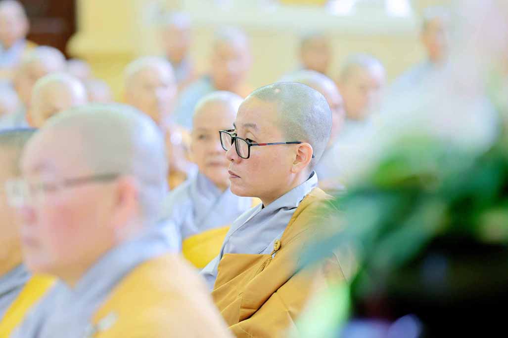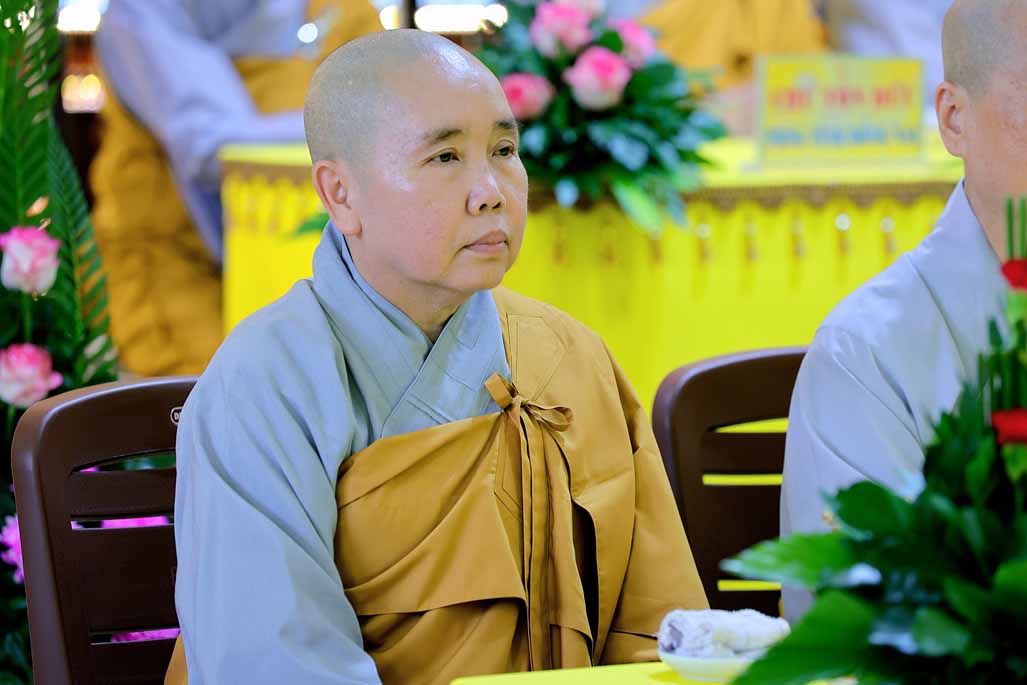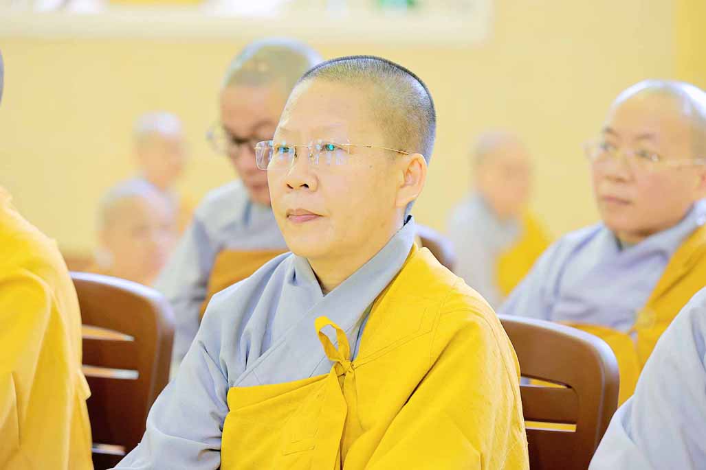 Thay mặt phái đoàn, NT. Thích Như Huệ có lời khuyến tấn đến chư hành giả. Ni Trưởng bày tỏ hân hoan và vô cùng xúc động trước sự đón tiếp thành tâm của chư hành giả Ni của hạ trường, nhất là tinh thần tu học với nhiều chương trình phong phú, cũng như tình hình sinh hoạt nội thiền luôn được đảm bảo sức khỏe cho chư hành giả Ni. Ni Trưởng khuyến tấn chư hành giả Ni phải luôn ghi nhớ những điều “Huấn thị truyền thống An cư kiết Hạ” từ ngàn xưa đến ngày sau vẫn mãi lưu truyền và phải luôn y giáo phụng hành. Điều đó vẫn mãi có giá trị tuyệt đối hậu thế, dù trong thời gian, không gian nào, tiêu chí An cư “Thúc liễm thân tâm, trau dồi Tam vô lậu học” hành giả vẫn phải luôn tinh tấn trau dồi không thay đổi.