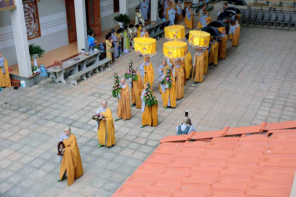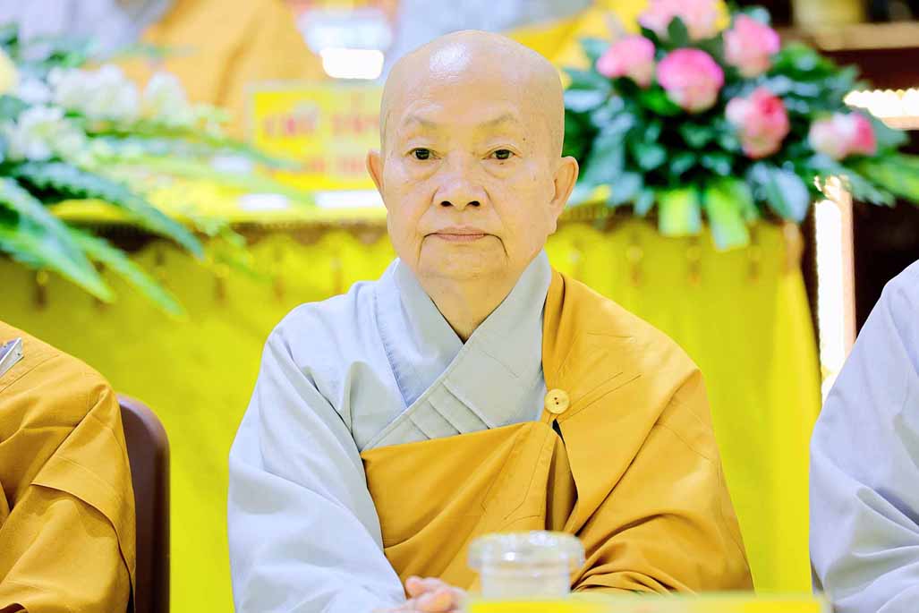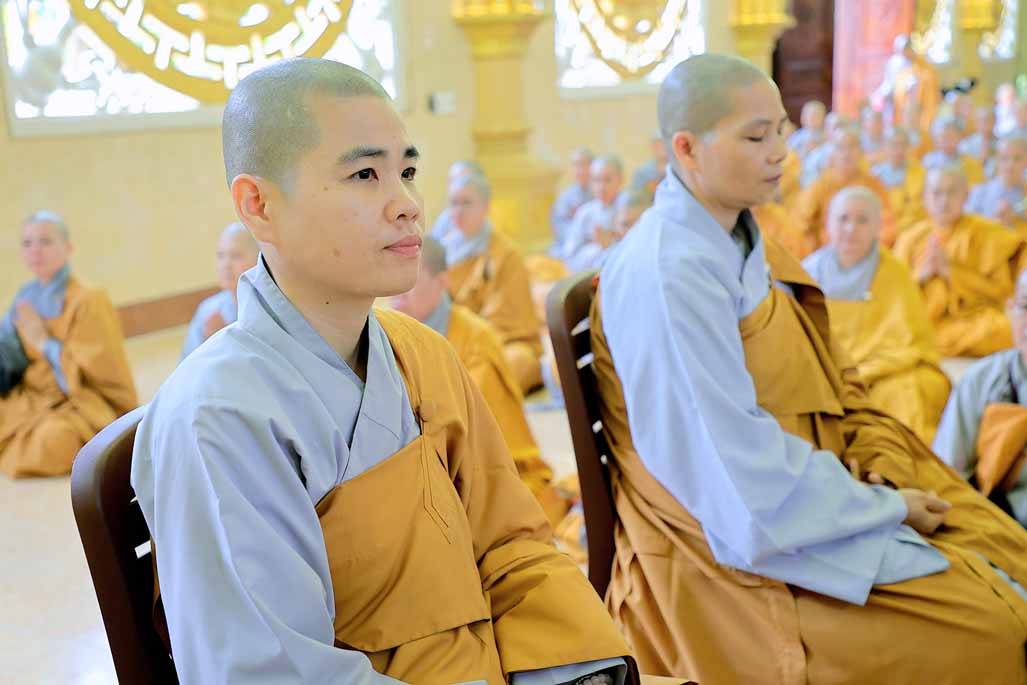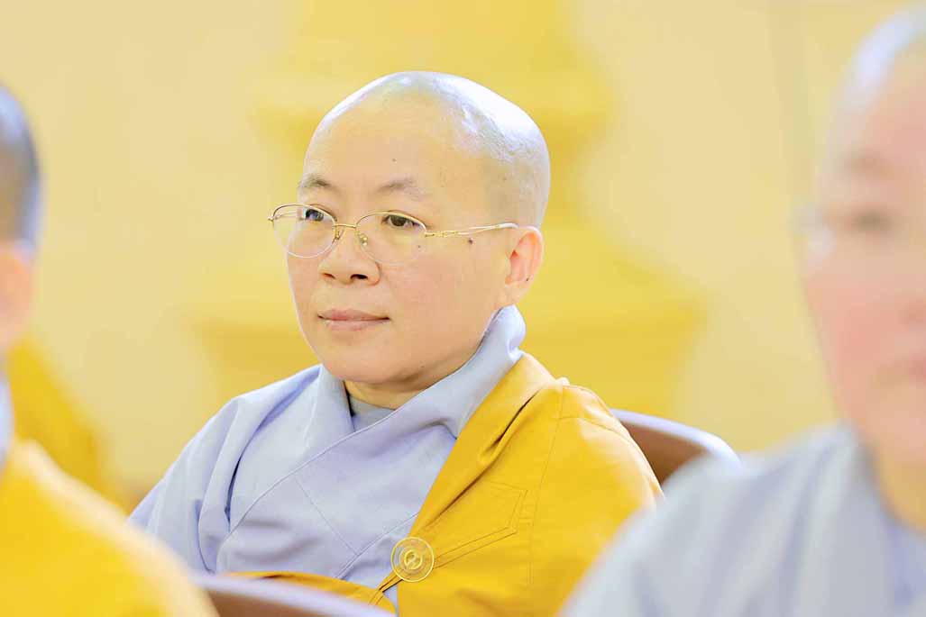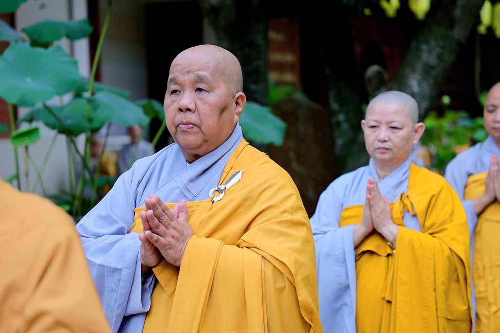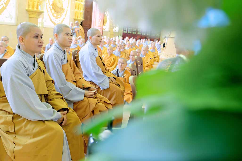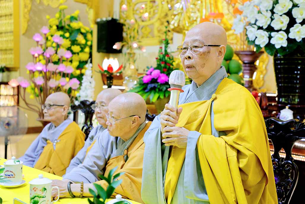 Thay mặt phái đoàn, NT. Thích Như Huệ có lời khuyến tấn đến chư hành giả. Ni Trưởng bày tỏ hân hoan và vô cùng xúc động trước sự đón tiếp thành tâm của chư hành giả Ni của hạ trường, nhất là tinh thần tu học với nhiều chương trình phong phú, cũng như tình hình sinh hoạt nội thiền luôn được đảm bảo sức khỏe cho chư hành giả Ni. Ni Trưởng khuyến tấn chư hành giả Ni phải luôn ghi nhớ những điều “Huấn thị truyền thống An cư kiết Hạ” từ ngàn xưa đến ngày sau vẫn mãi lưu truyền và phải luôn y giáo phụng hành. Điều đó vẫn mãi có giá trị tuyệt đối hậu thế, dù trong thời gian, không gian nào, tiêu chí An cư “Thúc liễm thân tâm, trau dồi Tam vô lậu học” hành giả vẫn phải luôn tinh tấn trau dồi không thay đổi.