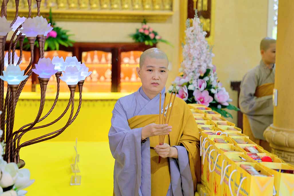 Đối trước Tam bảo, NT. Thích Như Dung bày tỏ niềm tôn kính và cảm động trước tấm chân tình mà quý Ngài đã quang lâm.