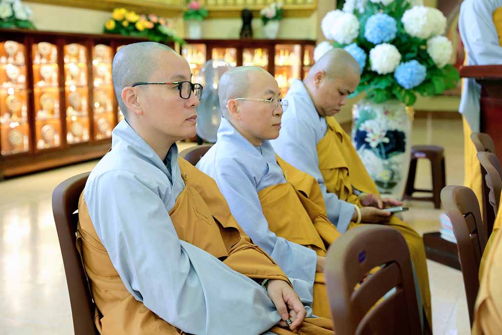 Đón tiếp phái đoàn có NT. Thích Như Thuận – Chứng minh PBNG tỉnh Đồng Nai, NT.Thích Như Đức, NT. Thích Hạnh Huệ – Đồng cố vấn PBNG tỉnh Đồng Nai, phó thiền chủ hạ trường, NT.Thích Như Dung – Phó trưởng PBNG Trung ương , Phó BTS kiêm trưởng PBNG tỉnh Đồng Nai, phó thiền chủ kiêm Hóa chủ hạ trường cùng chư hành giả An cư cung kính nghinh đón phái đoàn.