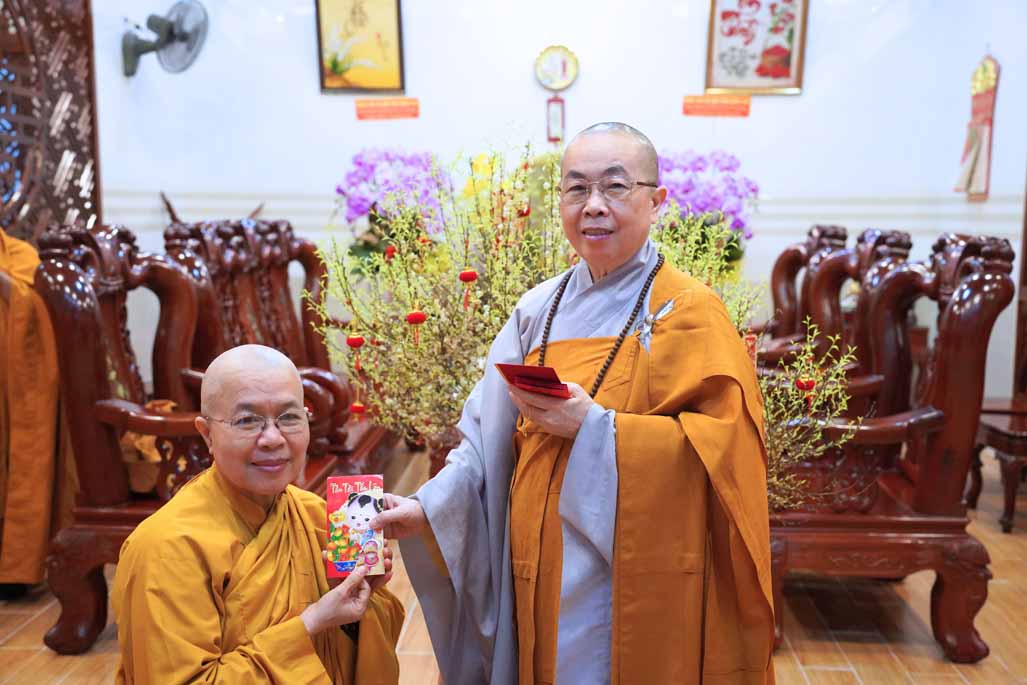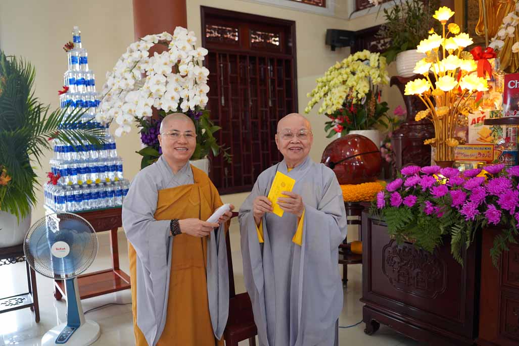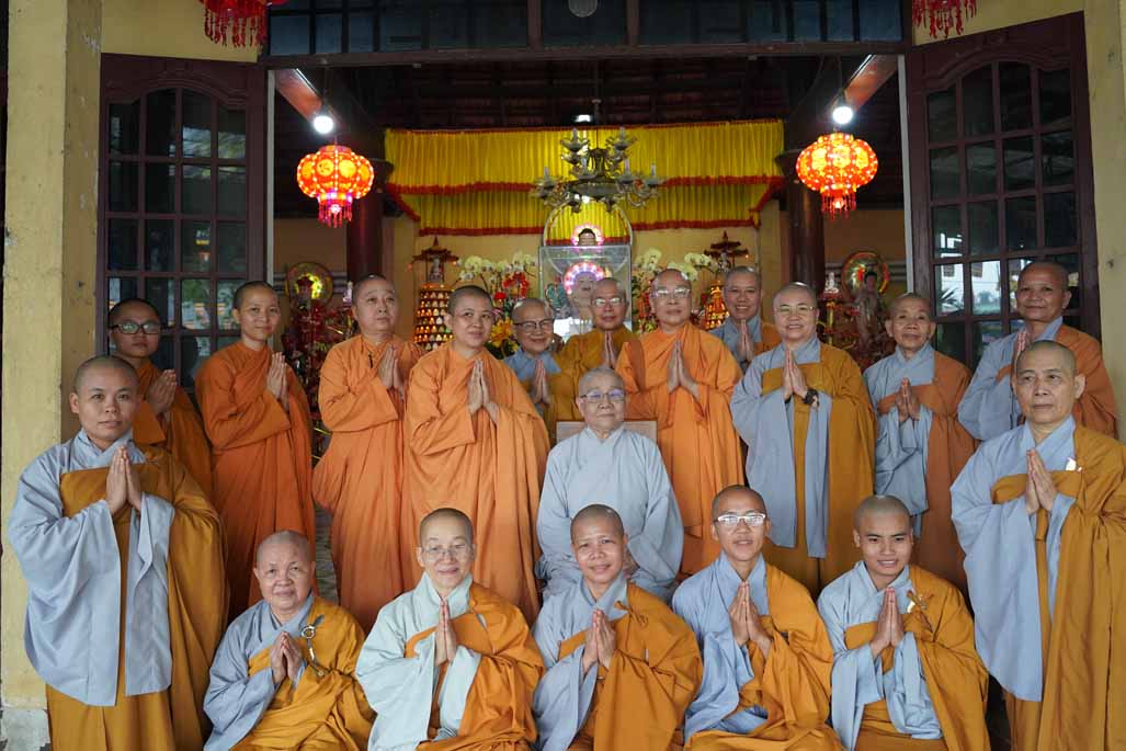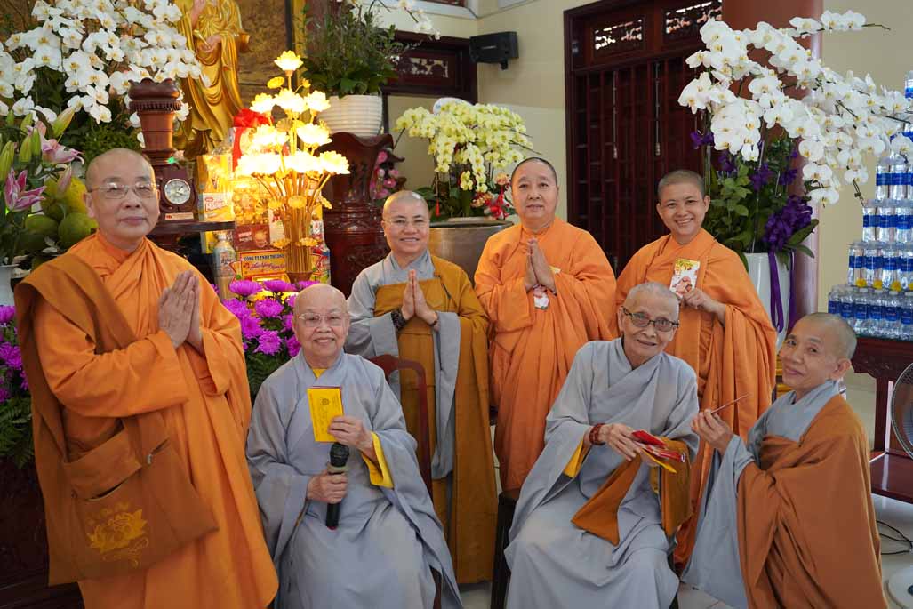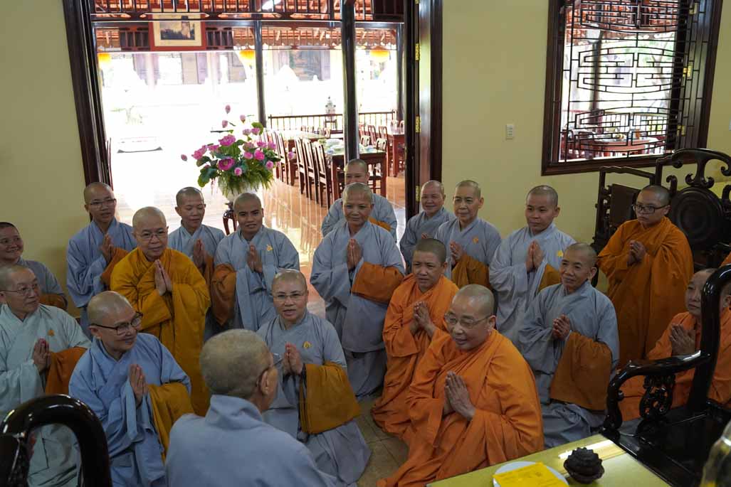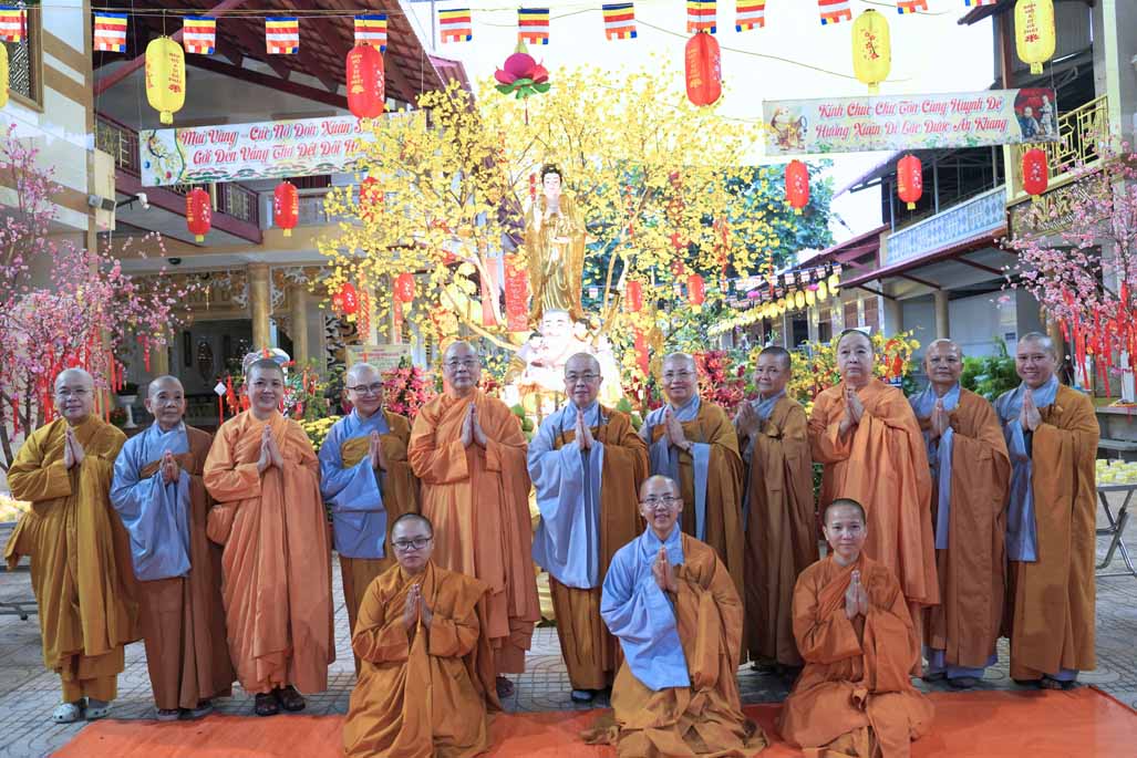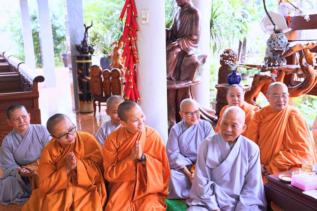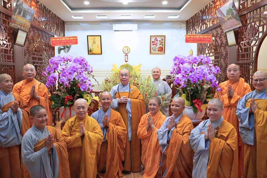 Đoàn do Ni sư Thích nữ Tuệ Liên – Ủy viên HĐTS, ủy viên PBNG TW, Phó PBNG tỉnh, trụ trì Tịnh xá Ngọc Long làm trưởng đoàn cùng chư Tôn đức Ni trong PBNG tỉnh, đã đến đảnh lễ quí Ni trưởng: Ni trưởng Thích nữ Như Tịnh (trụ trì TV. Linh Chiếu); Ni trưởng Thích nữ Như Thuận (viện chủ chùa Quang Mỹ); Ni trưởng Thích nữ Như Đức (trụ trì TV. Viên Chiếu), Ni trưởng Thích nữ Hạnh Huệ (phó trụ trì TV Viên Chiếu); NT. Thích nữ Kim Sơn (phó ban Quản trị Quan Âm Tu Viện); Ni trưởng Thích nữ Như Hạnh (trụ trì chùa Long Hoa); Ni trưởng Thích nữ Như Nhàn (trụ trì chùa Giác Minh), Ni trưởng Thích nữ Huệ Tâm (trụ trì Hoàng Ân Cổ Tự); Ni trưởng Thích nữ Như Dung – Trưởng Phân ban Ni giới tỉnh Đồng Nai (trụ trì chùa Long Vân).