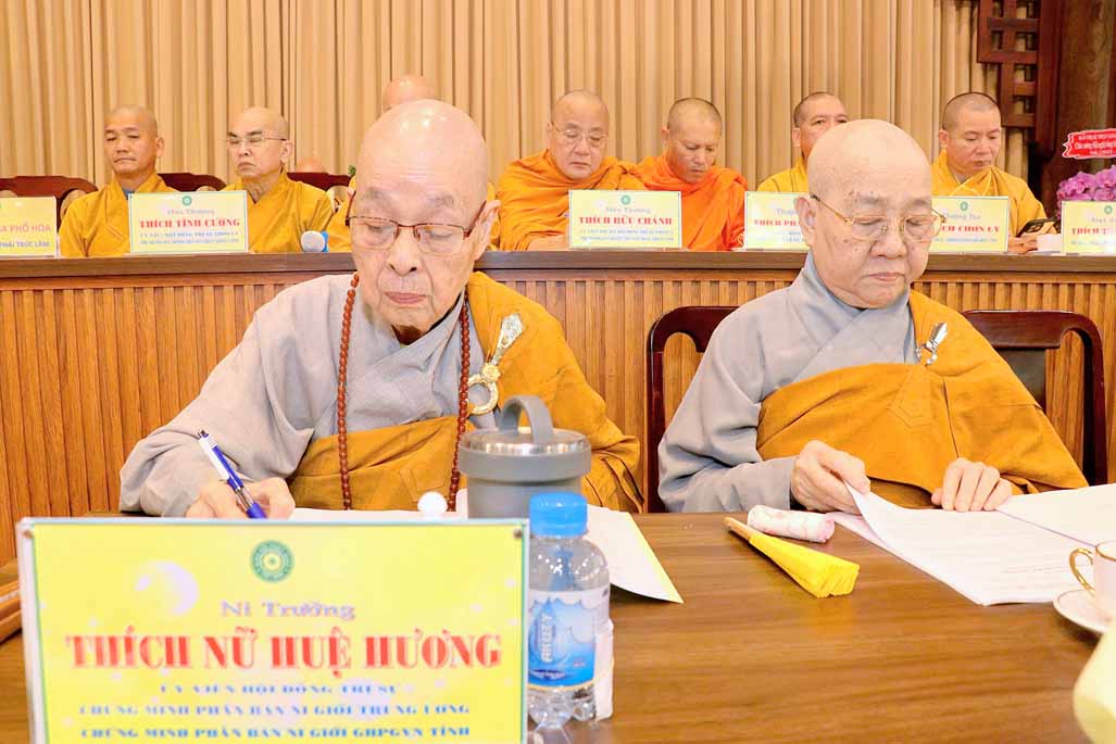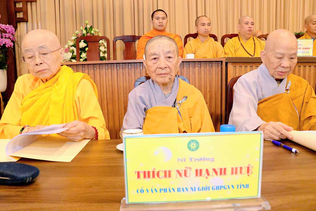 Ban lời sách tấn, NT. Thích Huệ Hương – Chứng minh Phân ban Ni giới Trung ương đã ghi nhận và tán dương tinh thần đoàn kết, sự tinh tấn tu học và những đóng góp bền bỉ của Ni giới tỉnh Đồng Nai trong suốt nhiệm kỳ qua. Ni trưởng khuyến tấn chư Ni tiếp tục lấy giới luật làm nền tảng, lấy tu học làm gốc, phát huy tâm Bồ-đề và tinh thần phụng sự, góp phần trang nghiêm Giáo hội và lợi lạc quần sanh.