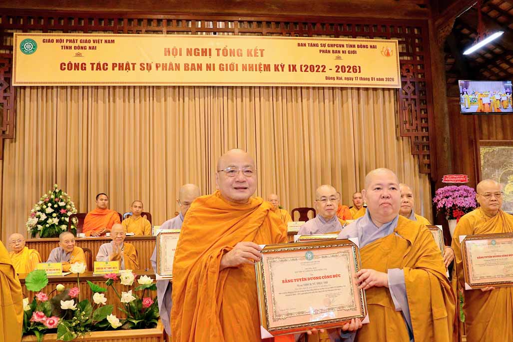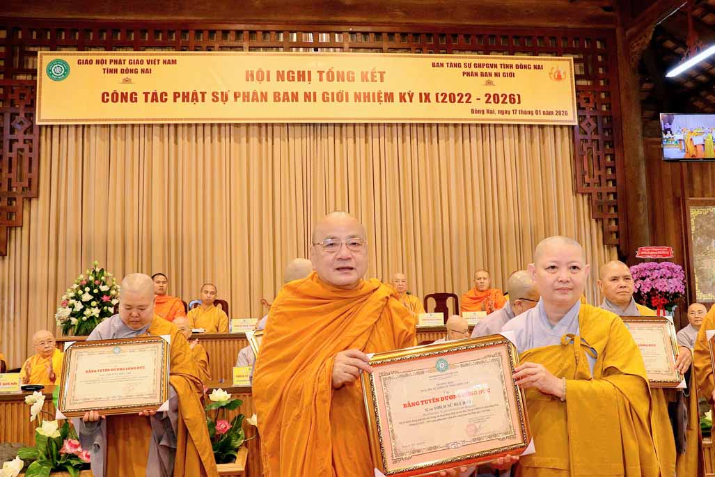 Hội nghị cũng đã trao tặng Bằng tuyên dương công đức đến các tập thể và cá nhân có nhiều đóng góp tích cực cho Phật sự Ni giới tỉnh Đồng Nai trong nhiệm kỳ qua.