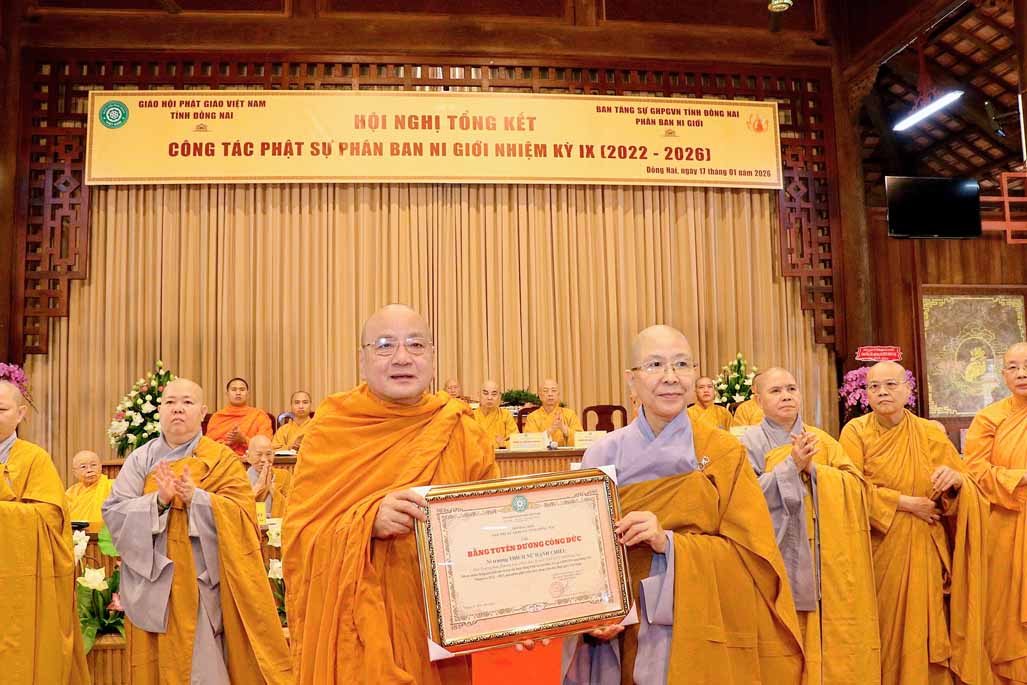 Hội nghị Tổng kết Phật sự nhiệm kỳ IX (2022–2026) của Phân ban Ni giới GHPGVN tỉnh Đồng Nai đã khép lại trong niềm hoan hỷ, đoàn kết và đầy kỳ vọng, mở ra hướng đi mới cho chặng đường phụng sự tiếp theo của Ni giới tỉnh nhà, vì sự trang nghiêm của Giáo hội và lợi lạc của quần sanh.