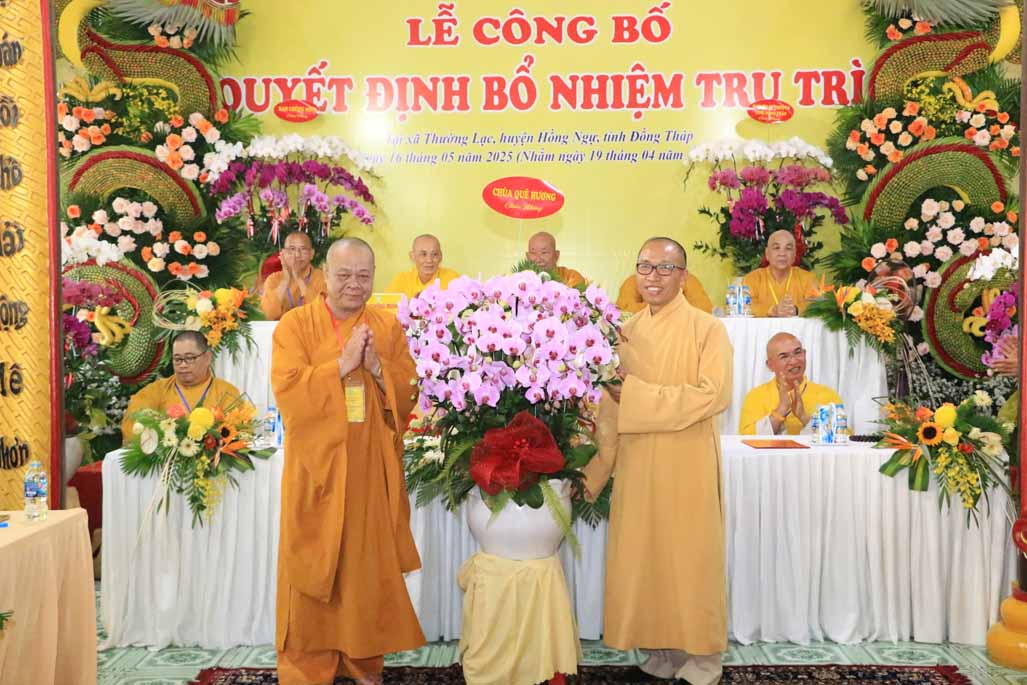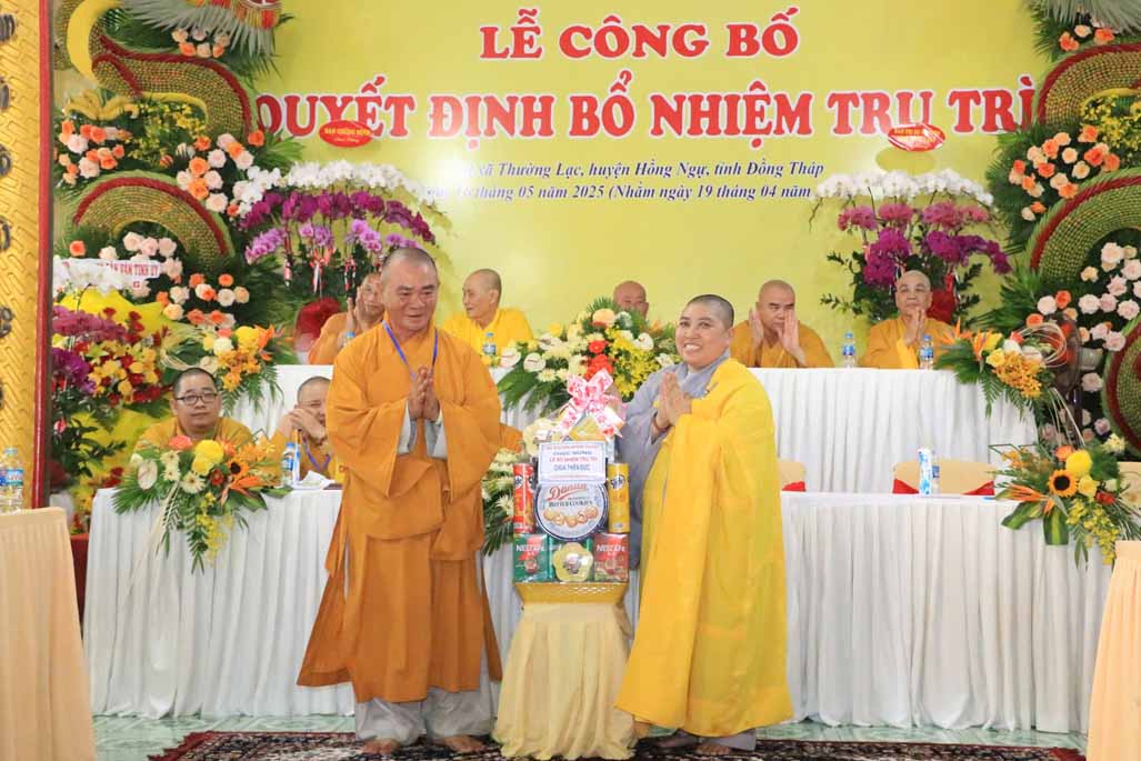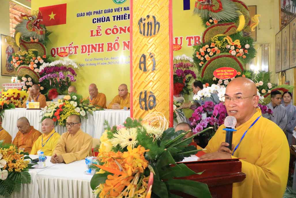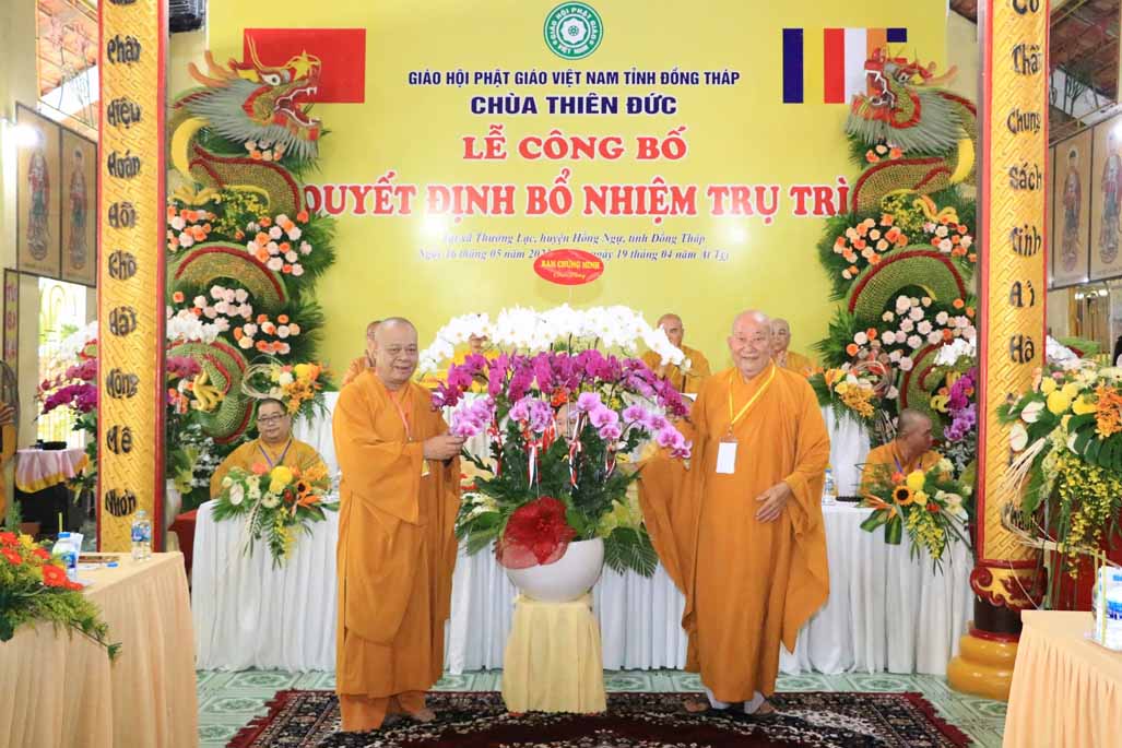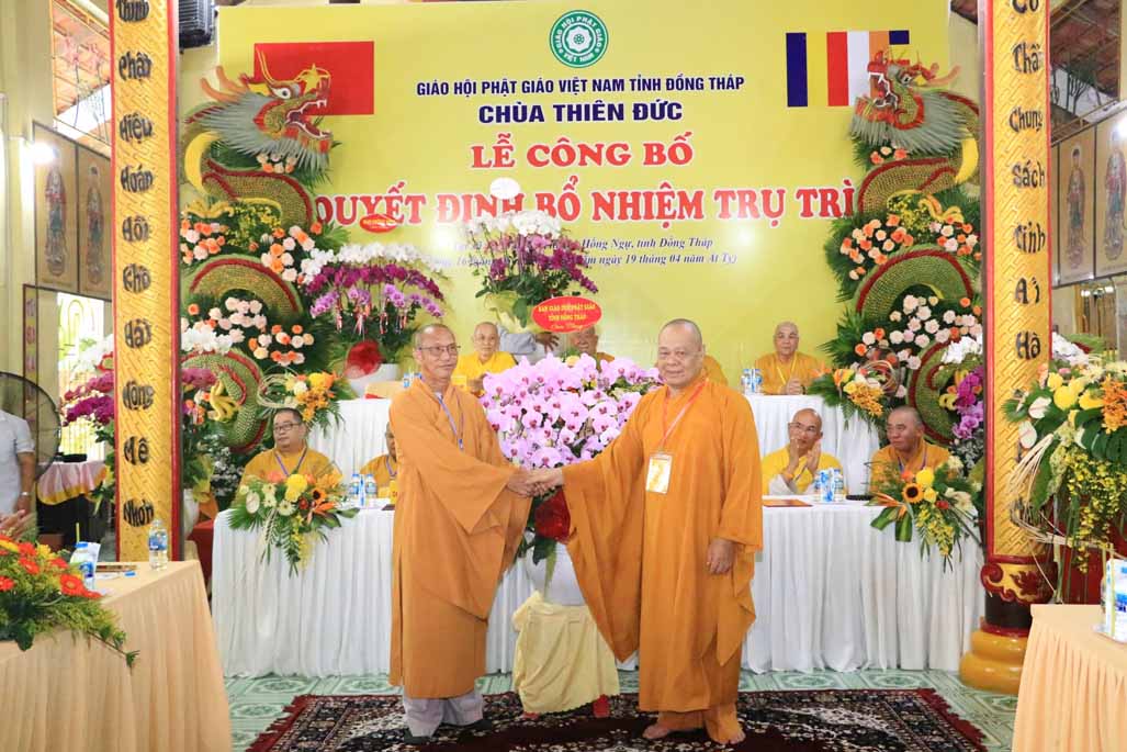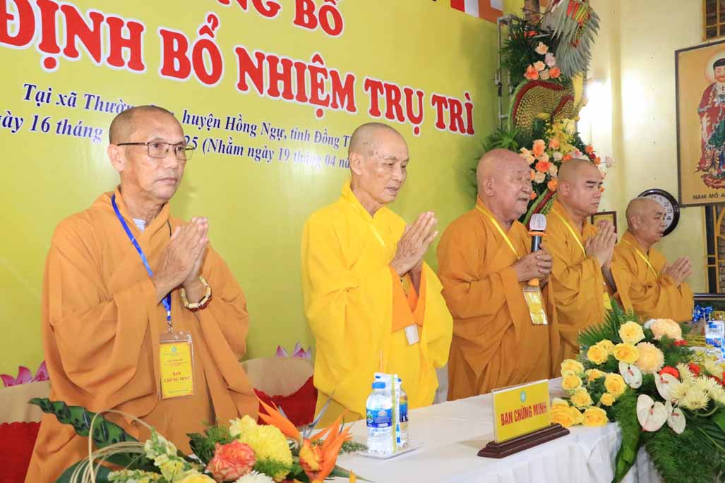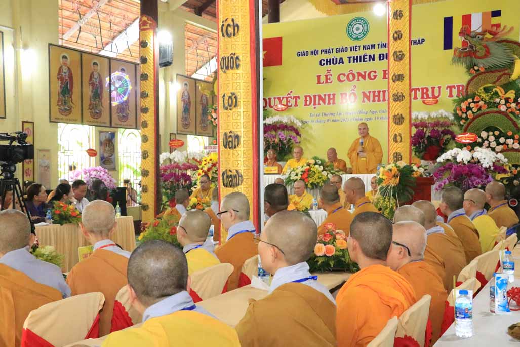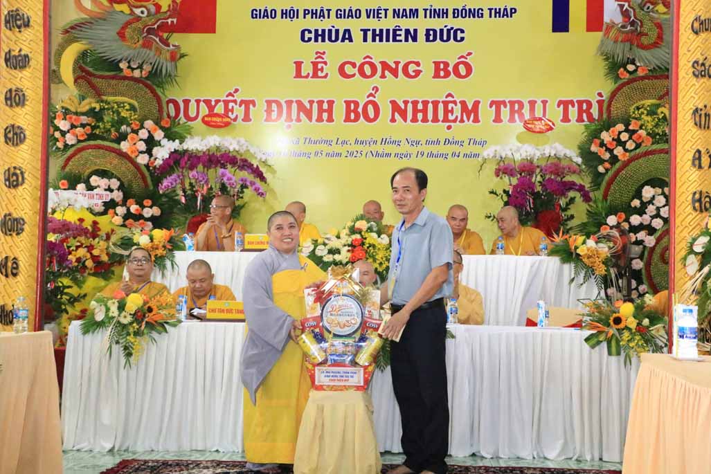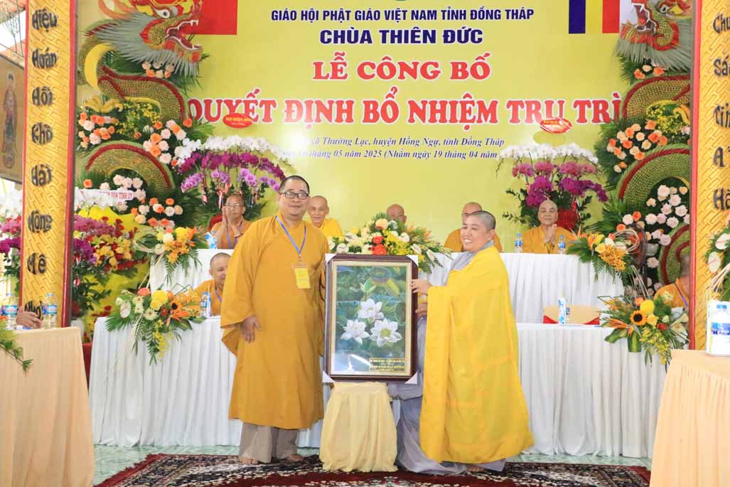 Tại buổi lễ, Thượng tọa Thích Minh Sơn đọc quyến định số 15/QĐ-BTS, ngày 04 tháng 04 năm 2025 của ban Trị sự GHPGVN tỉnh Đồng Tháp bổ nhiệm trụ trì chùa Thiên Đức xã Thường Lạc, huyện Hồng Ngự do Ni sư Thích nữ Như Thuận (thế danh Nguyễn Thị Thu Huyền, SN. 1976), Ủy viên BTS GHPGVN tỉnh, Phó ban BTS GHPGVN huyện Tam Nông, tốt nghiệp cử nhân Phật học tại Tp. Hồ Chí Minh; đảm nhiệm chức vụ trụ trì.